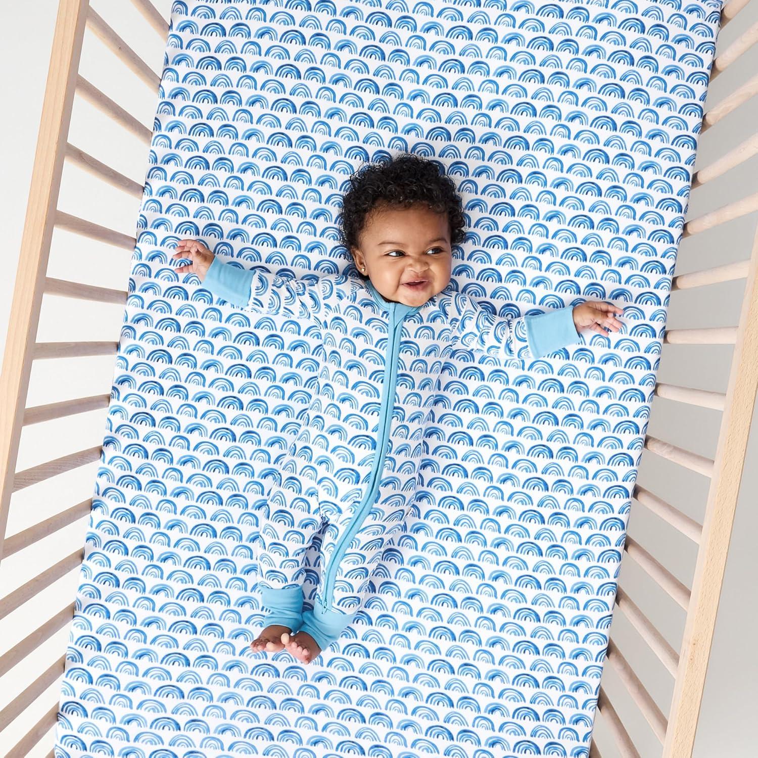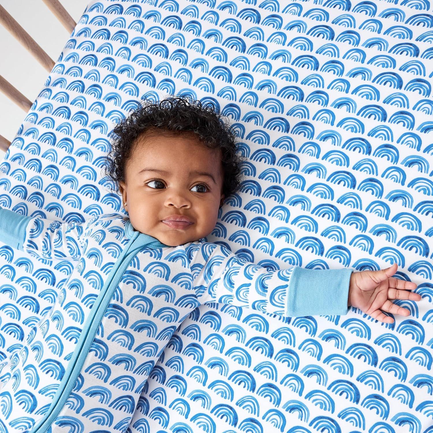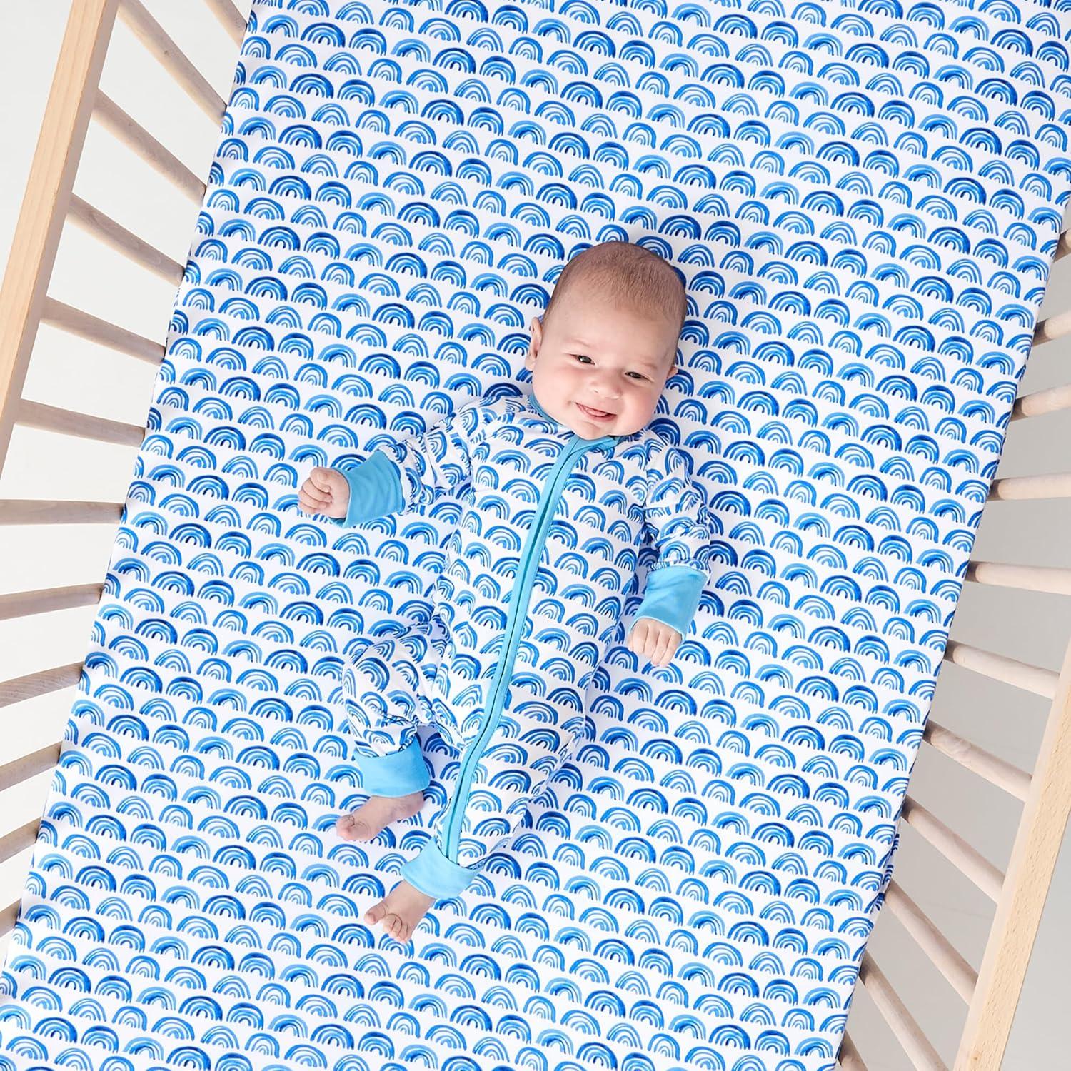 Little Sleepies Baby Crib Sheets, Buttery Soft Viscose from Bamboo Crib Sheets for Boys & Girls, Toddler Bed Sheet, Standard Crib Mattress Sheet, Super Stretchy & Elasticized (Blue Rainbows)(Blue Rainbows)