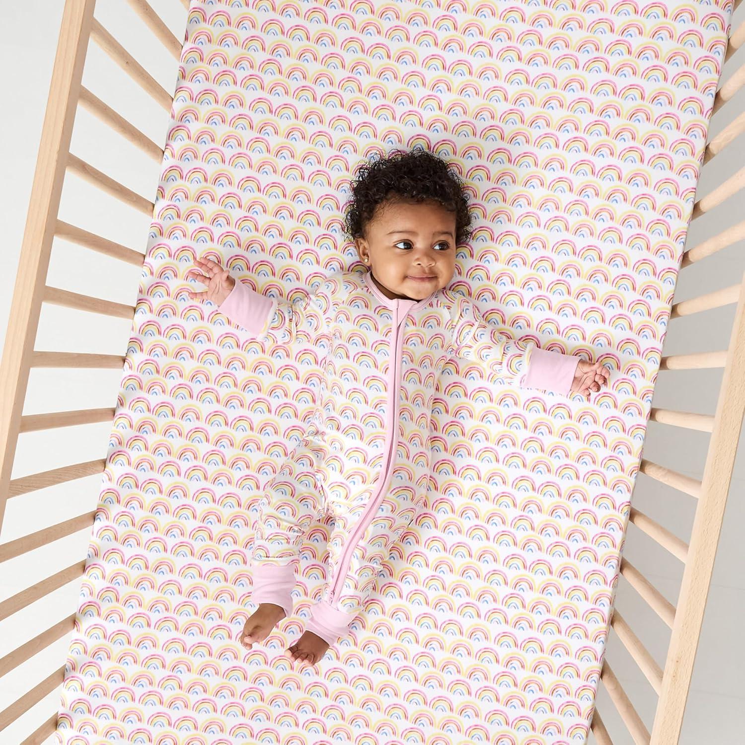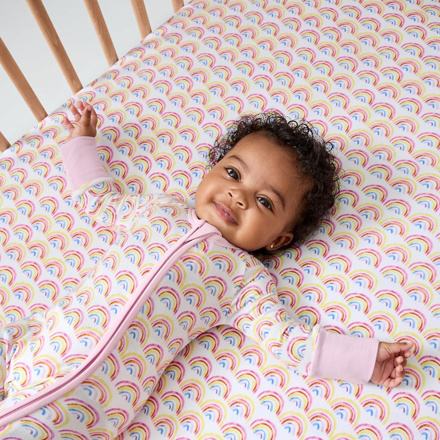 Little Sleepies Baby Crib Sheets, Buttery Soft Viscose from Bamboo Crib Sheets for Boys & Girls, Toddler Bed Sheet, Standard Crib Mattress Sheet, Super Stretchy & Elasticized (Blue Rainbows)(Pastel Rainbows)