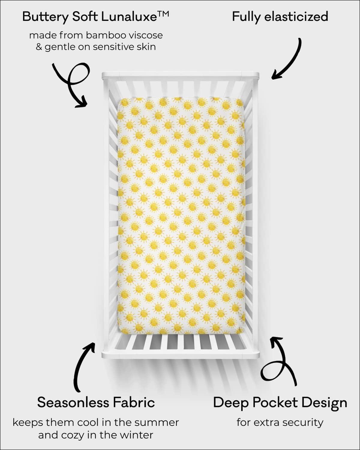Little Sleepies Viscose from Bamboo Crib Sheets – Ultra Soft, Breathable & Snug-Fit Crib Sheets for Baby Boys, Girls & Newborns Wrap your baby’s sleep space in the softest comfort with Little Sleepies Viscose from Bamboo Crib Sheets, crafted from our exclusive Lunaluxe viscose from bamboo fabric. Designed to fit both standard cribs and mini cribs, these buttery soft crib sheets are breathable, hypoallergenic, and temperature-regulating—perfect for delicate newborn skin and year-round use. Whether you're shopping for baby crib sheets for girls, boys, or gender-neutral nurseries, these viscose from bamboo crib sheets offer a cozy, safe, and snug fit for newborns, infants, and toddlers alike. Featuring an extra-stretchy elastic band all the way around, these crib sheets stay securely in place through naps, nighttime sleep, and everything in between. The breathable viscose from bamboo fabric keeps baby cool in the summer and warm in the winter, while the ultra-soft texture is gentle enough for even the most sensitive skin. Lightweight, durable, and machine washable, Little Sleepies crib sheets are built for everyday use and endless snuggles. Available in adorable, limited-edition prints that coordinate with our bestselling Zippies, swaddles, toddler bedding, and more, these mini crib sheets make a perfect baby shower gift, newborn essential, or standout item on your baby registry. Parents love them for their unmatched softness, chic nursery style, and how well they hold up wash after wash. If you’re searching for the best viscose from bamboo crib sheets, mini crib sheets, or baby crib sheets for boys, girls, or neutral themes, Little Sleepies delivers on comfort, safety, and style. Add a pop of personality to your nursery with crib sheets that are as cute as they are cozy—because your little one deserves the very best sleep, every night.