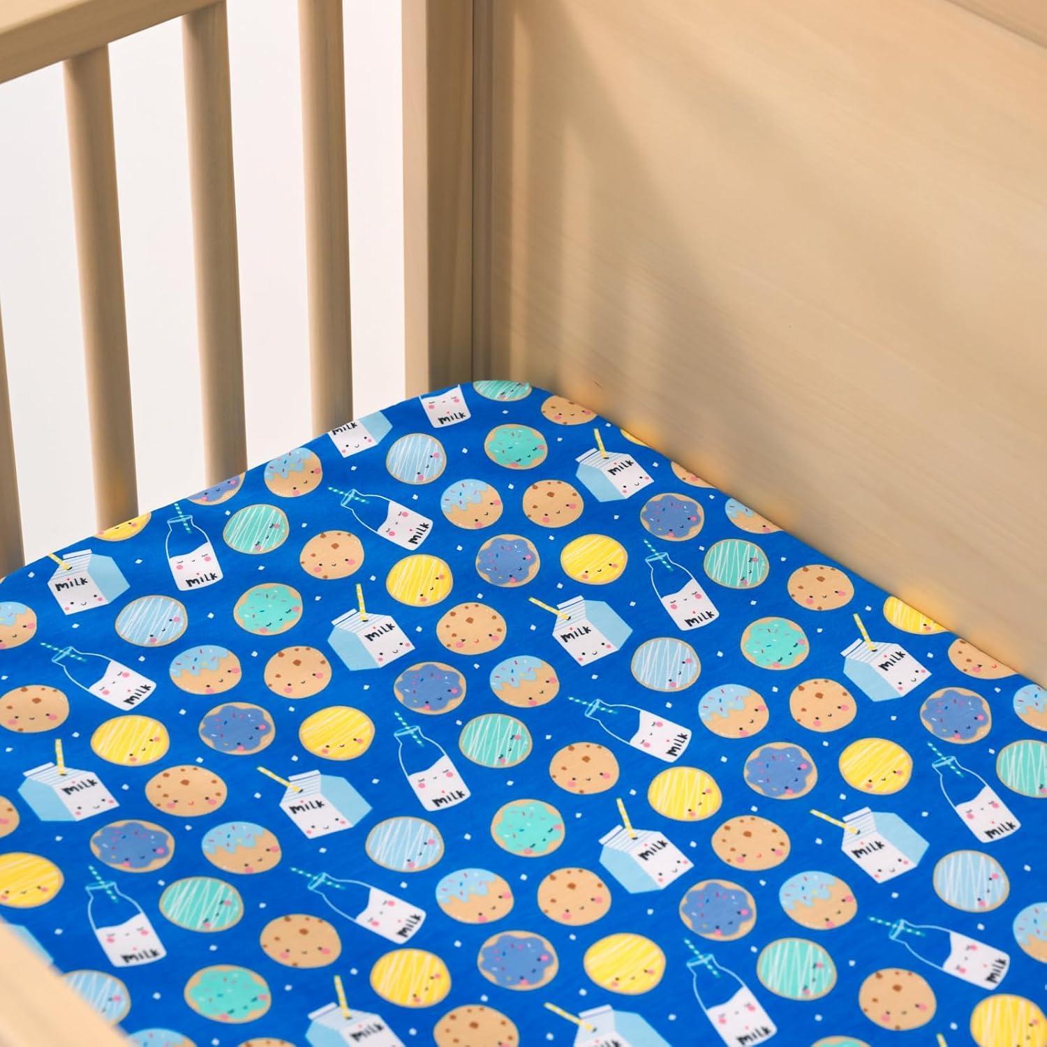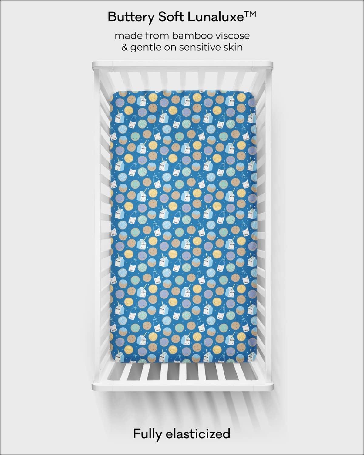 Little Sleepies Baby Crib Sheets, Buttery Soft Viscose from Bamboo Crib Sheets for Boys & Girls, Toddler Bed Sheet, Standard Crib Mattress Sheet, Super Stretchy & Elasticized (Santa’s Sleigh)(Blue Cookies & Milk)