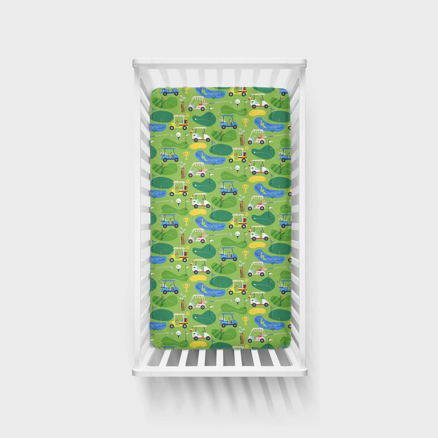 Little Sleepies Baby Crib Sheets, Buttery Soft Viscose from Bamboo Crib Sheets for Boys & Girls, Toddler Bed Sheet, Standard Crib Mattress Sheet, Super Stretchy & Elasticized (Santa’s Sleigh)(Fairway Fun)