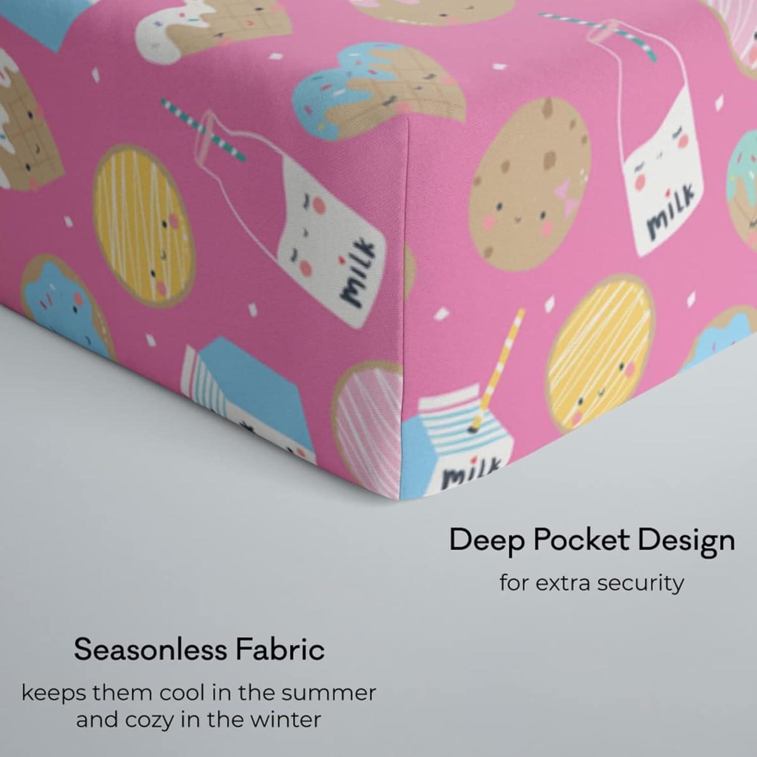 Little Sleepies Baby Crib Sheets, Buttery Soft Viscose from Bamboo Crib Sheets for Boys & Girls, Toddler Bed Sheet, Standard Crib Mattress Sheet, Super Stretchy & Elasticized (Santa’s Sleigh)(Pink Cookies & Milk)