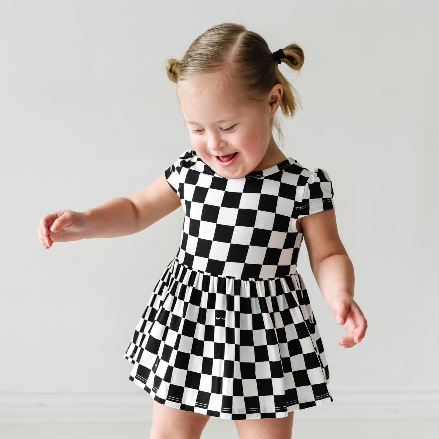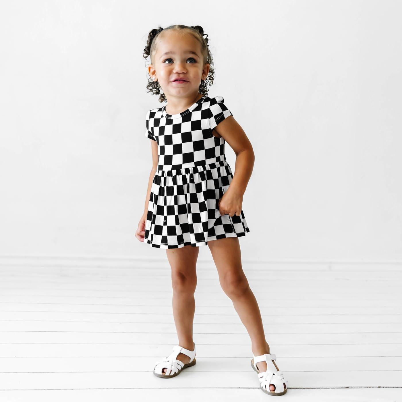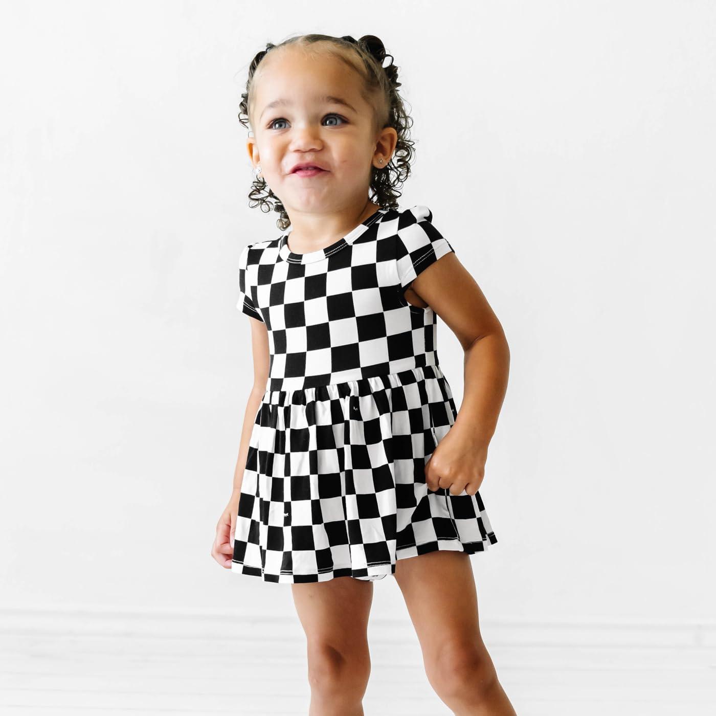 Little Sleepies Cap Sleeve Skater Toddler Bodysuit Dress for Girls – Viscose from Bamboo Girl Dress w/Pockets & Diaper Cover(Checks)