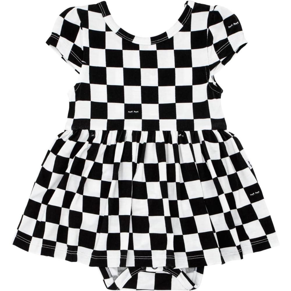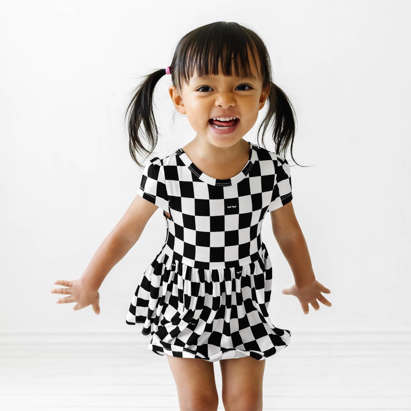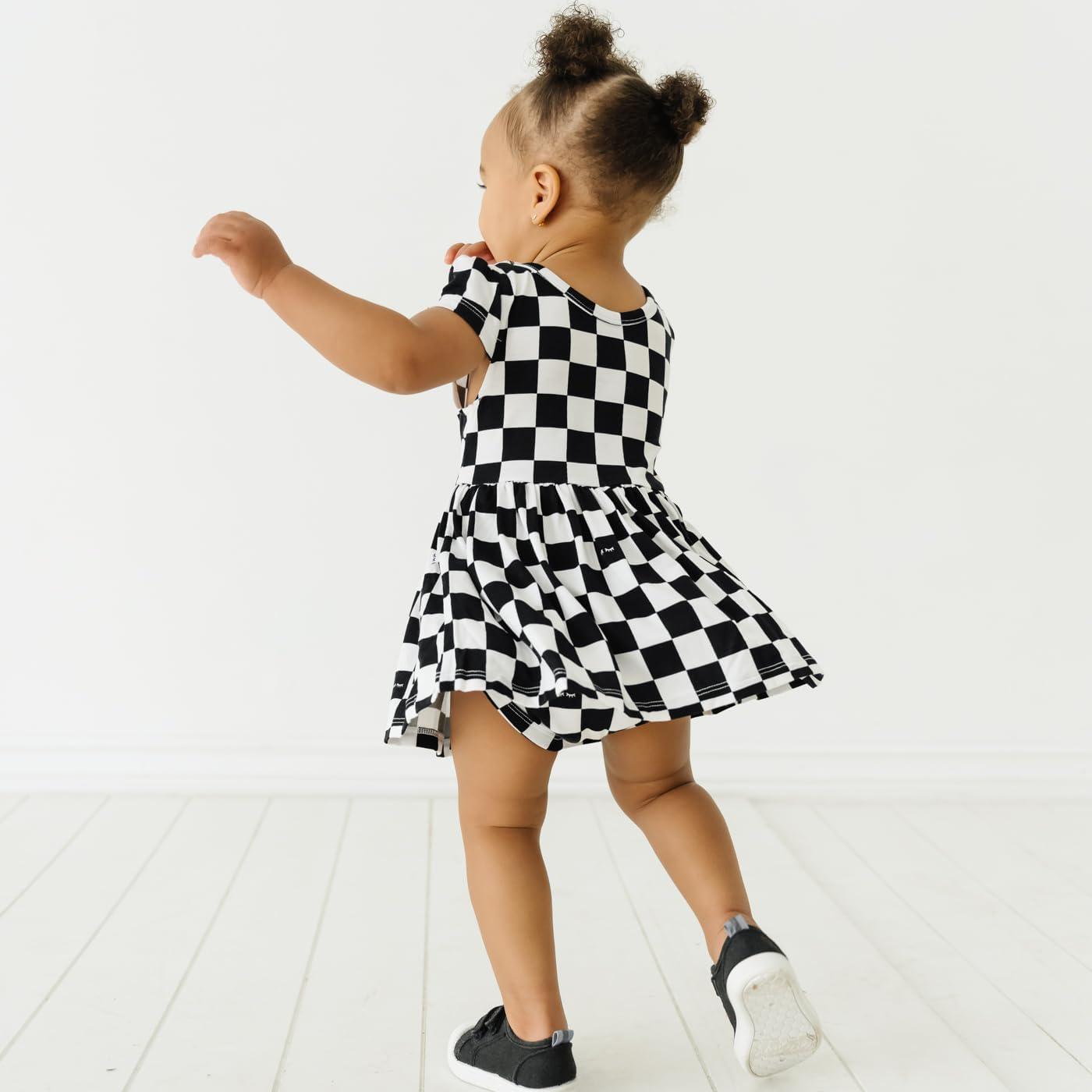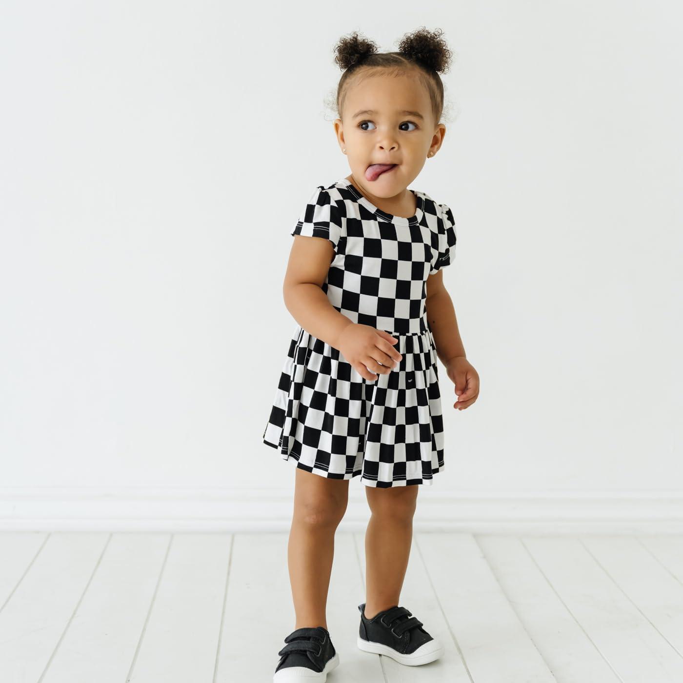 Little Sleepies Cap Sleeve Skater Toddler Bodysuit Dress for Girls – Viscose from Bamboo Girl Dress w/Pockets & Diaper Cover(Checks)