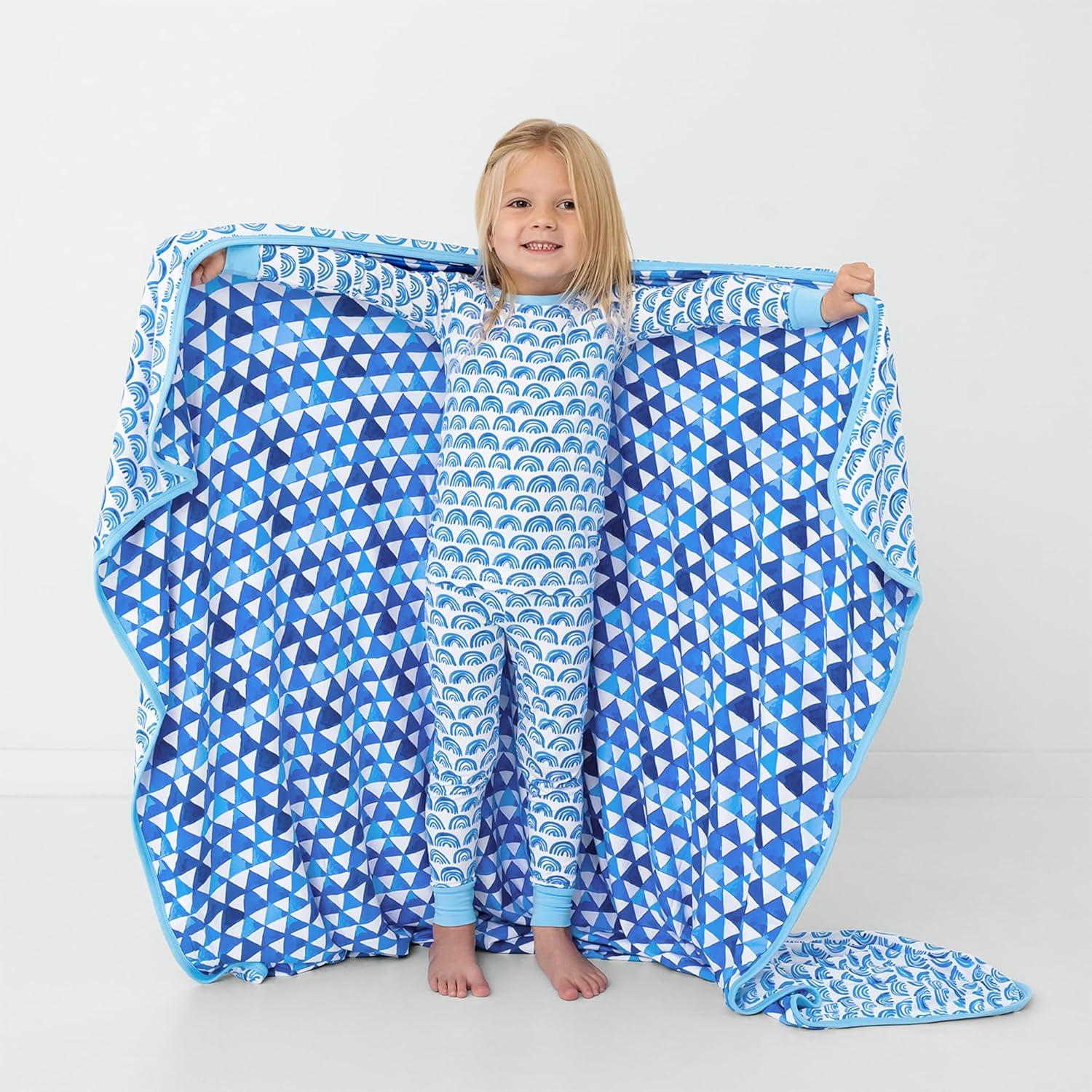 Little Sleepies Christmas Blanket, Soft Viscose from Bamboo Christmas Throw Blanket for Baby Boys & Girls, Lightweight, 50″ x 50″, Large (Modern & Merry)(Blue Rainbows)