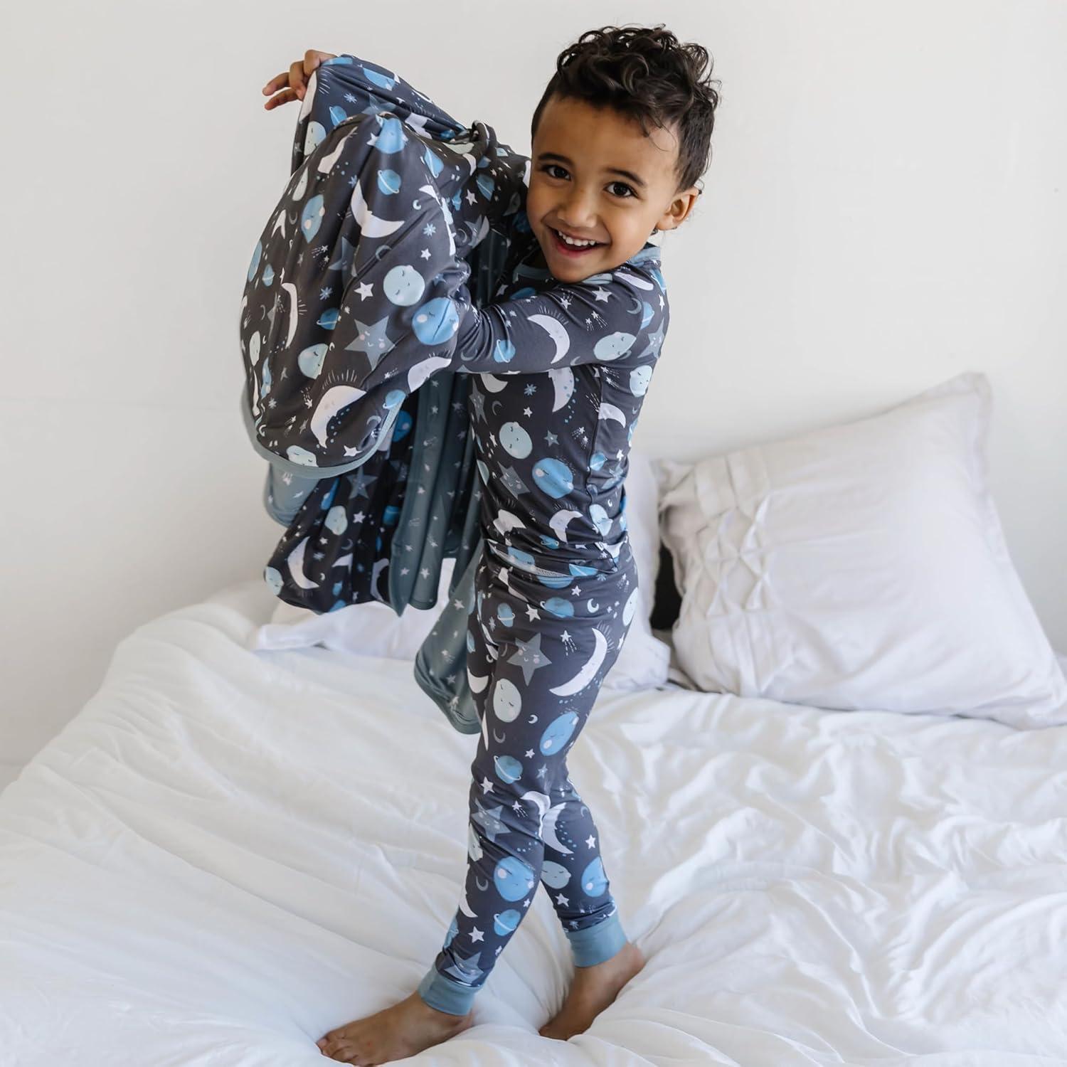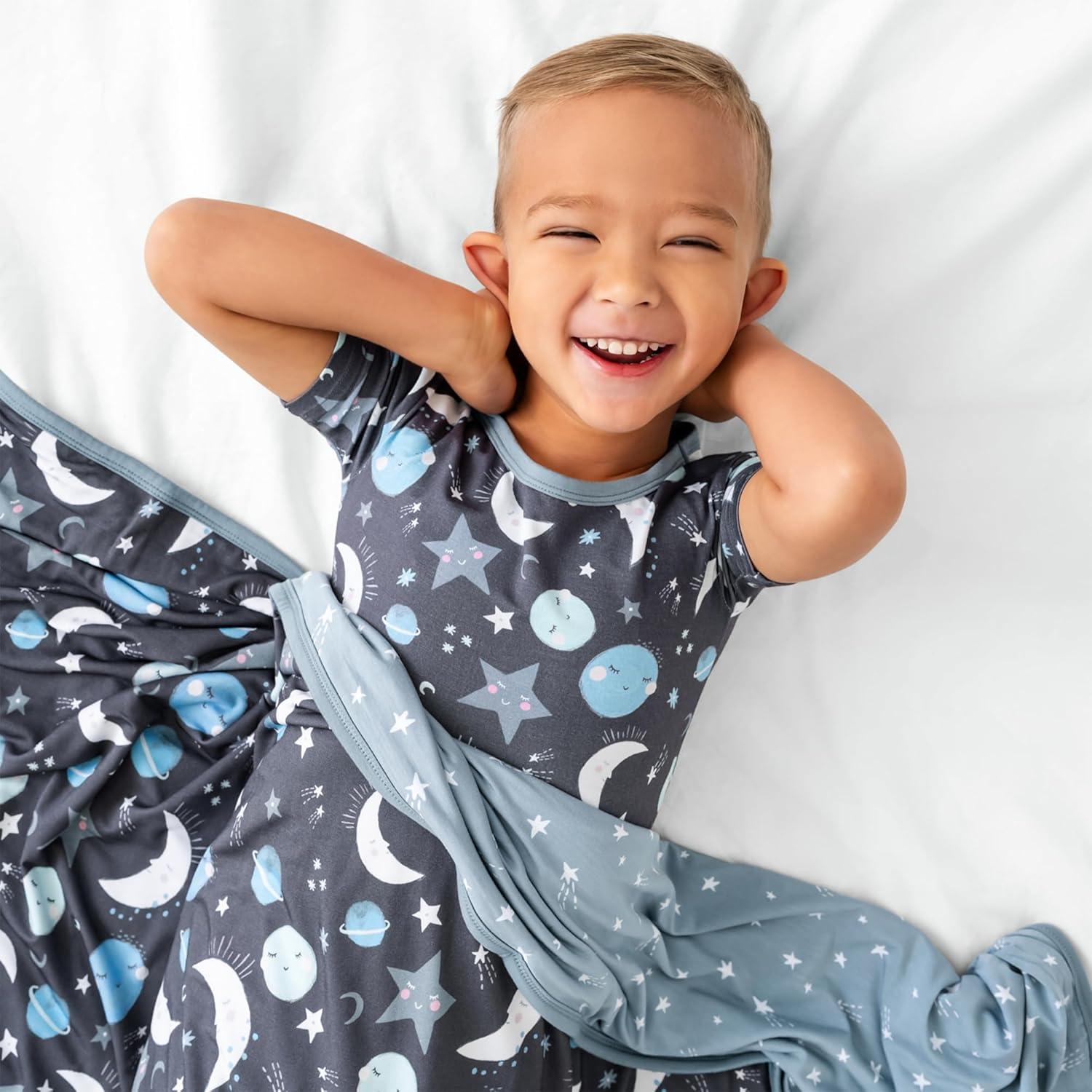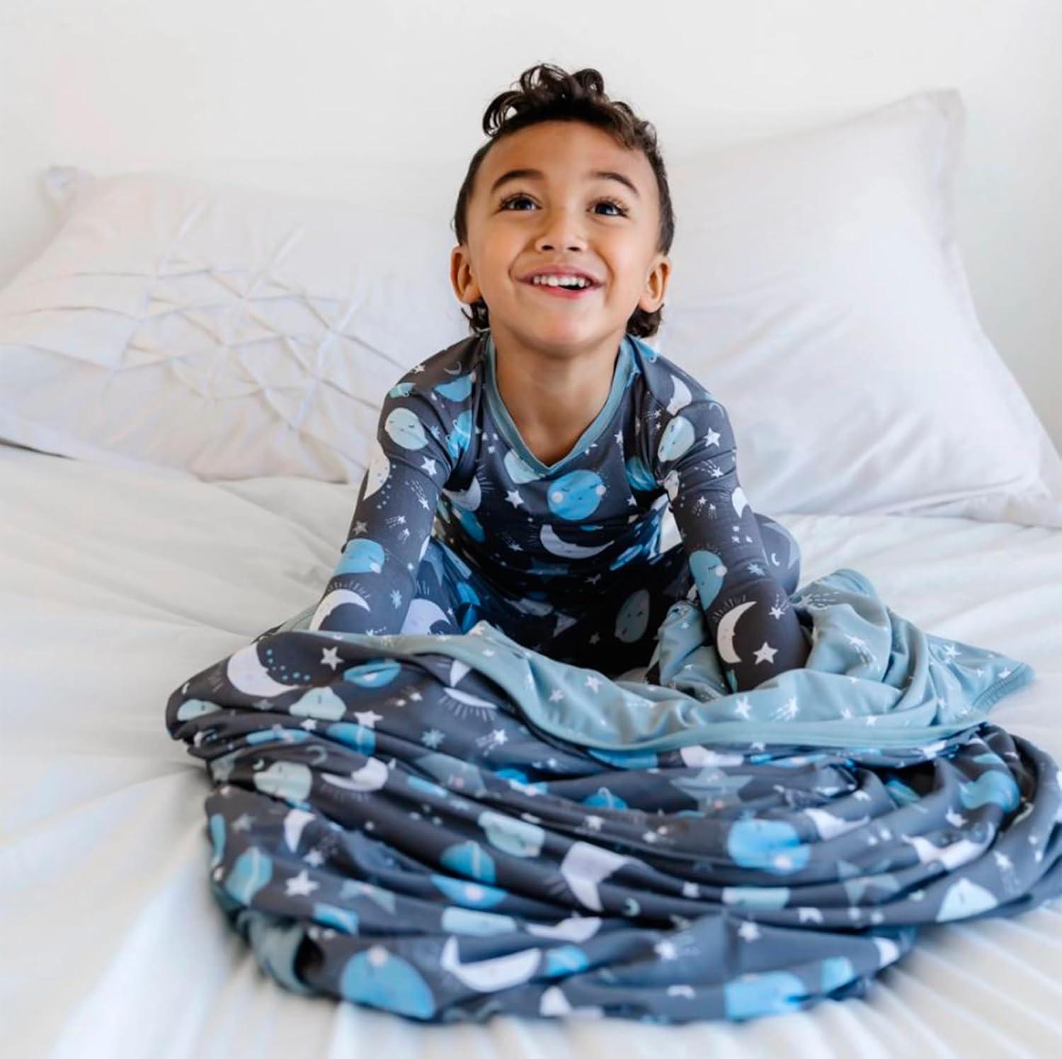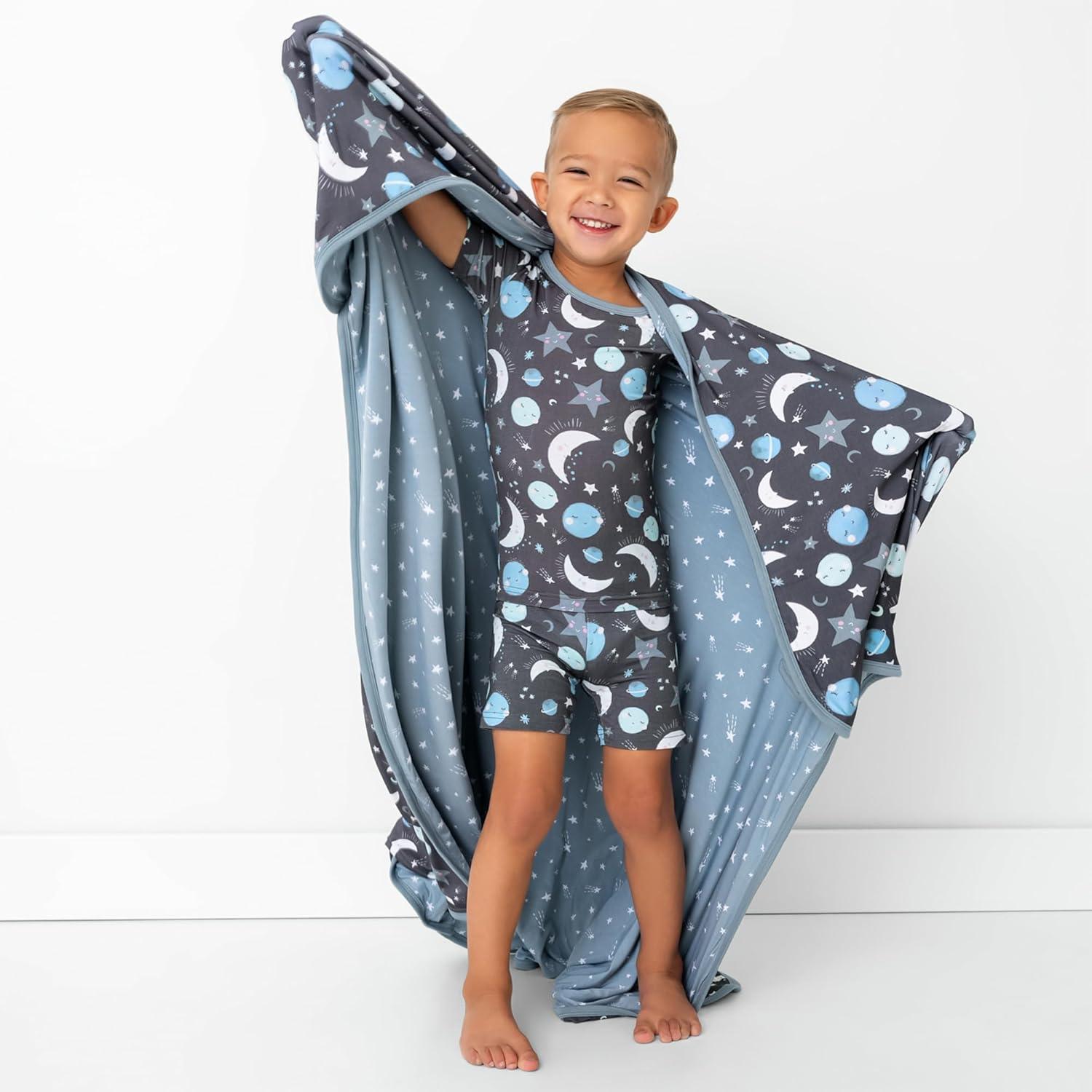 Little Sleepies Christmas Blanket, Soft Viscose from Bamboo Christmas Throw Blanket for Baby Boys & Girls, Lightweight, 50″ x 50″, Large (Modern & Merry)(Blue to the Moon & Back)