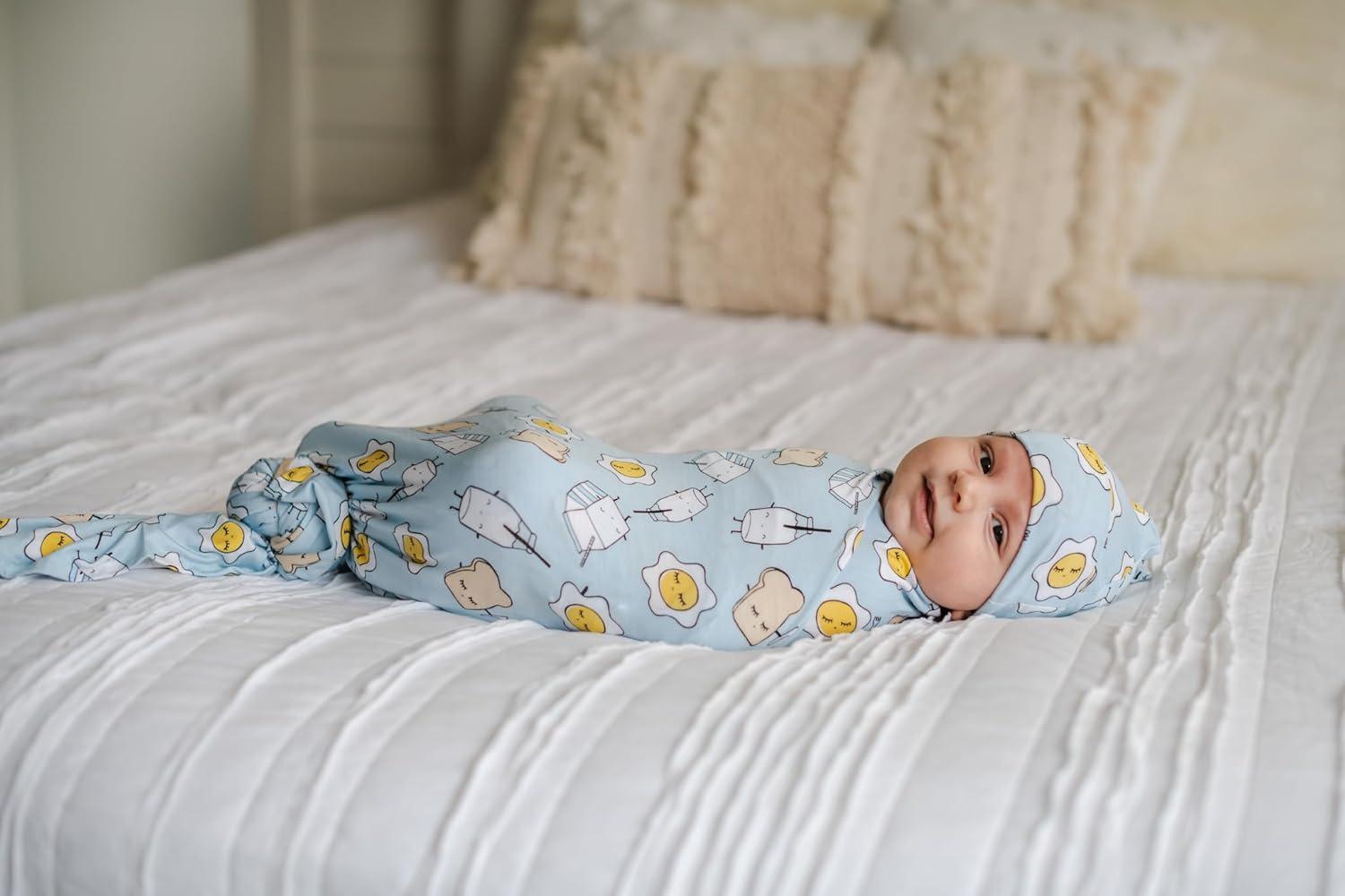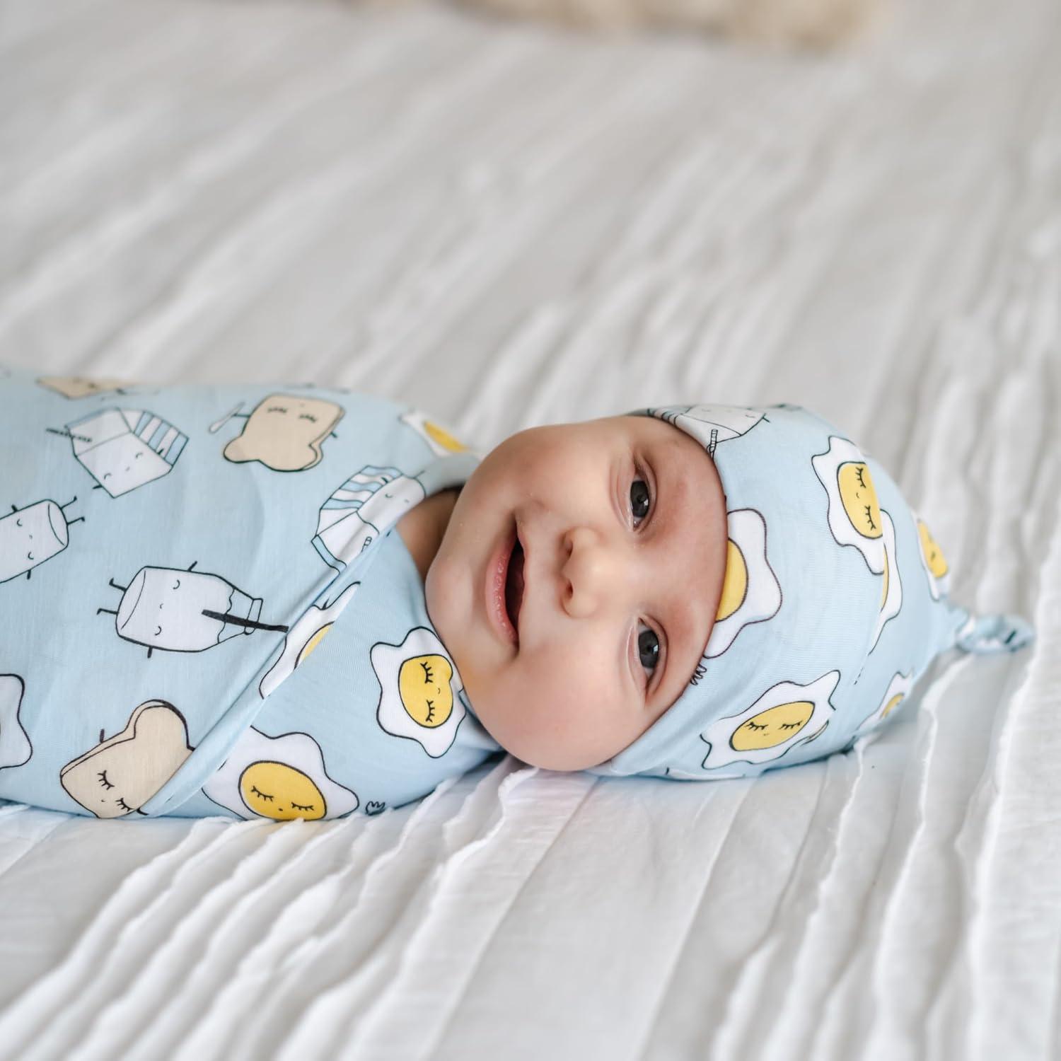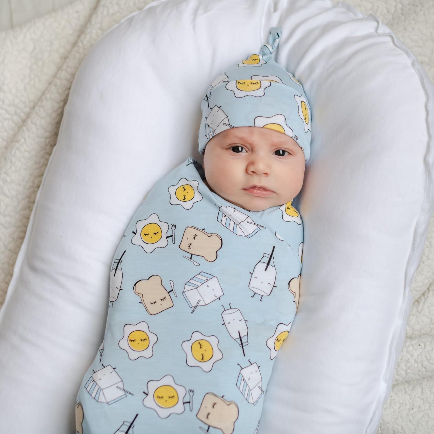 Little Sleepies Holiday Swaddle & Hat Set, Baby Swaddles Newborns, Soft Viscose from Bamboo Swaddle Blanket Wrap (Modern & Merry)(Blue Breakfast Buddies)