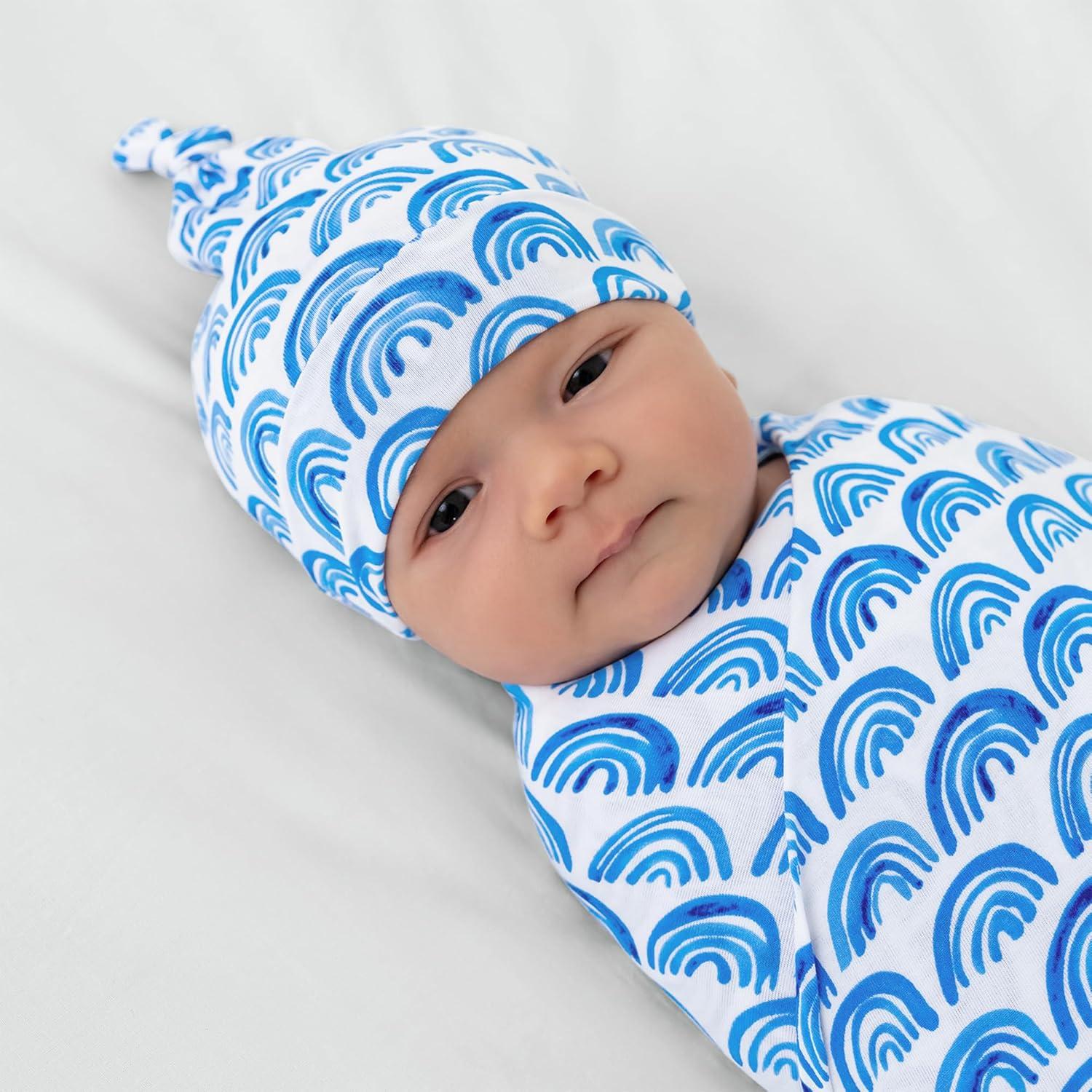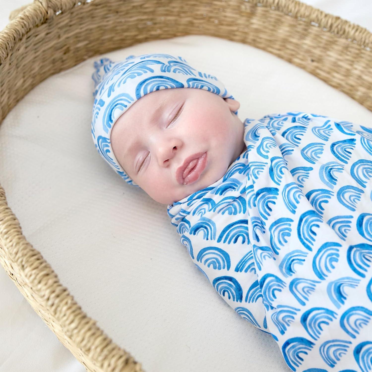 Little Sleepies Holiday Swaddle & Hat Set, Baby Swaddles Newborns, Soft Viscose from Bamboo Swaddle Blanket Wrap (Modern & Merry)(Blue Rainbows)