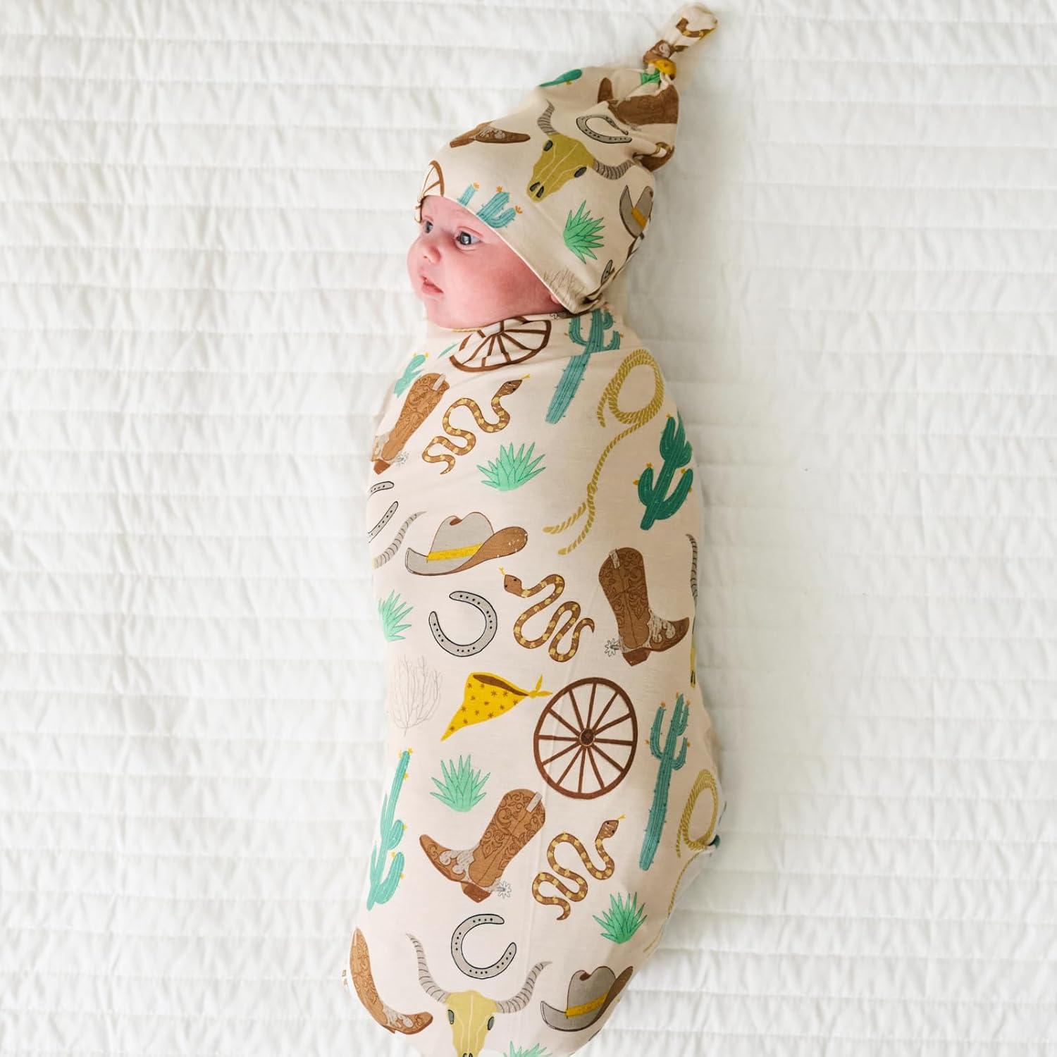 Little Sleepies Holiday Swaddle & Hat Set, Baby Swaddles Newborns, Soft Viscose from Bamboo Swaddle Blanket Wrap (Modern & Merry)(Caramel Ready to Rodeo)