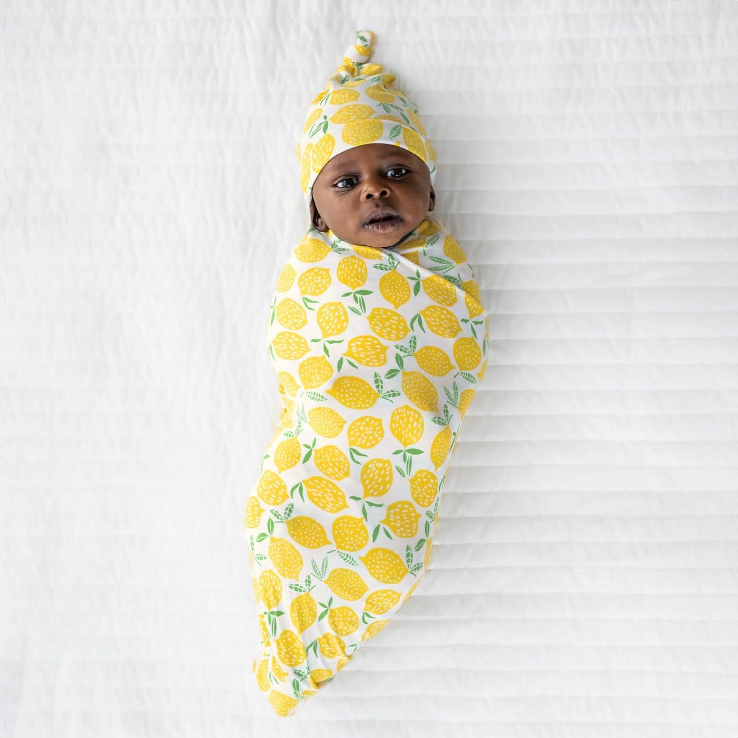 Little Sleepies Holiday Swaddle & Hat Set, Baby Swaddles Newborns, Soft Viscose from Bamboo Swaddle Blanket Wrap (Modern & Merry)(Lemons)