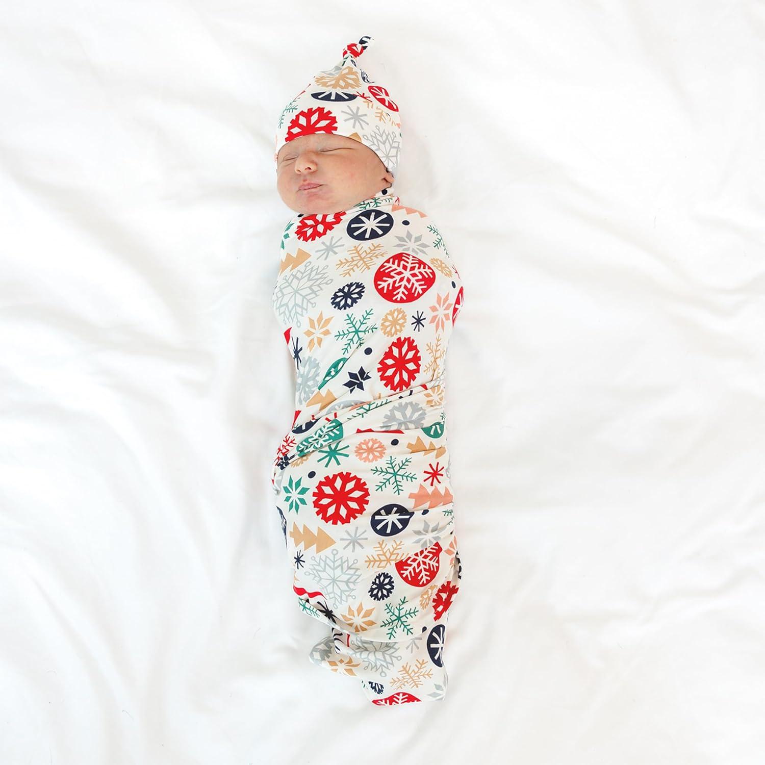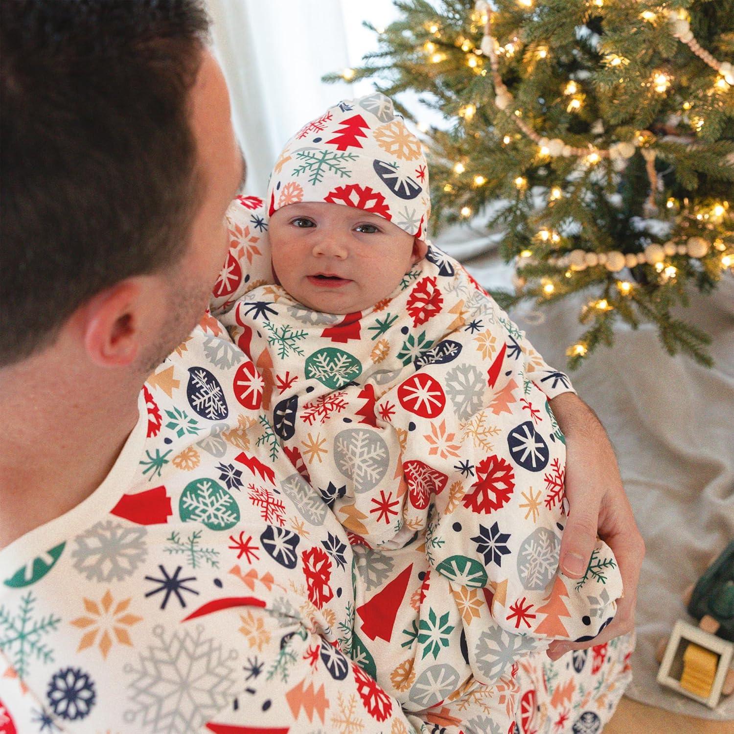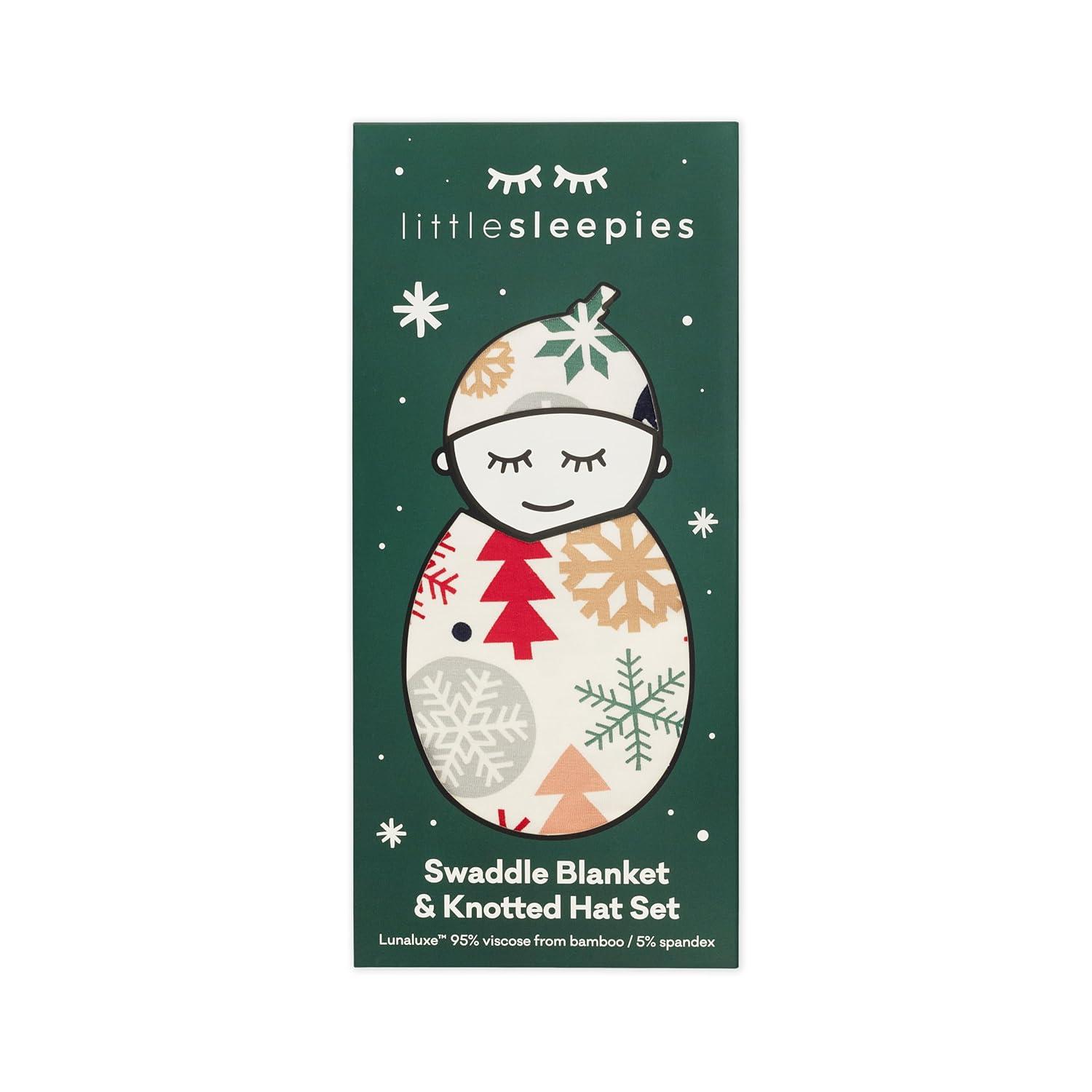 Little Sleepies Holiday Swaddle & Hat Set, Baby Swaddles Newborns, Soft Viscose from Bamboo Swaddle Blanket Wrap (Modern & Merry)(Modern & Merry)