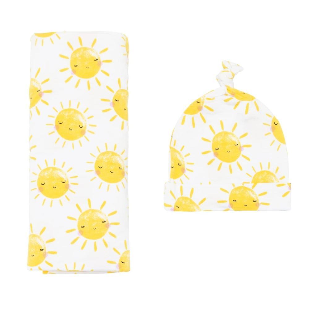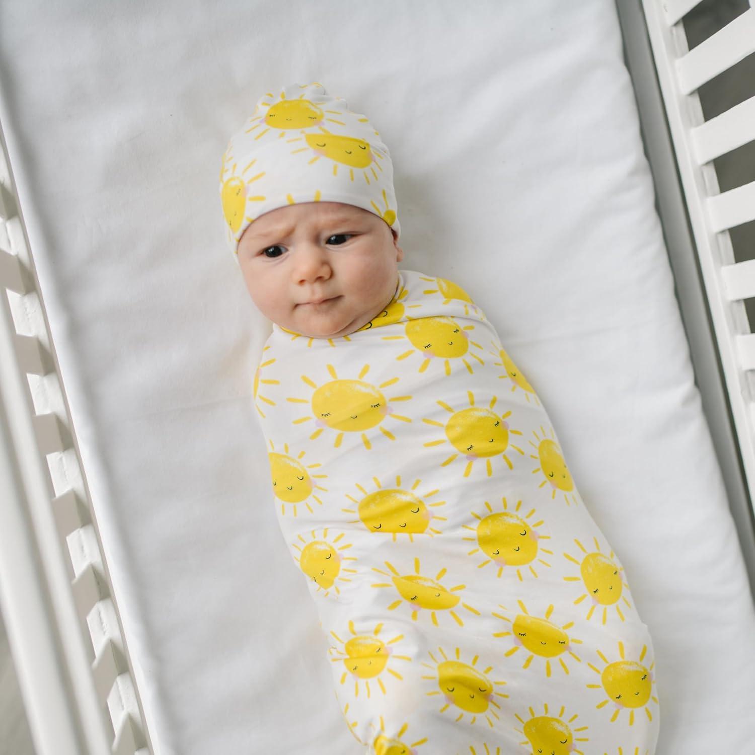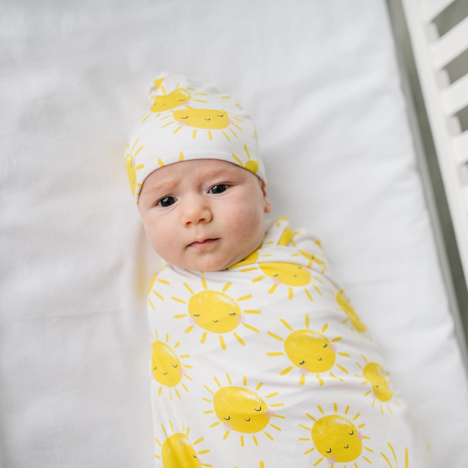 Little Sleepies Holiday Swaddle & Hat Set, Baby Swaddles Newborns, Soft Viscose from Bamboo Swaddle Blanket Wrap (Modern & Merry)(Sunshine)