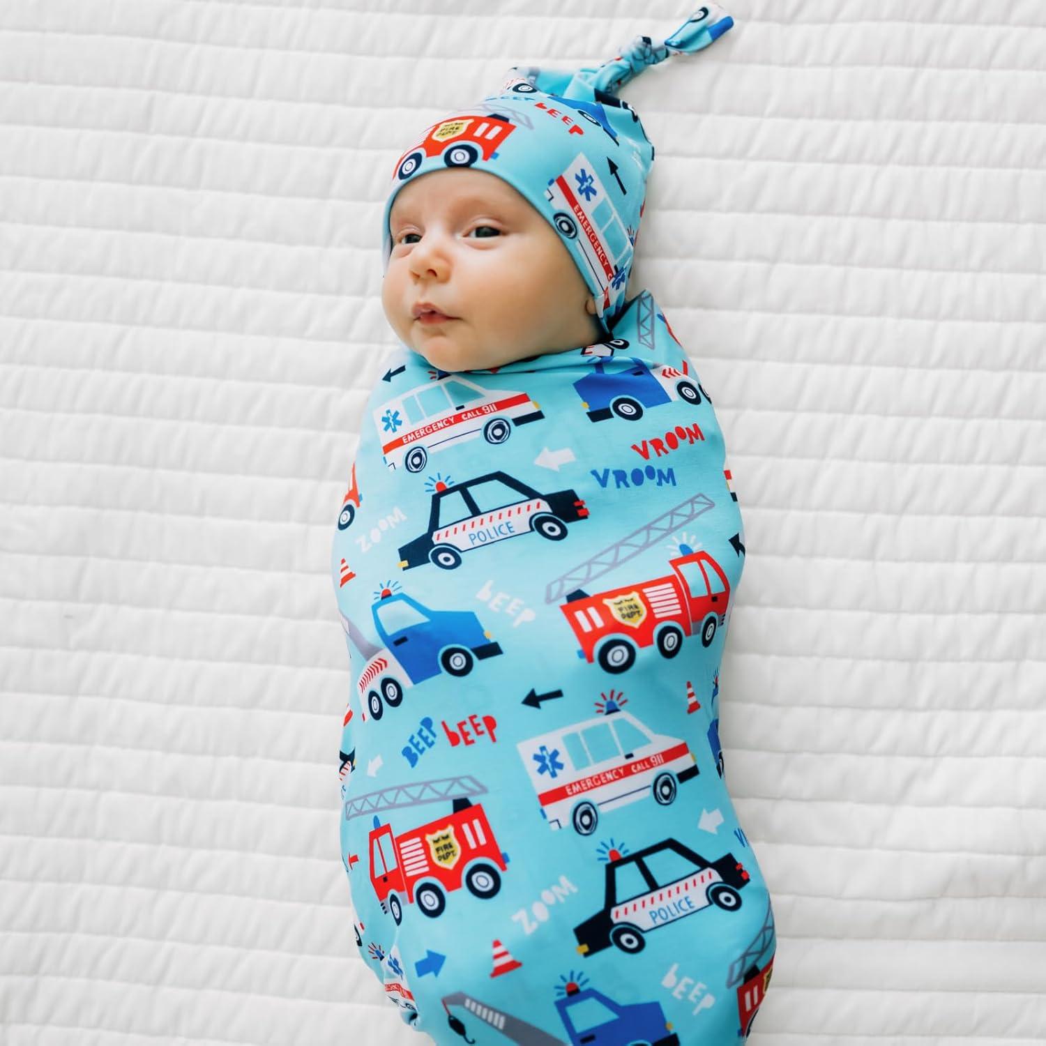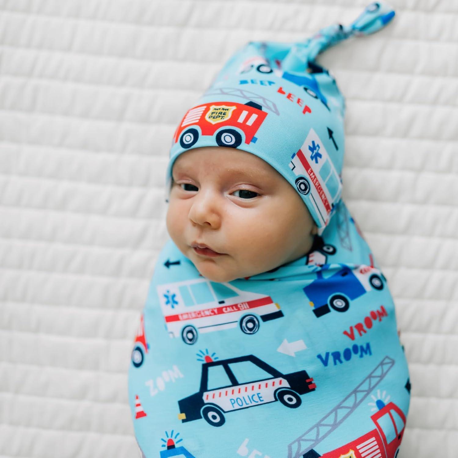 Little Sleepies Holiday Swaddle & Hat Set, Baby Swaddles Newborns, Soft Viscose from Bamboo Swaddle Blanket Wrap (Modern & Merry)(To the Rescue)