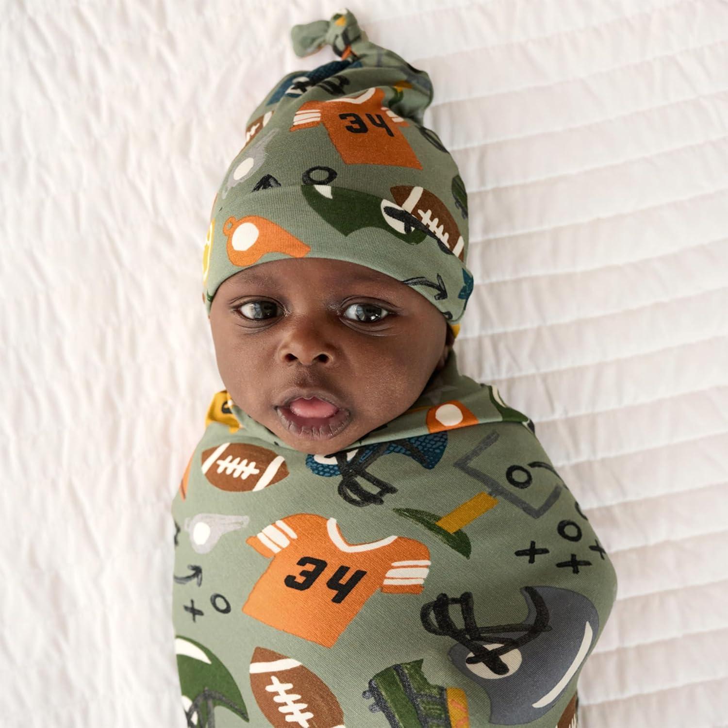 Little Sleepies Holiday Swaddle & Hat Set, Baby Swaddles Newborns, Soft Viscose from Bamboo Swaddle Blanket Wrap (Modern & Merry)(Touchdown Time)