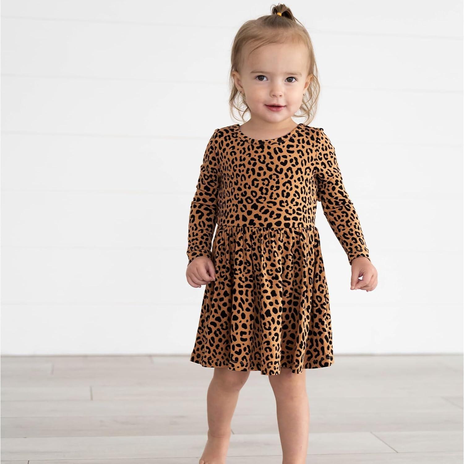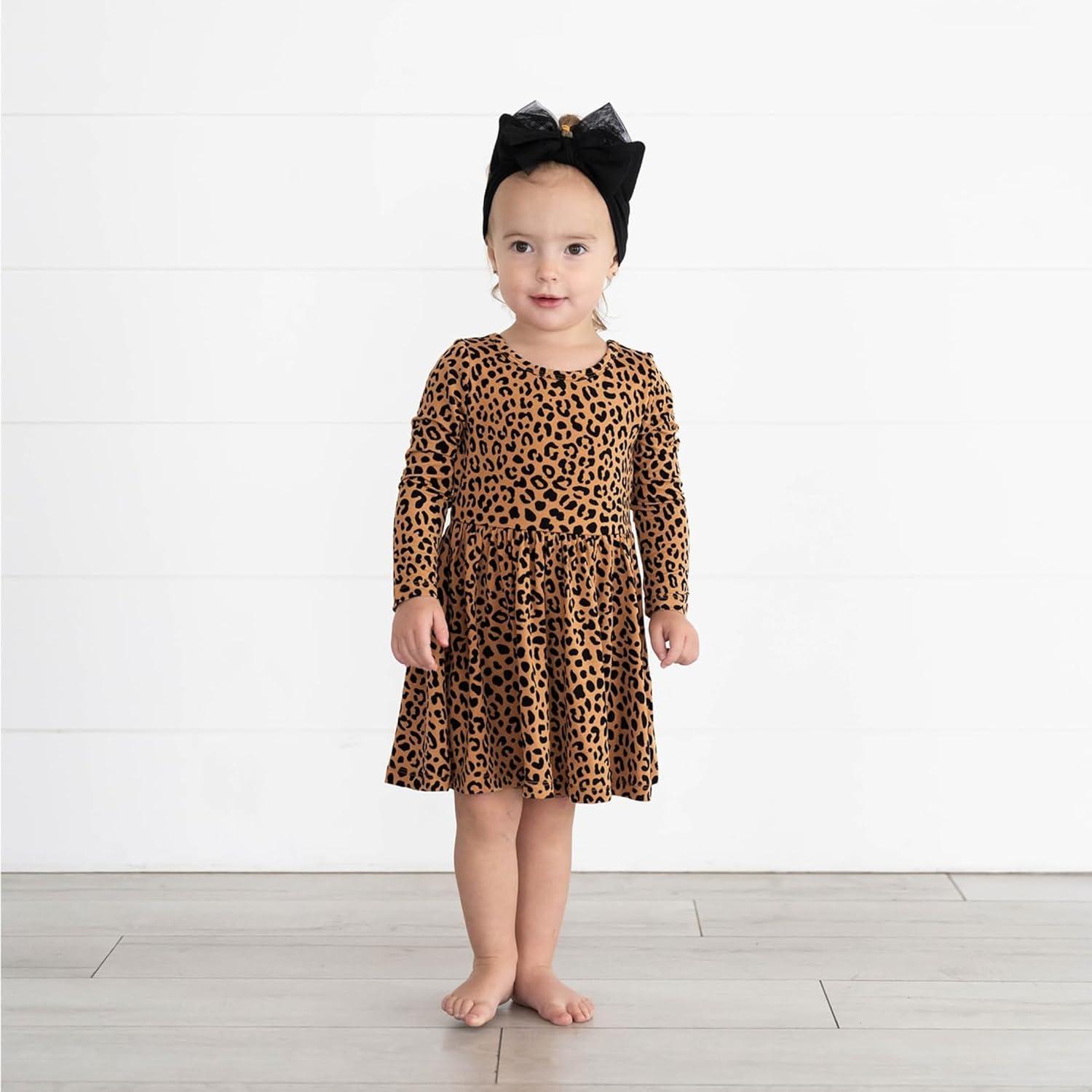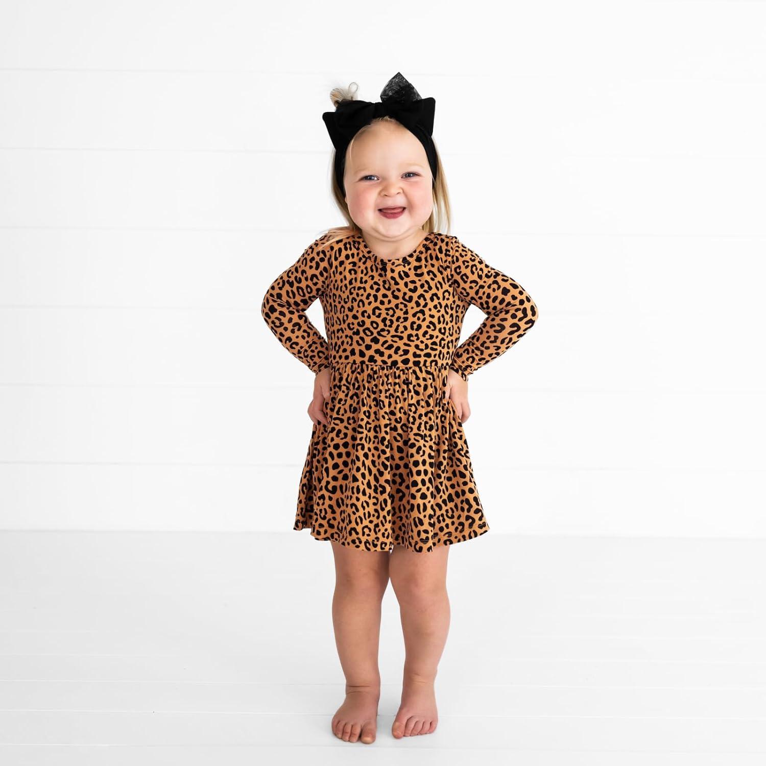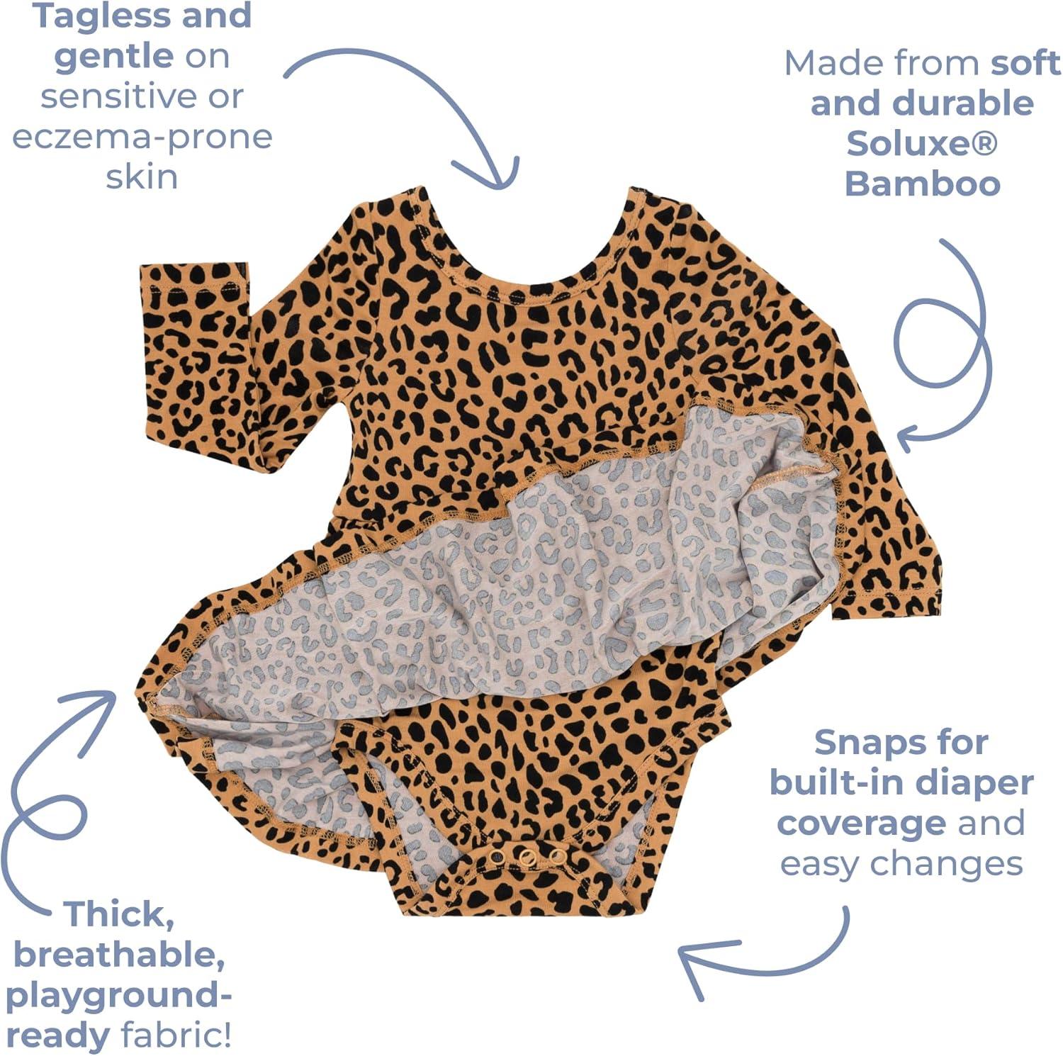 Little Sleepies Long Sleeve Twirl Bodysuit Dress – Viscose from Bamboo Baby Girl Clothes with Snaps for Easy Diaper Changes(Classic Leopard)