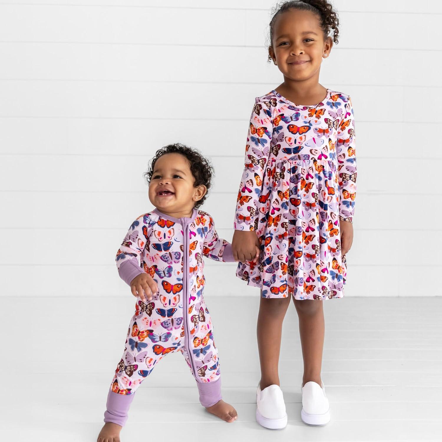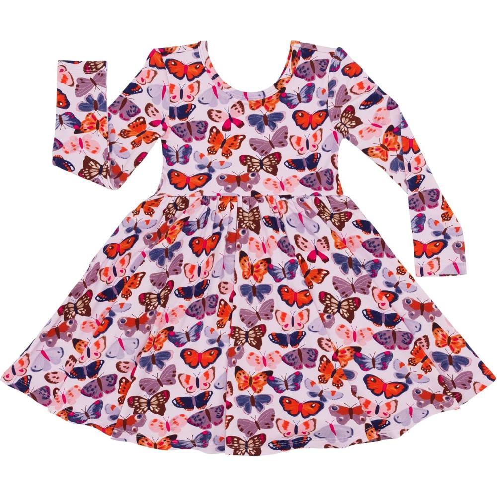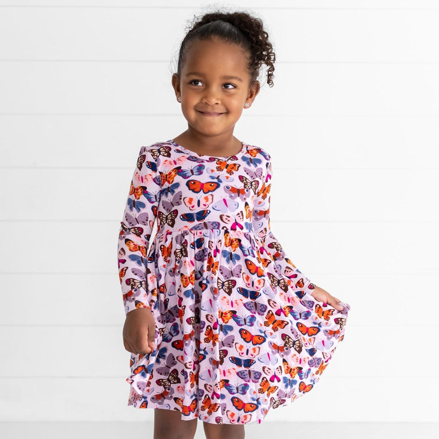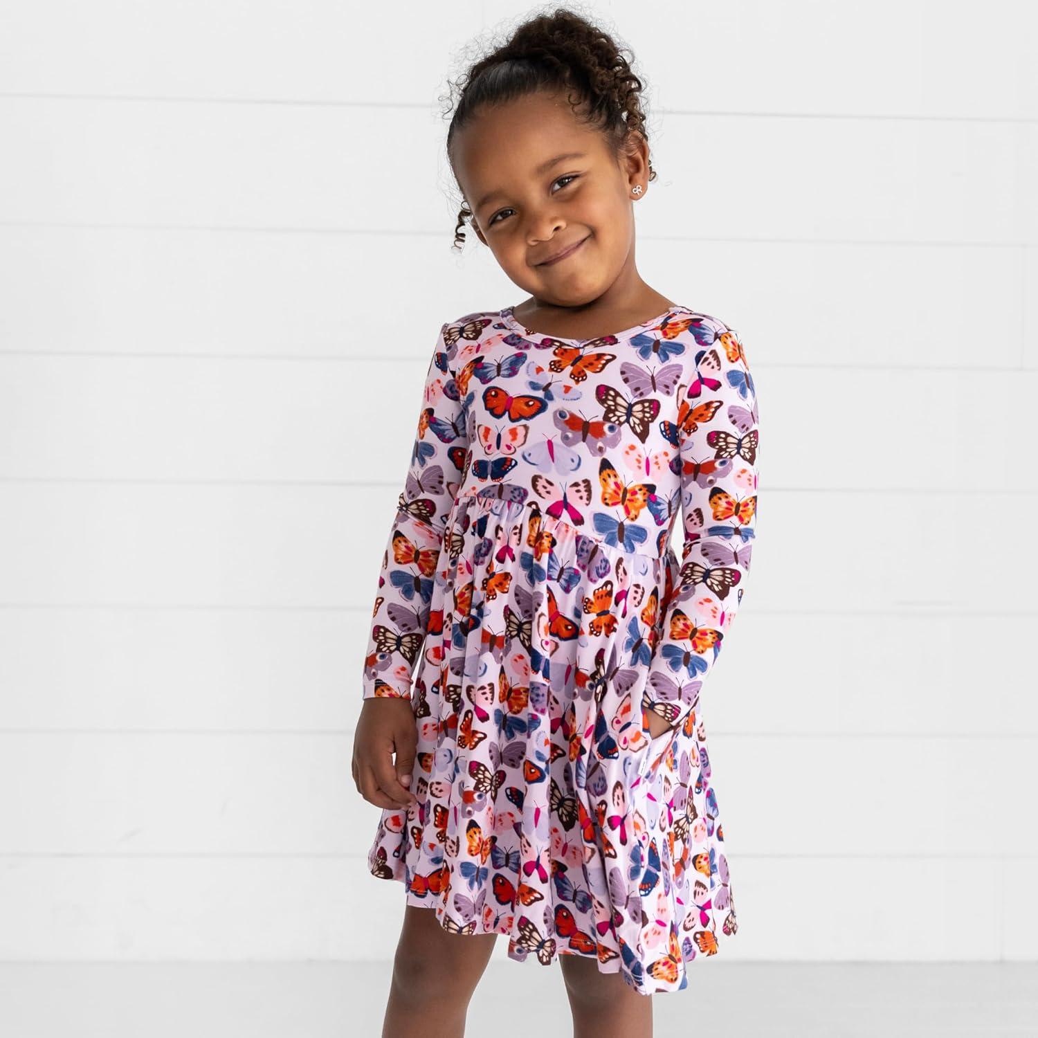 Little Sleepies Long Sleeve Twirl Dress for Girls – Viscose from Bamboo Toddler Dresses w/Pockets & Tagless Comfort(Butterfly Kisses)