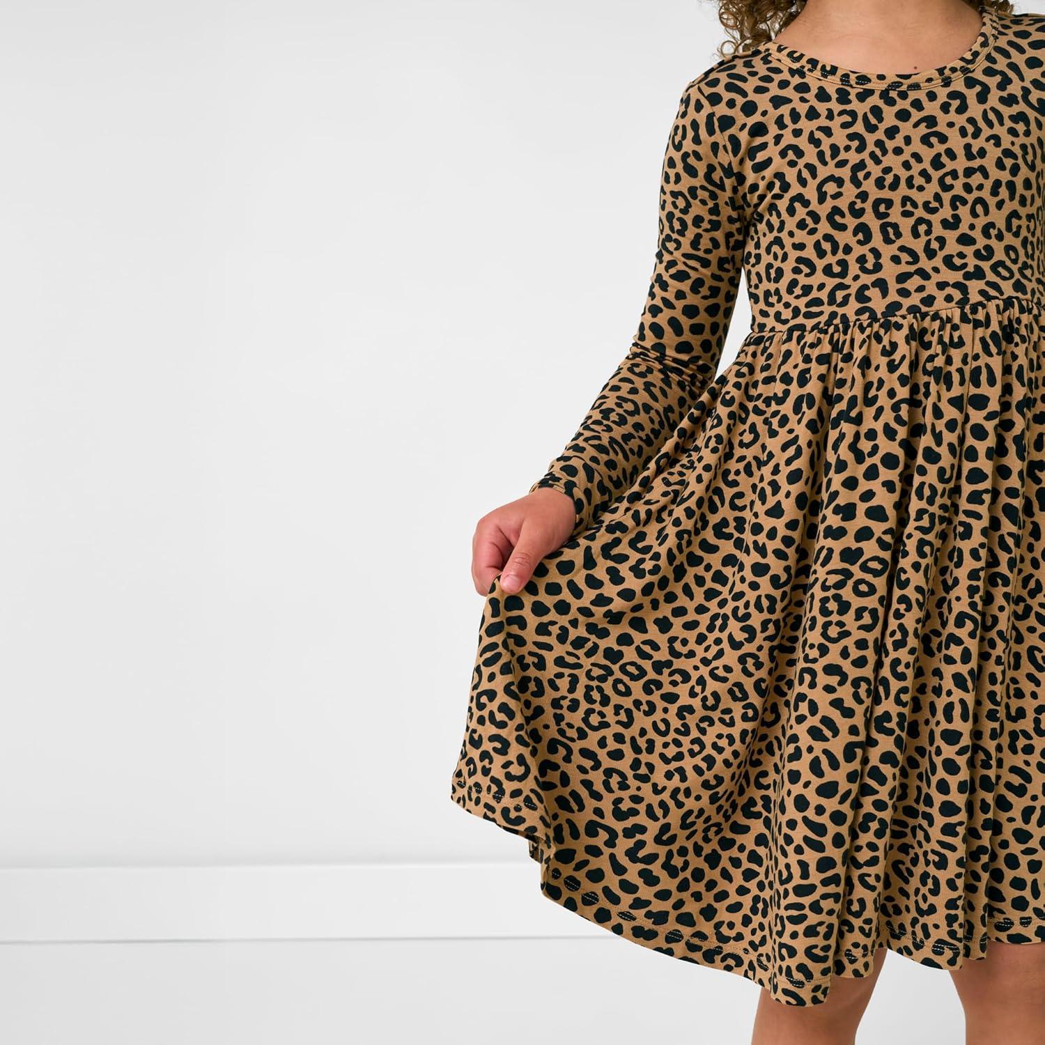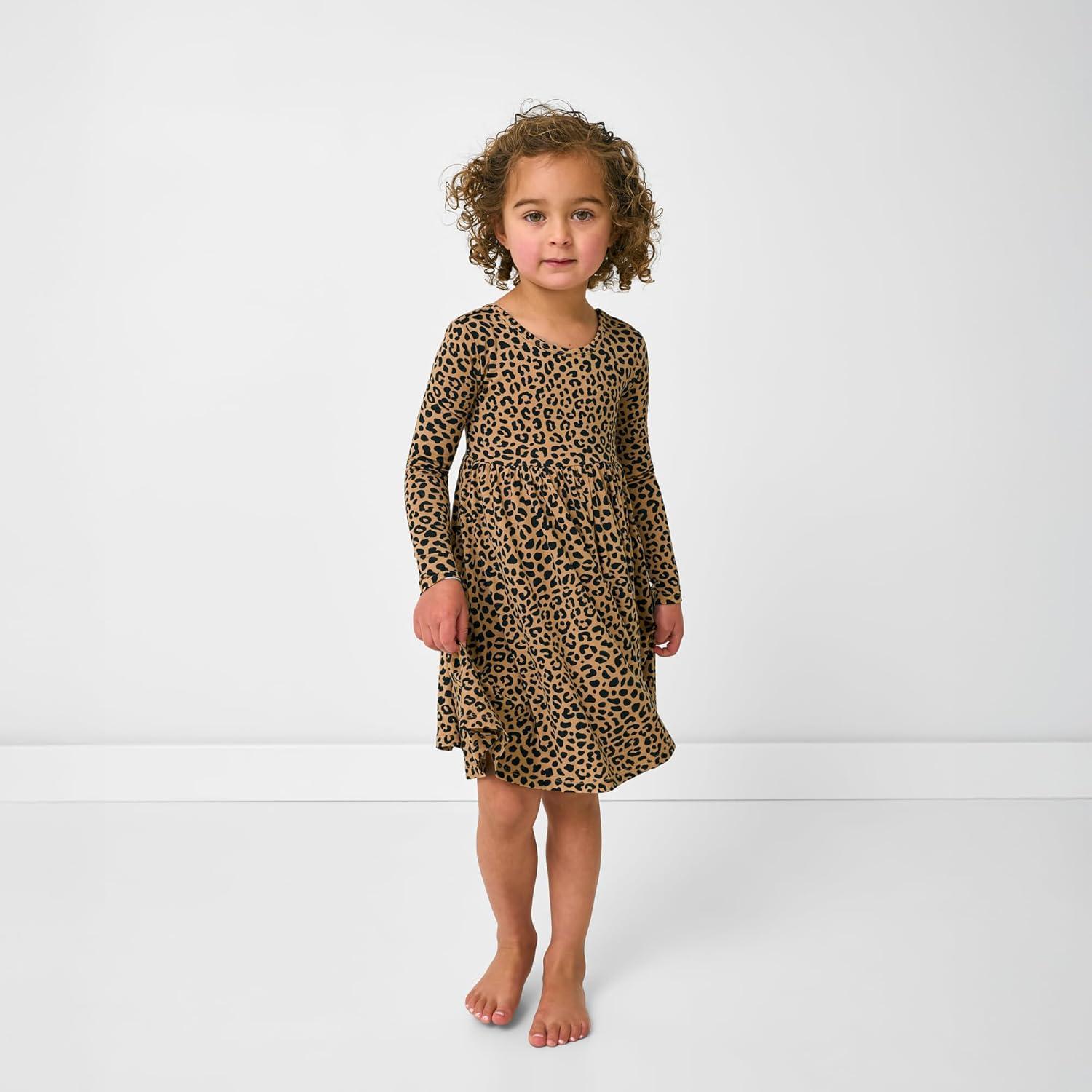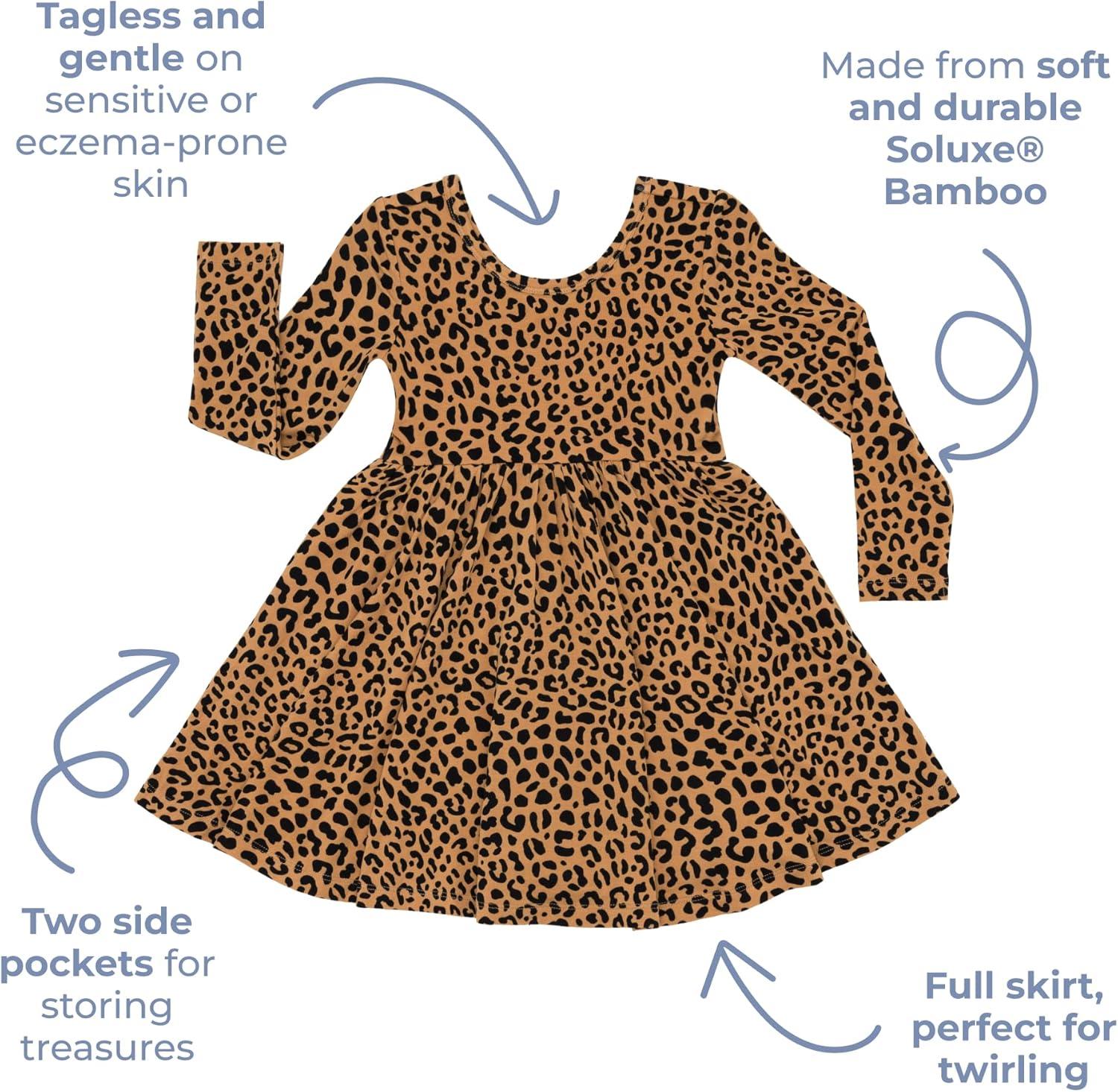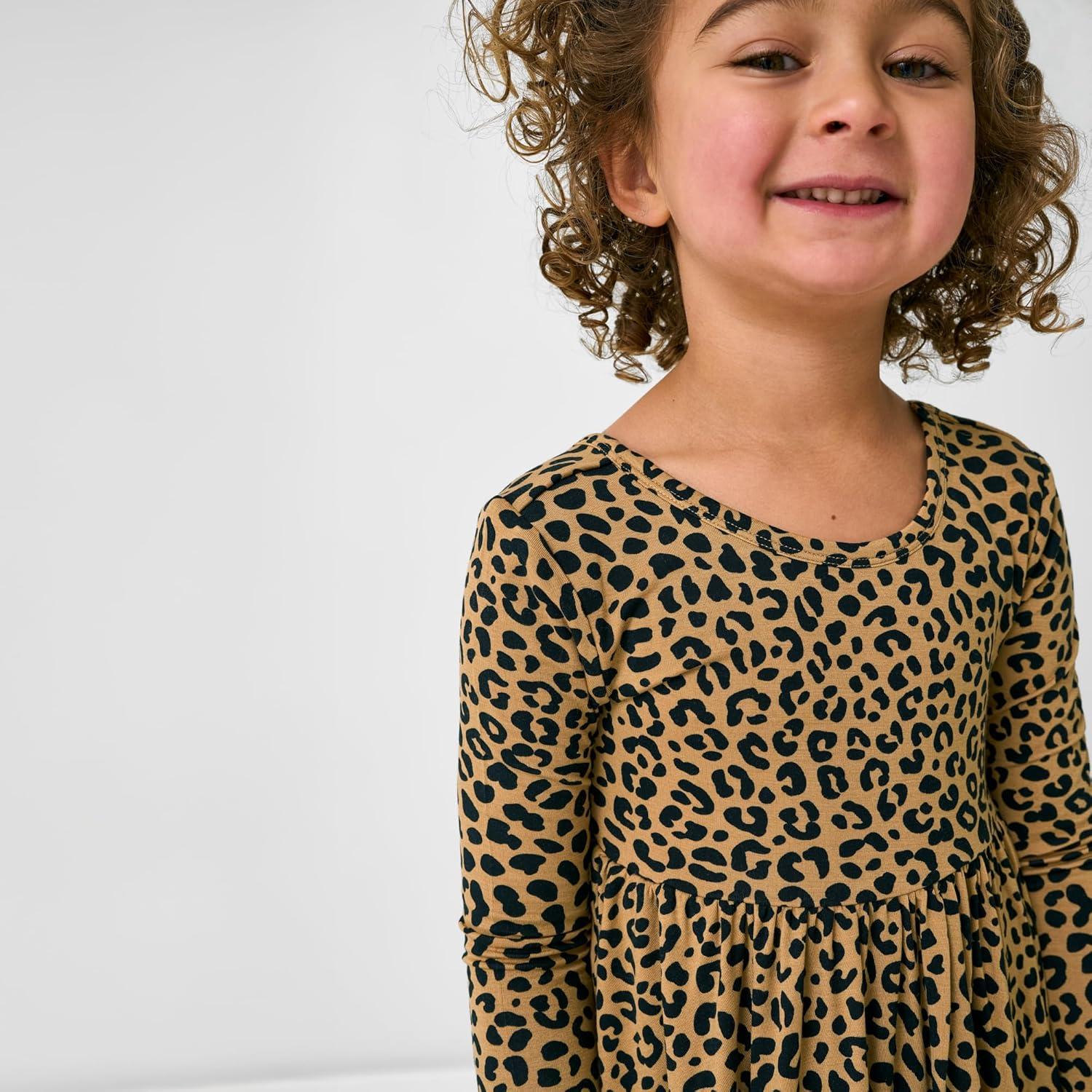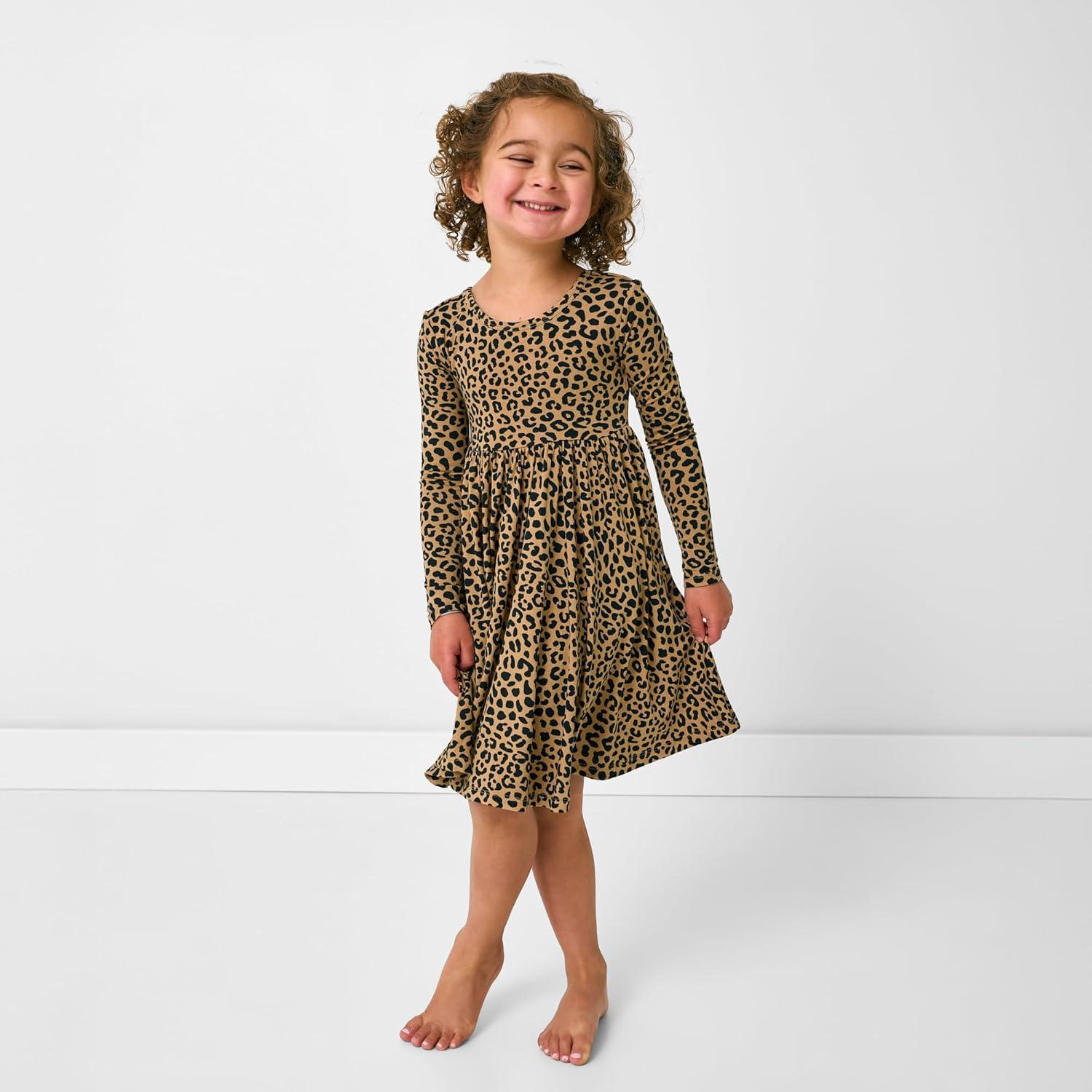 Little Sleepies Long Sleeve Twirl Dress for Girls – Viscose from Bamboo Toddler Dresses w/Pockets & Tagless Comfort(Classic Leopard)