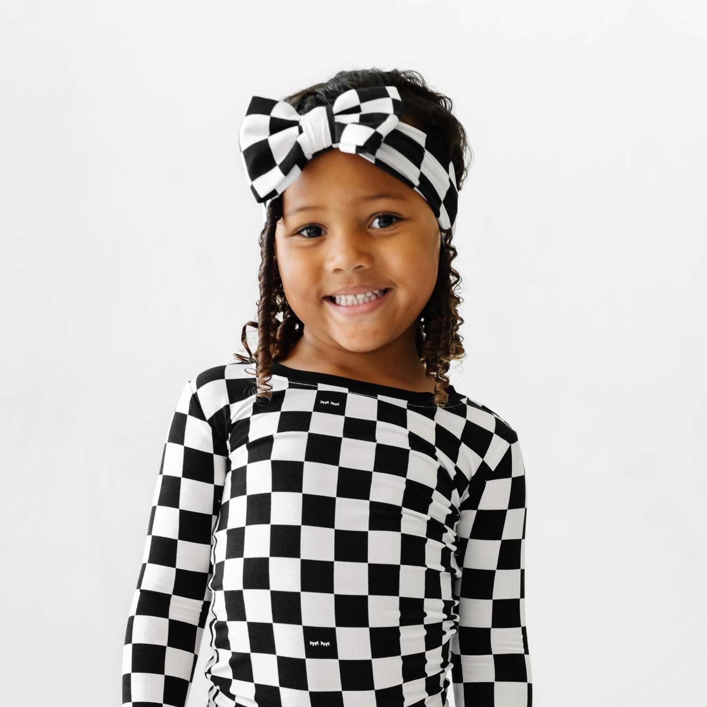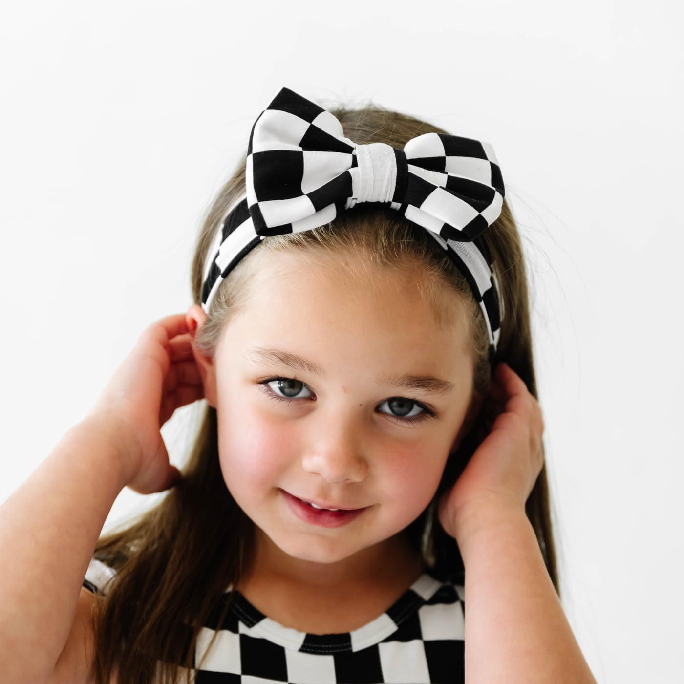 Little Sleepies Luxe Bow Headband, Sweet Pea(Checks)