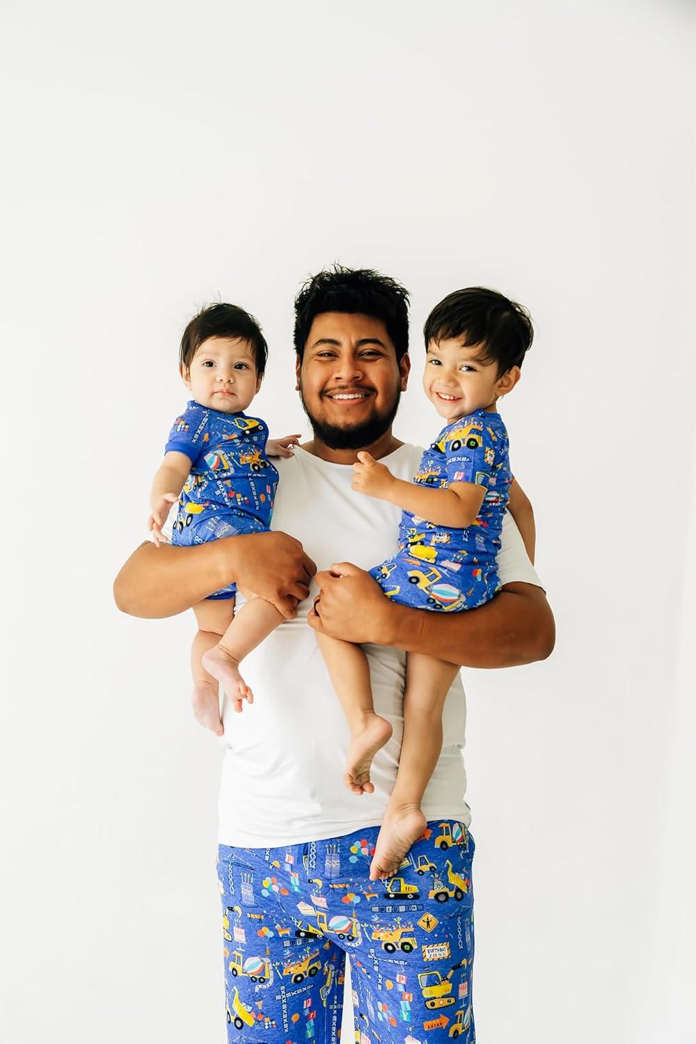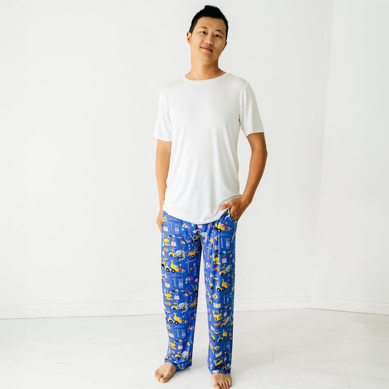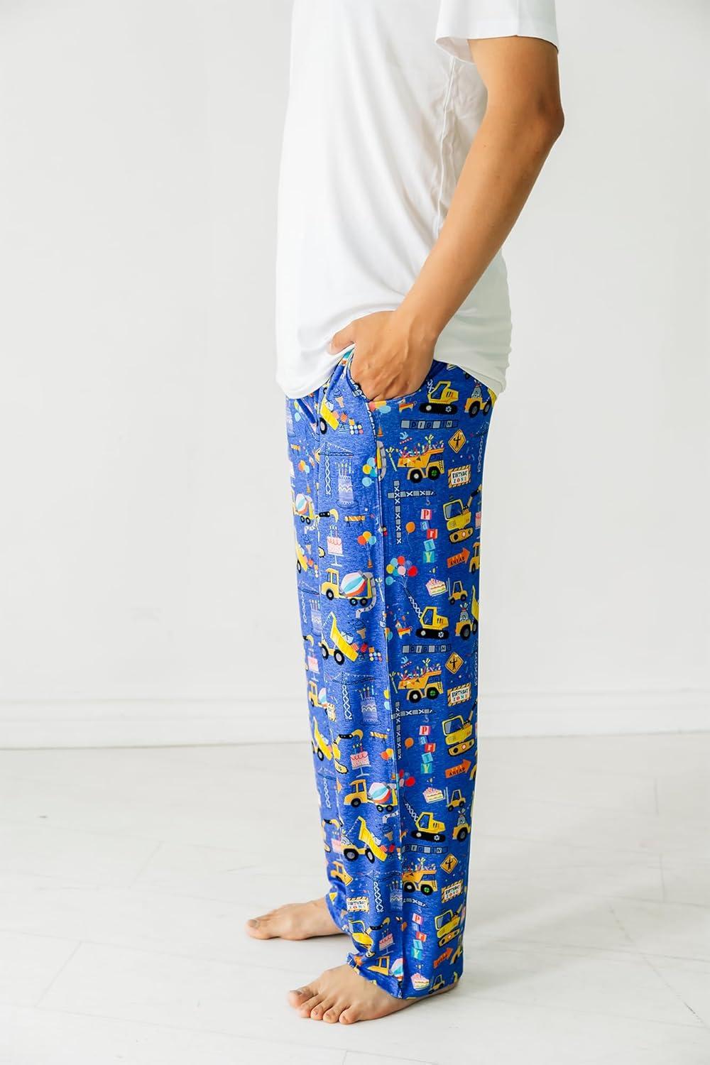 Little Sleepies Mens Pajama Pants, Soft Viscose from Bamboo PJ Bottoms for Family Matching Set, Mens Sleepwear PJs w/Pockets(Birthday Builders)