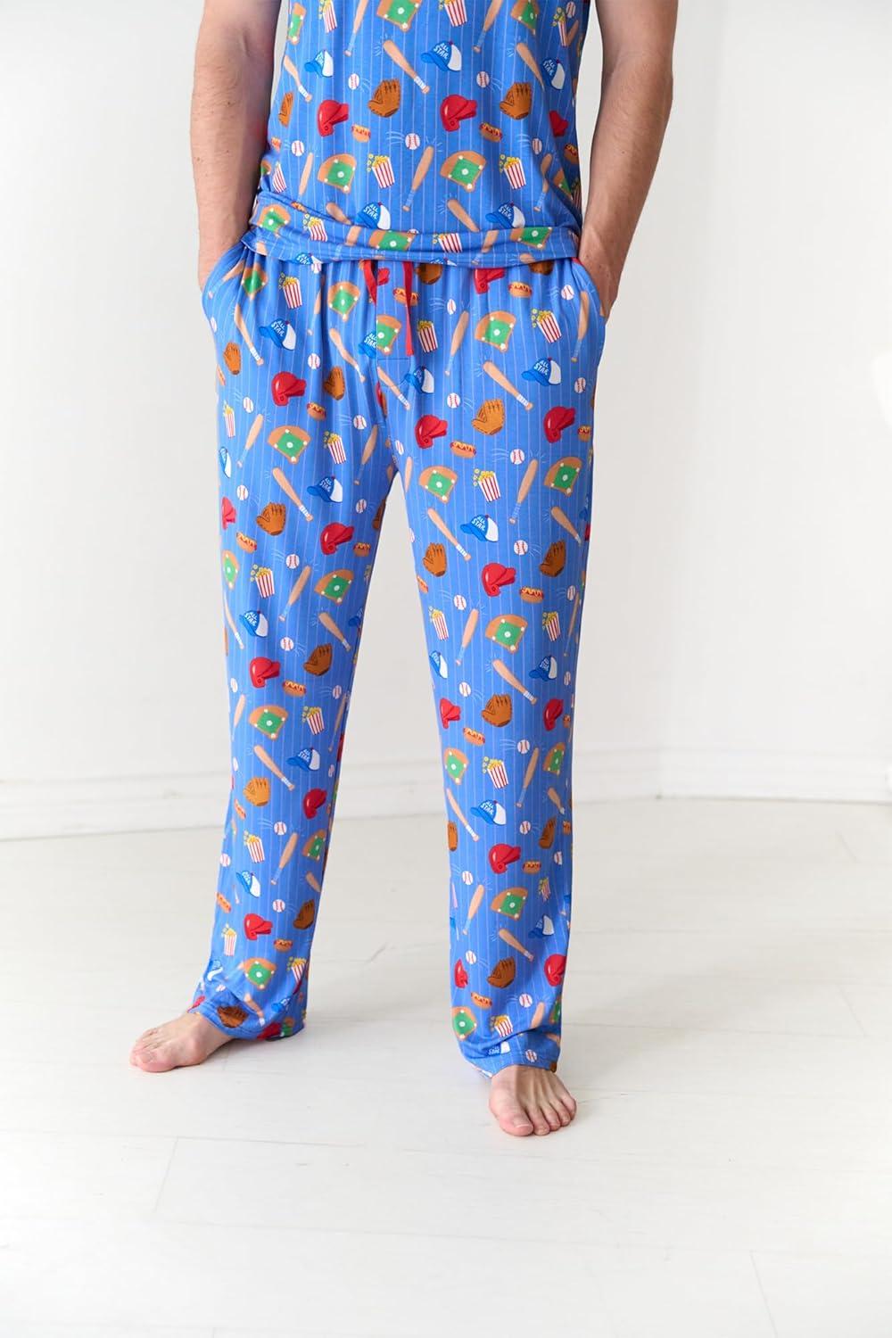Little Sleepies Mens Pajama Pants, Soft Viscose from Bamboo PJ Bottoms for Family Matching Set, Mens Sleepwear PJs w/Pockets(Blue All Stars)