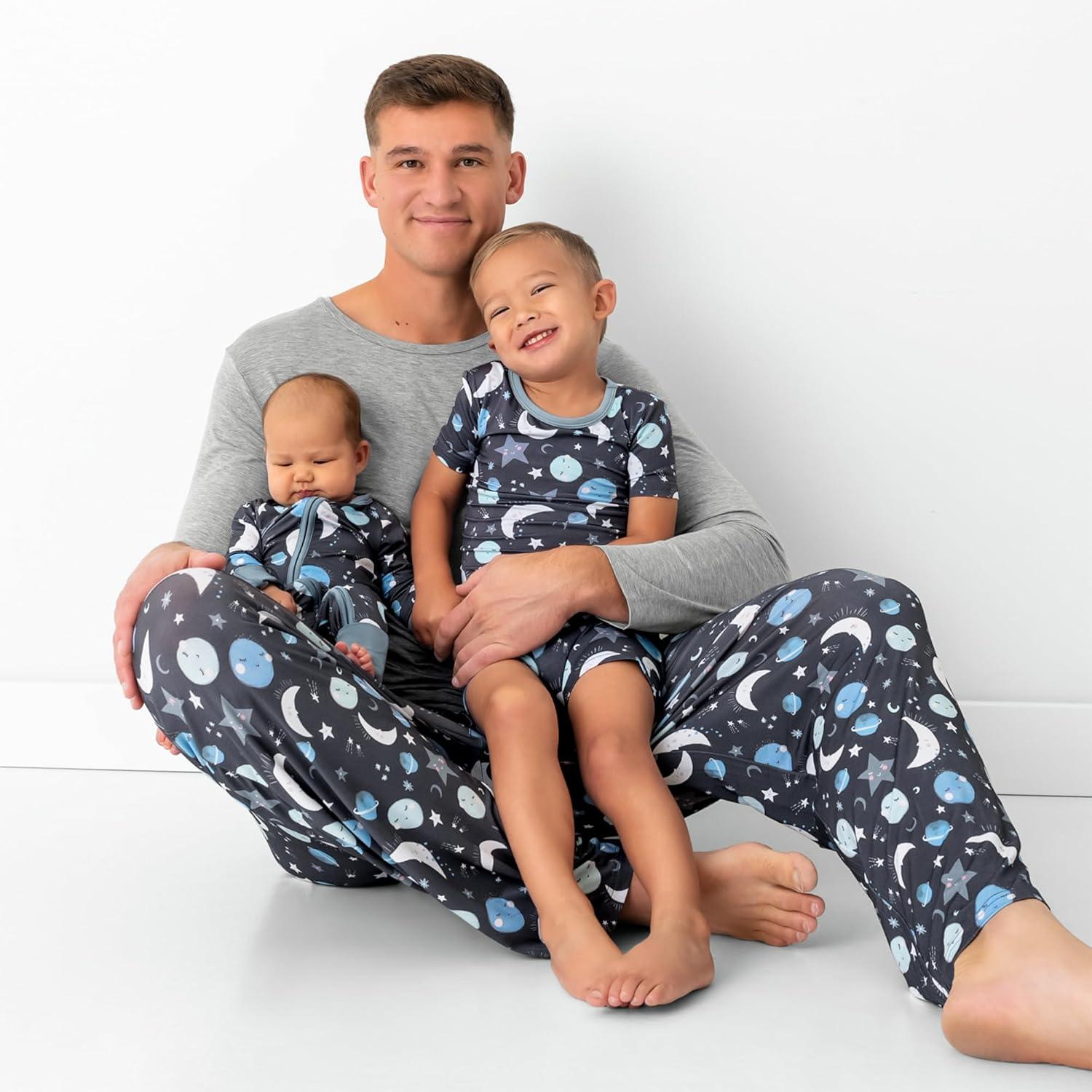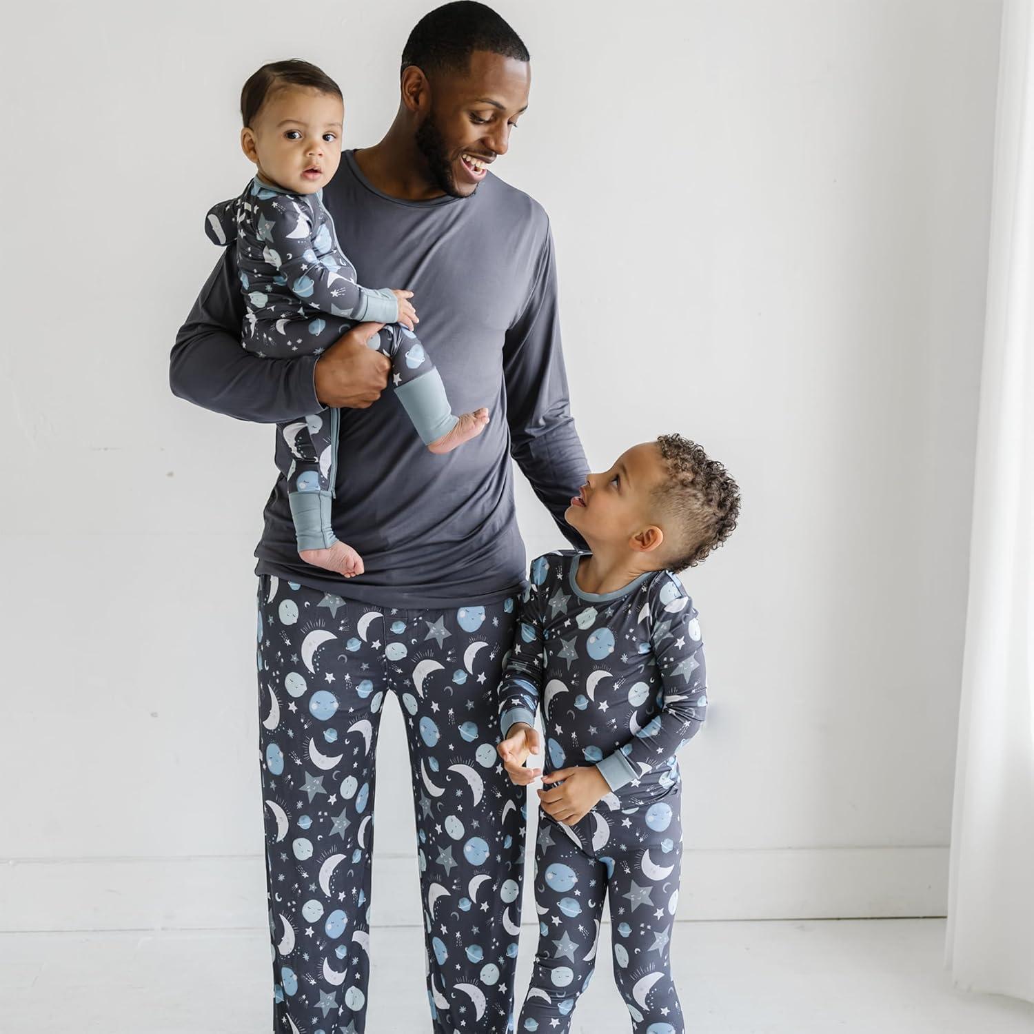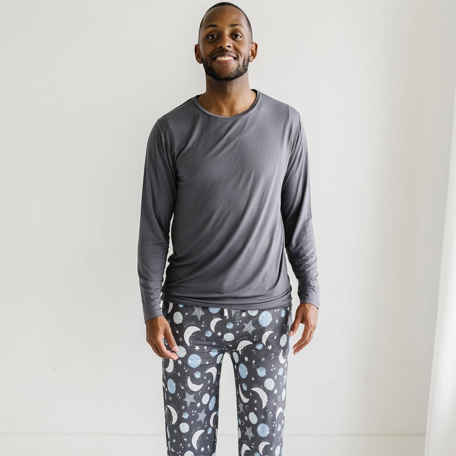 Little Sleepies Mens Pajama Pants, Soft Viscose from Bamboo PJ Bottoms for Family Matching Set, Mens Sleepwear PJs w/Pockets(Blue to the Moon & Back)