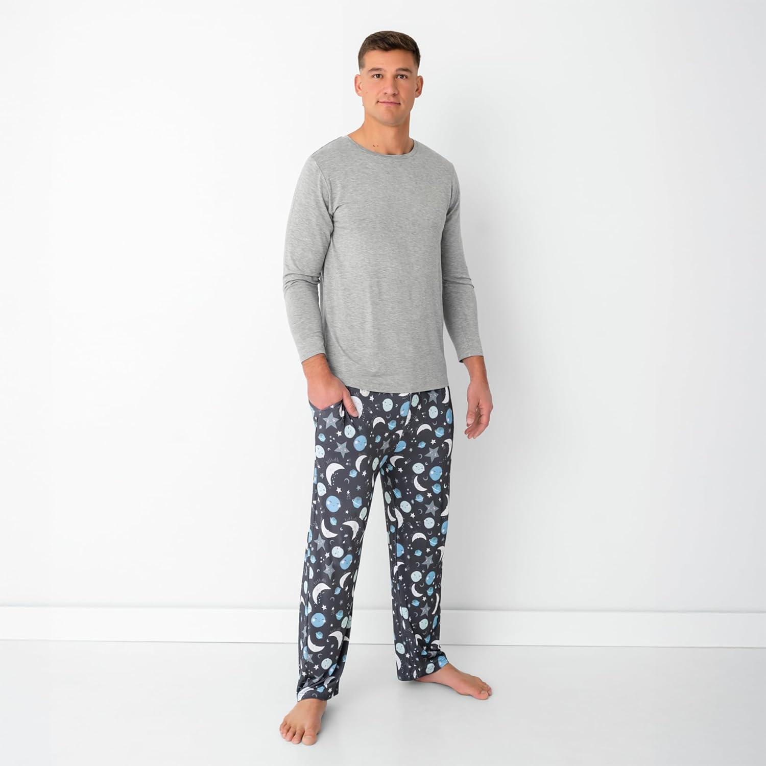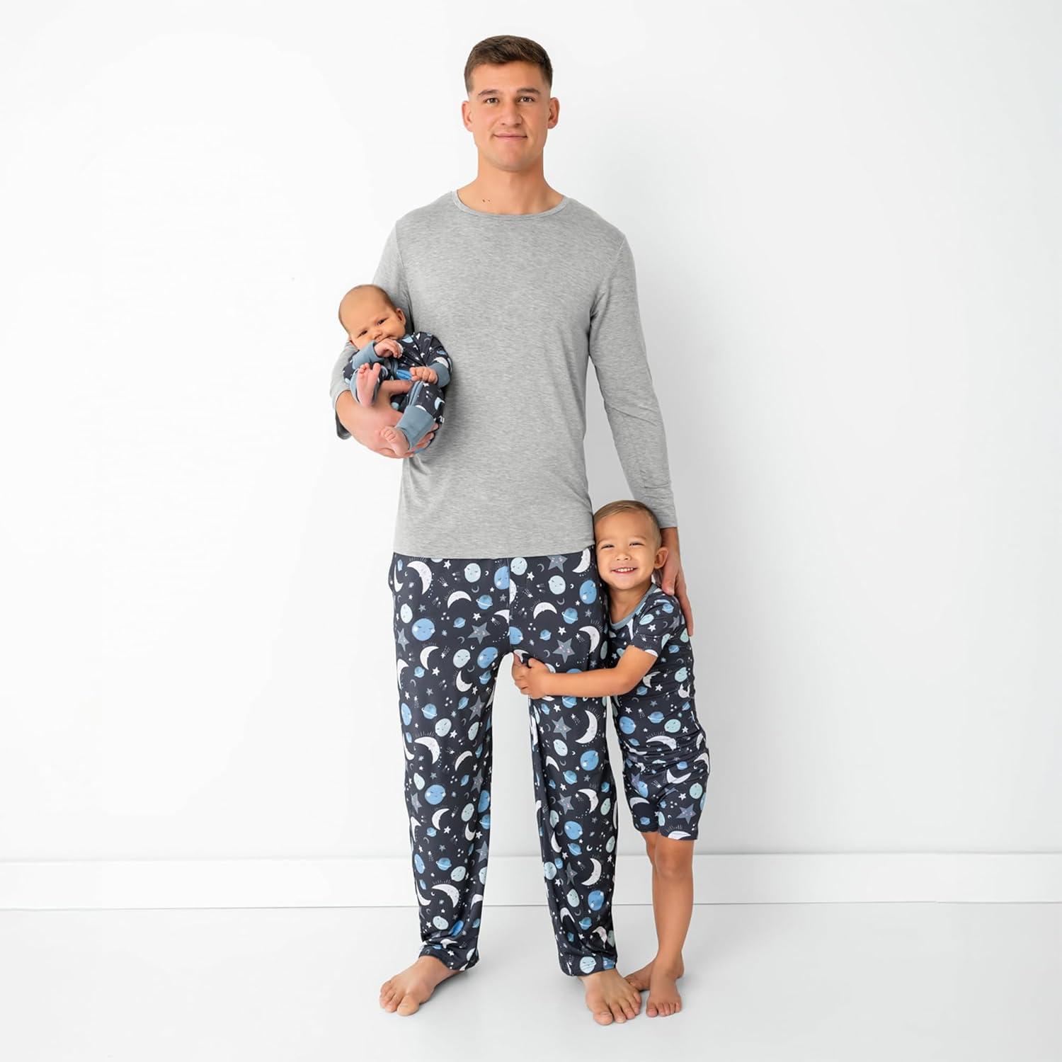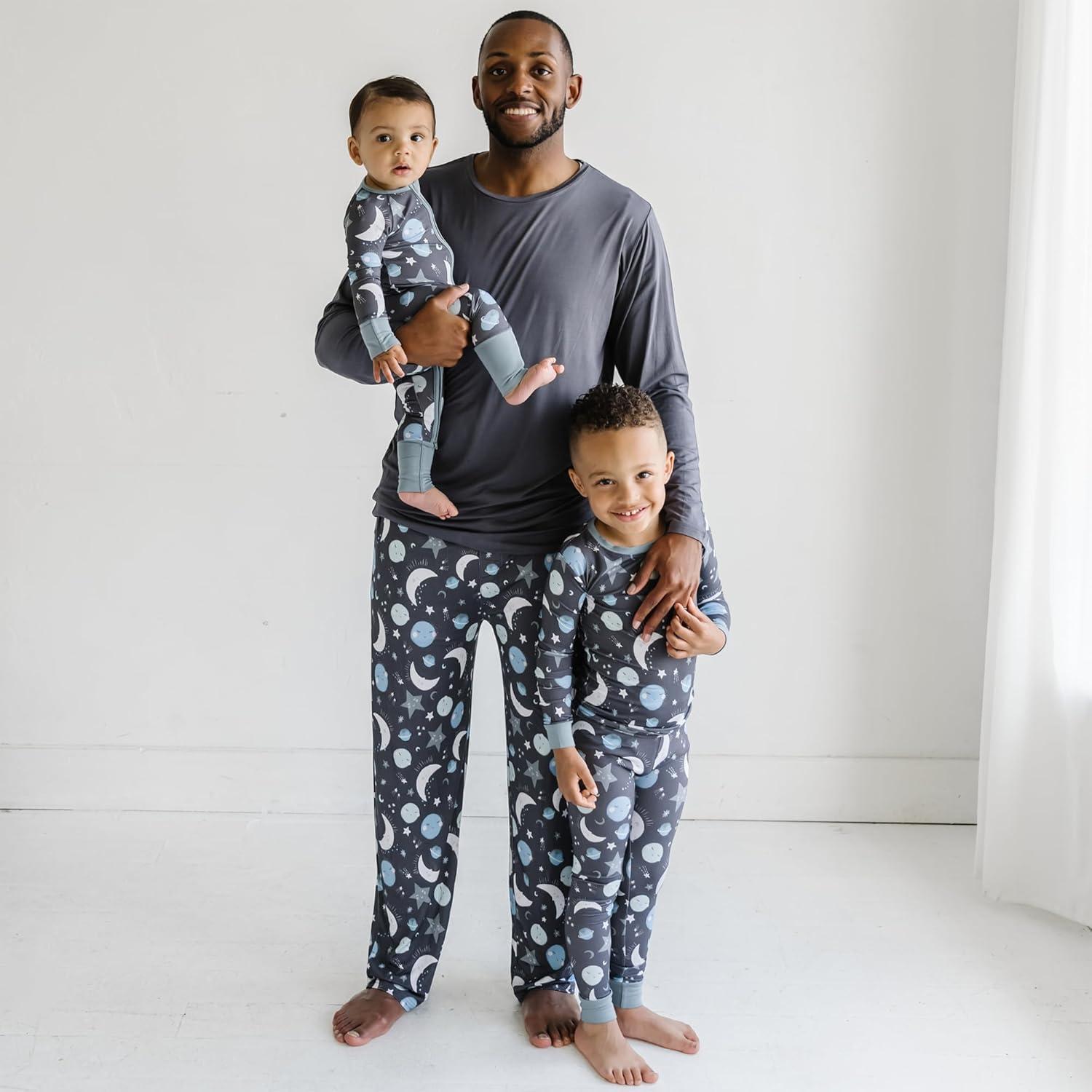Little Sleepies Mens Pajama Pants, Soft Viscose from Bamboo PJ Bottoms for Family Matching Set, Mens Sleepwear PJs w/Pockets(Blue to the Moon & Back)