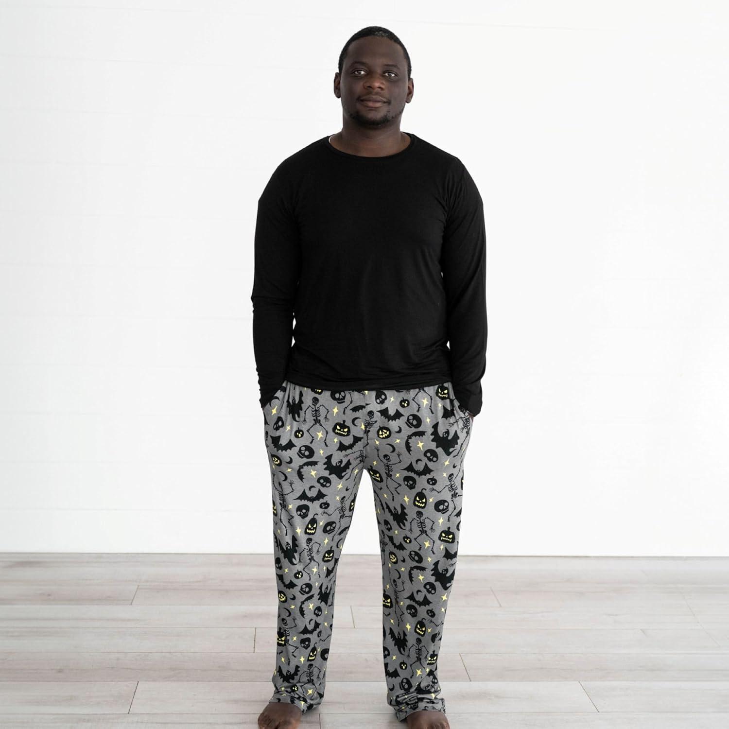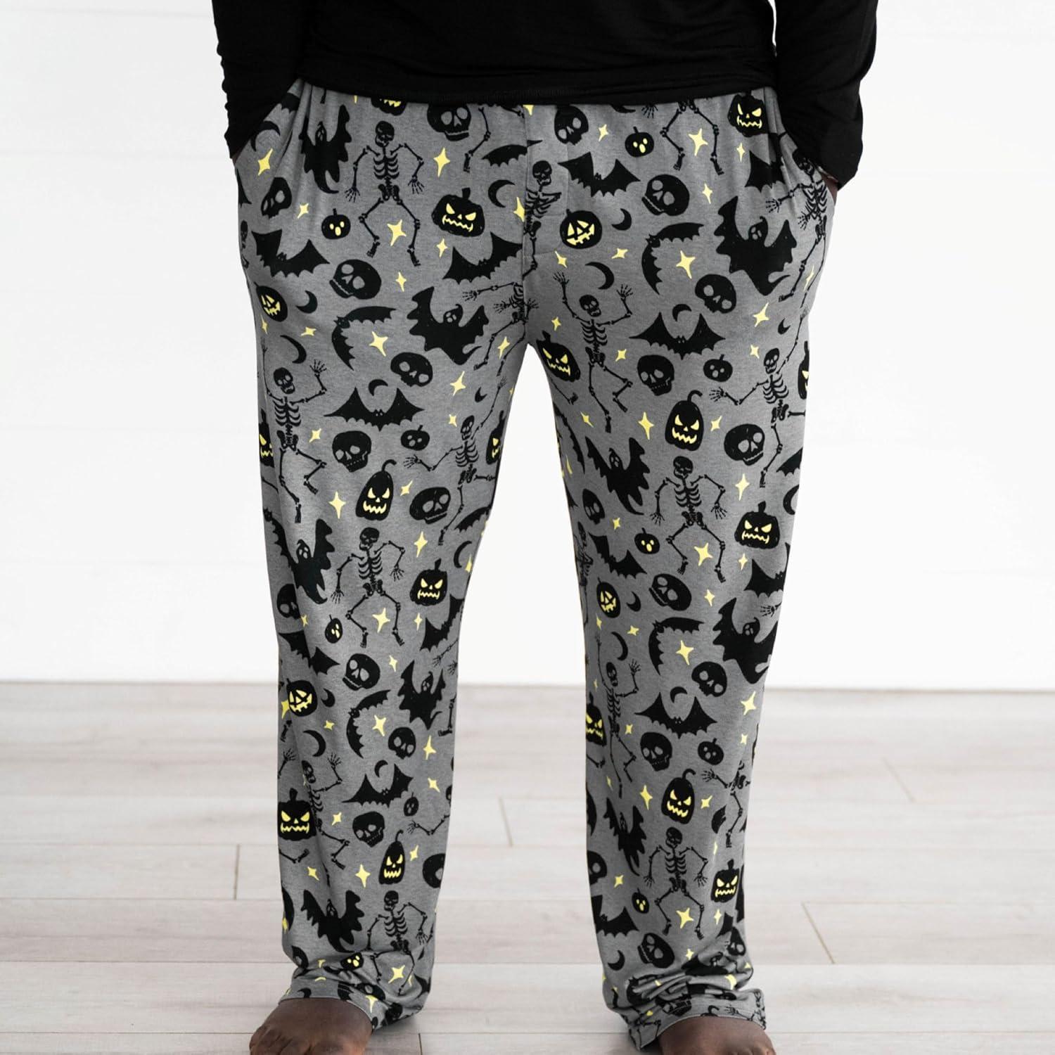 Little Sleepies Mens Pajama Pants, Soft Viscose from Bamboo PJ Bottoms for Family Matching Set, Mens Sleepwear PJs w/Pockets(Glowing Ghouls)