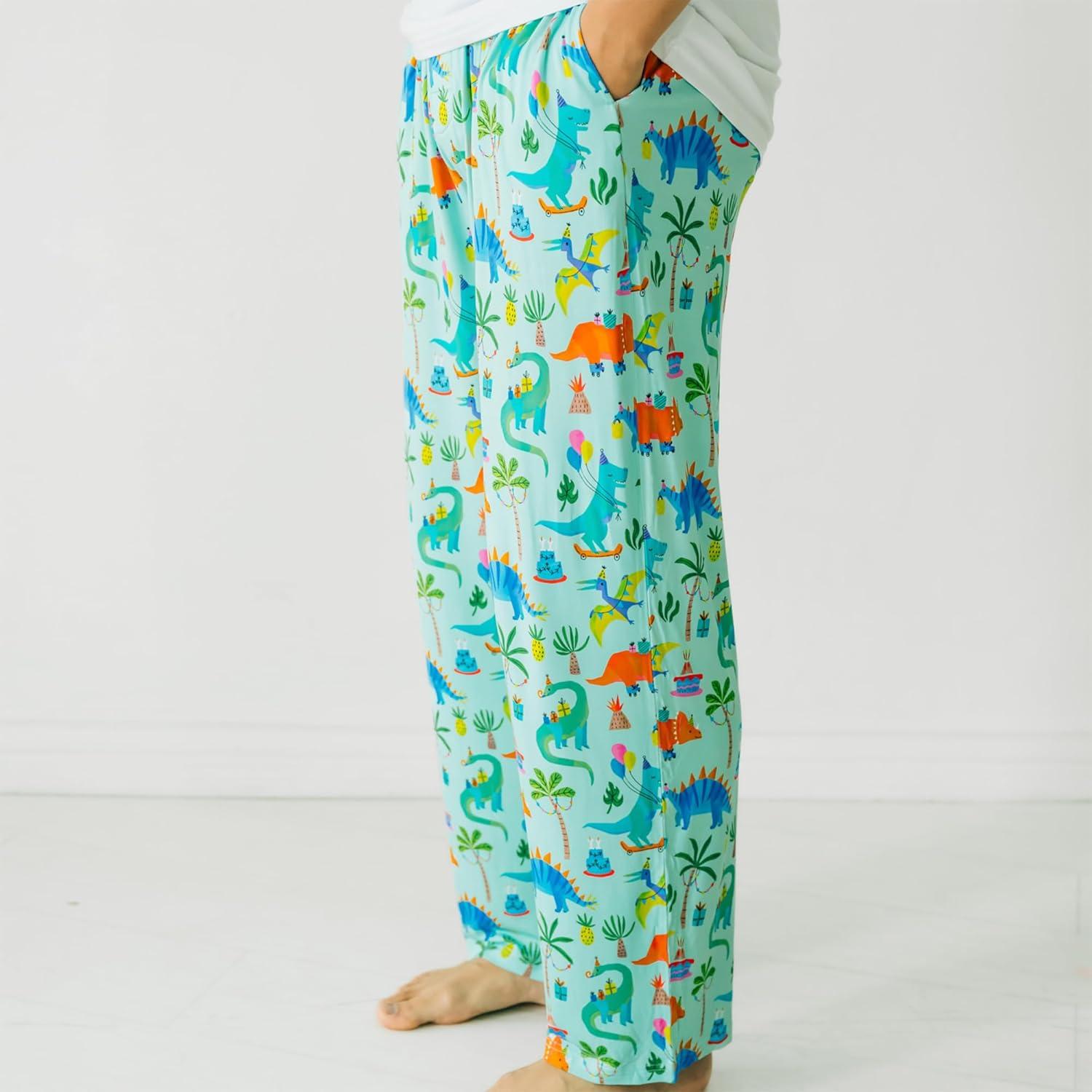Little Sleepies Mens Pajama Pants, Soft Viscose from Bamboo PJ Bottoms for Family Matching Set, Mens Sleepwear PJs w/Pockets(Prehistoric Party)