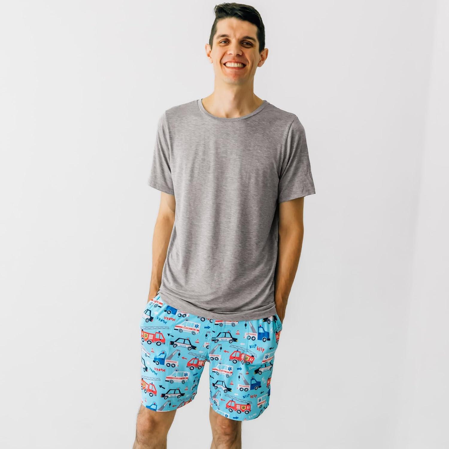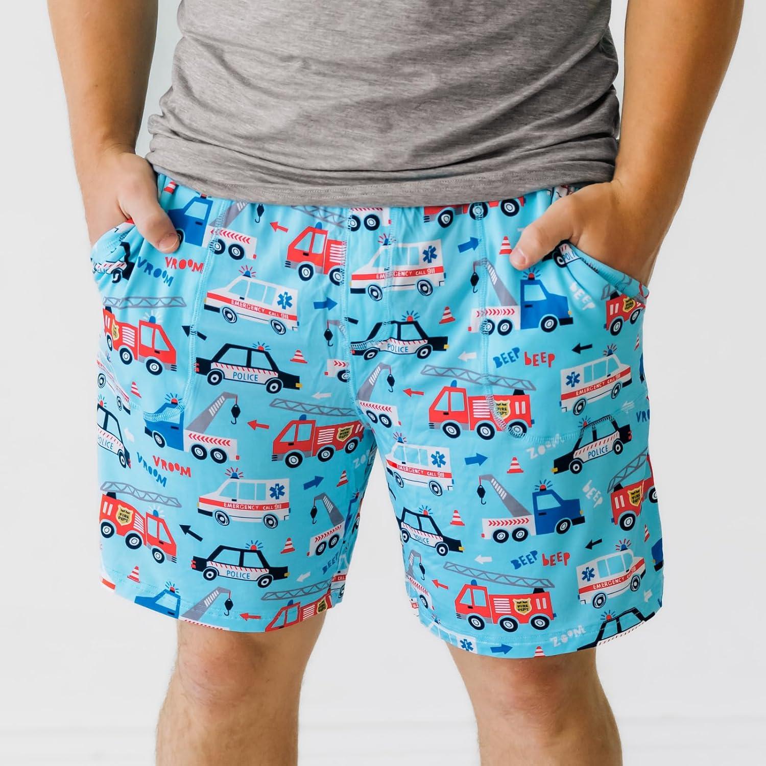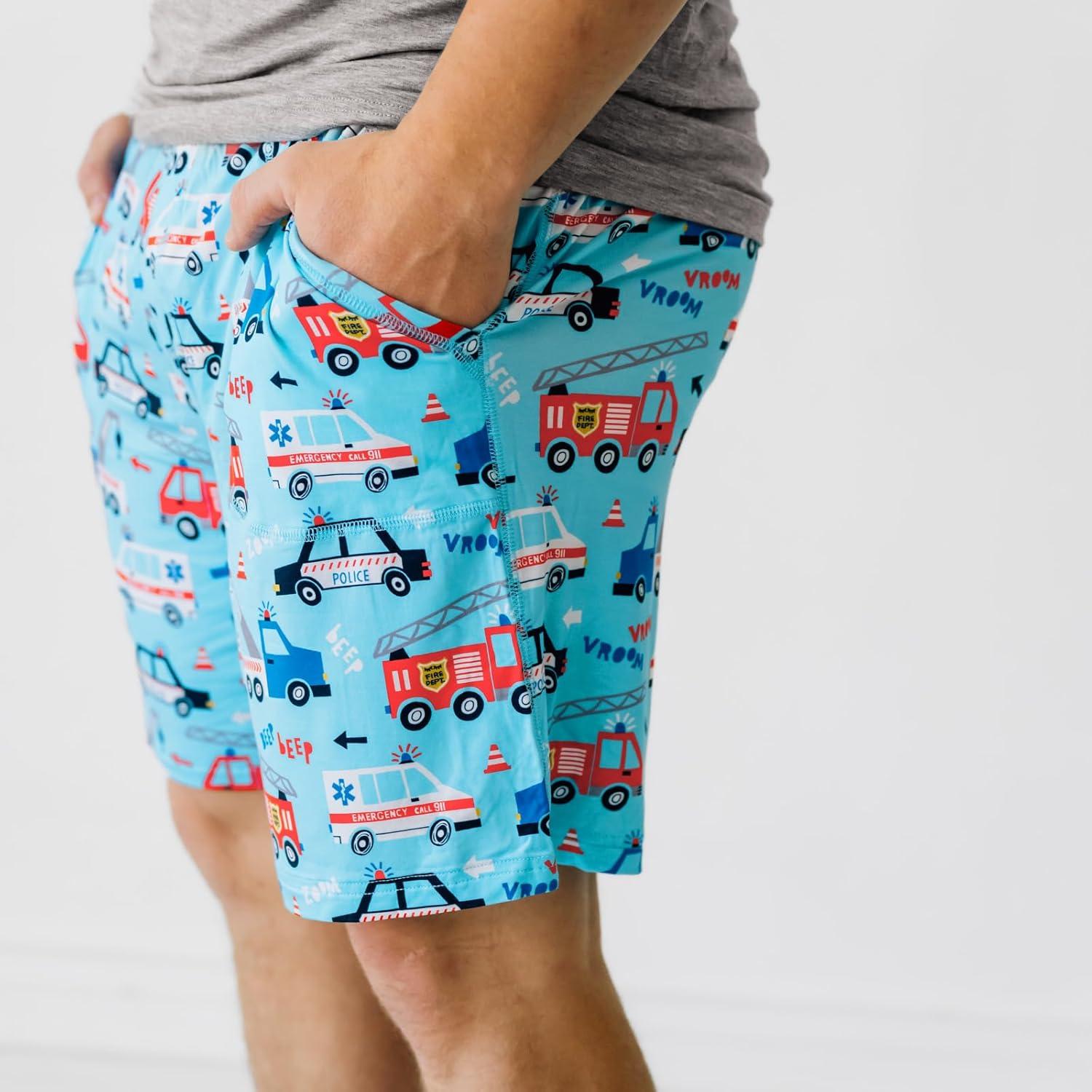 Little Sleepies Men’s Pajama Shorts, Viscose Derived from Bamboo Mens Sleep Bottoms, Lounge Shorts with Side Pockets(To the Rescue)