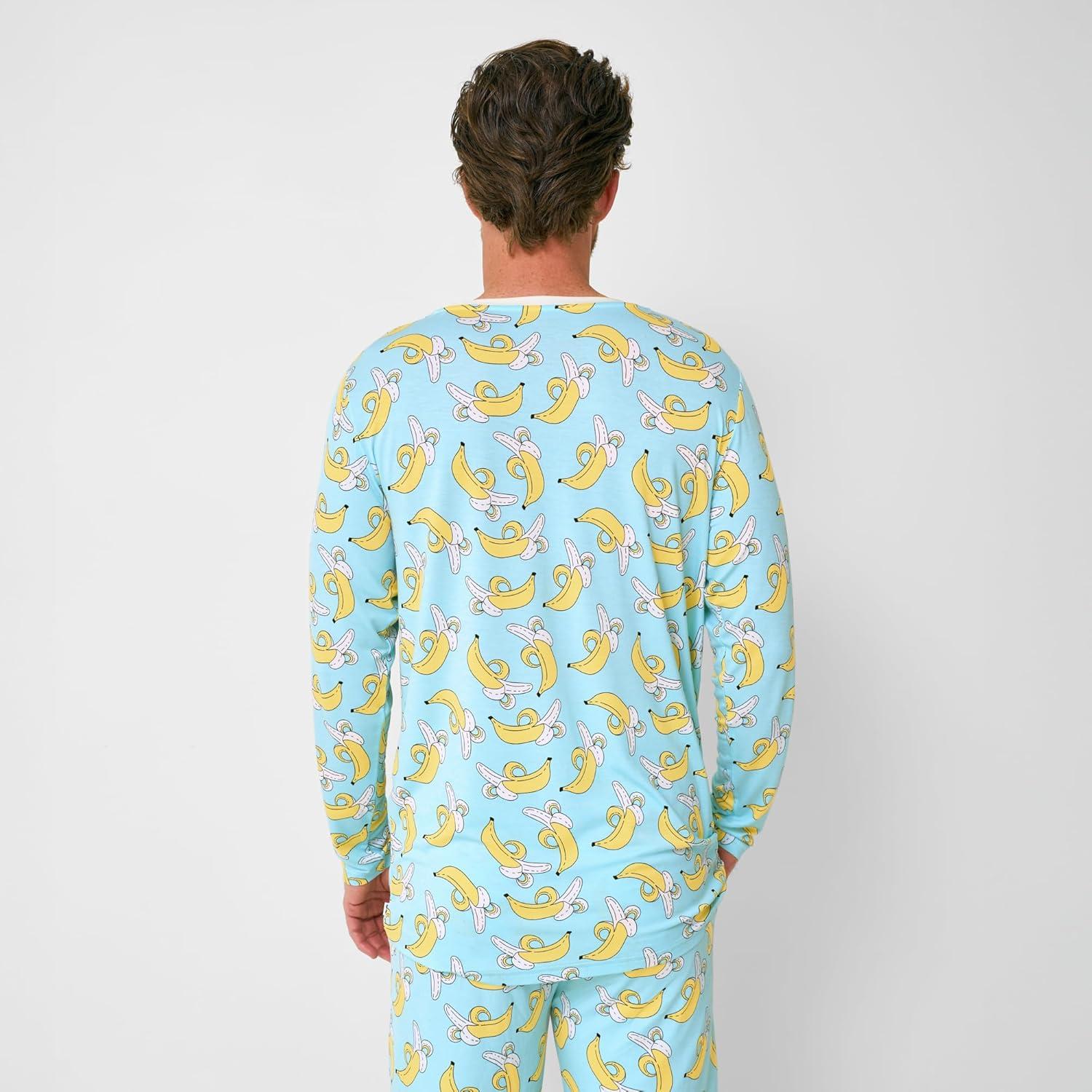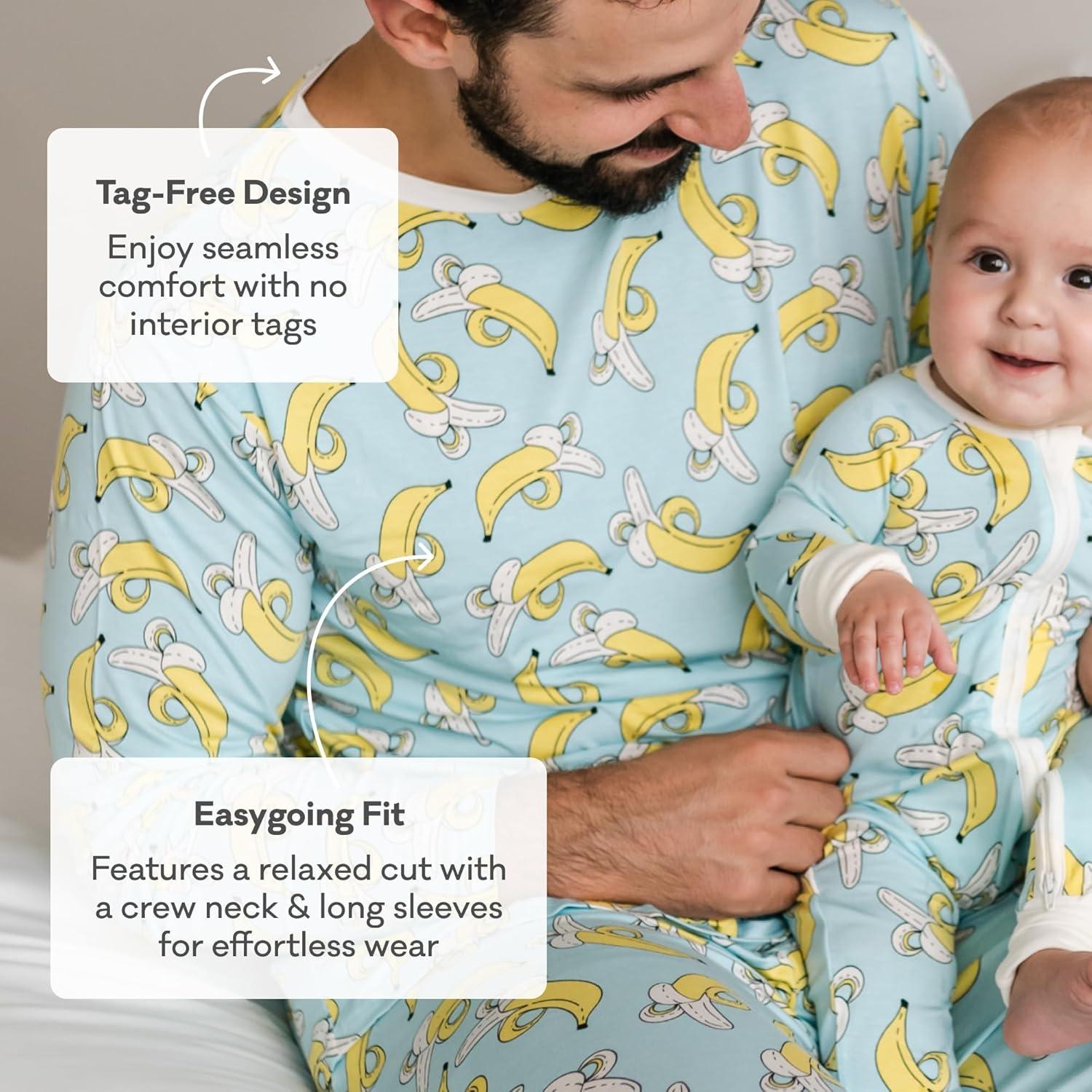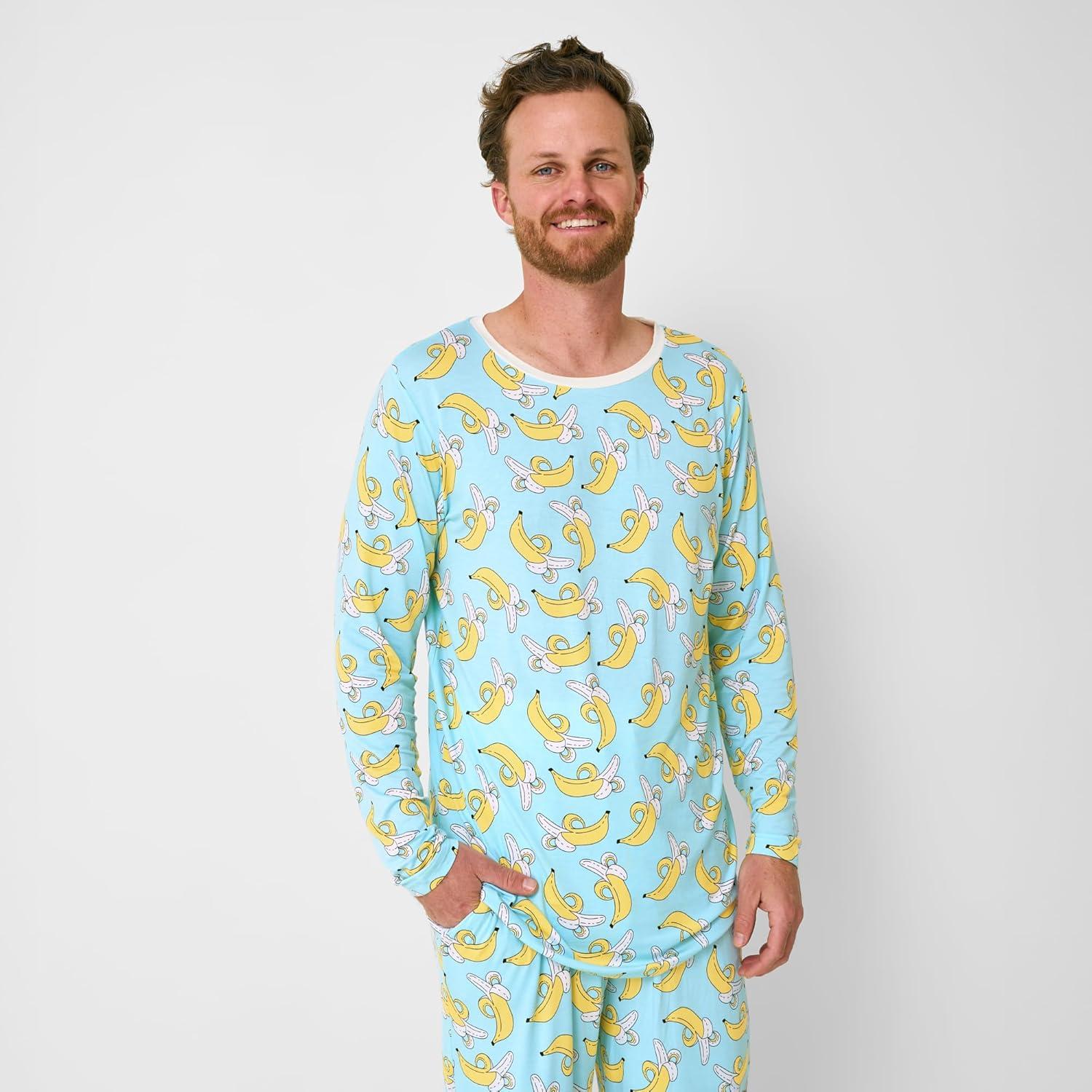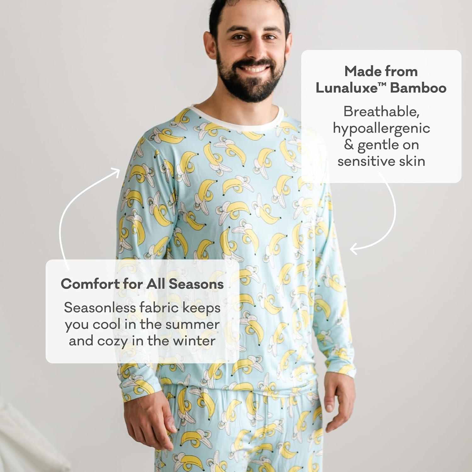 Little Sleepies Men’s Pajama T-Shirt, Soft Viscose from Bamboo PJ Top for Family Matching Mens Pajamas Set, Long Sleeve Top(Bananas)