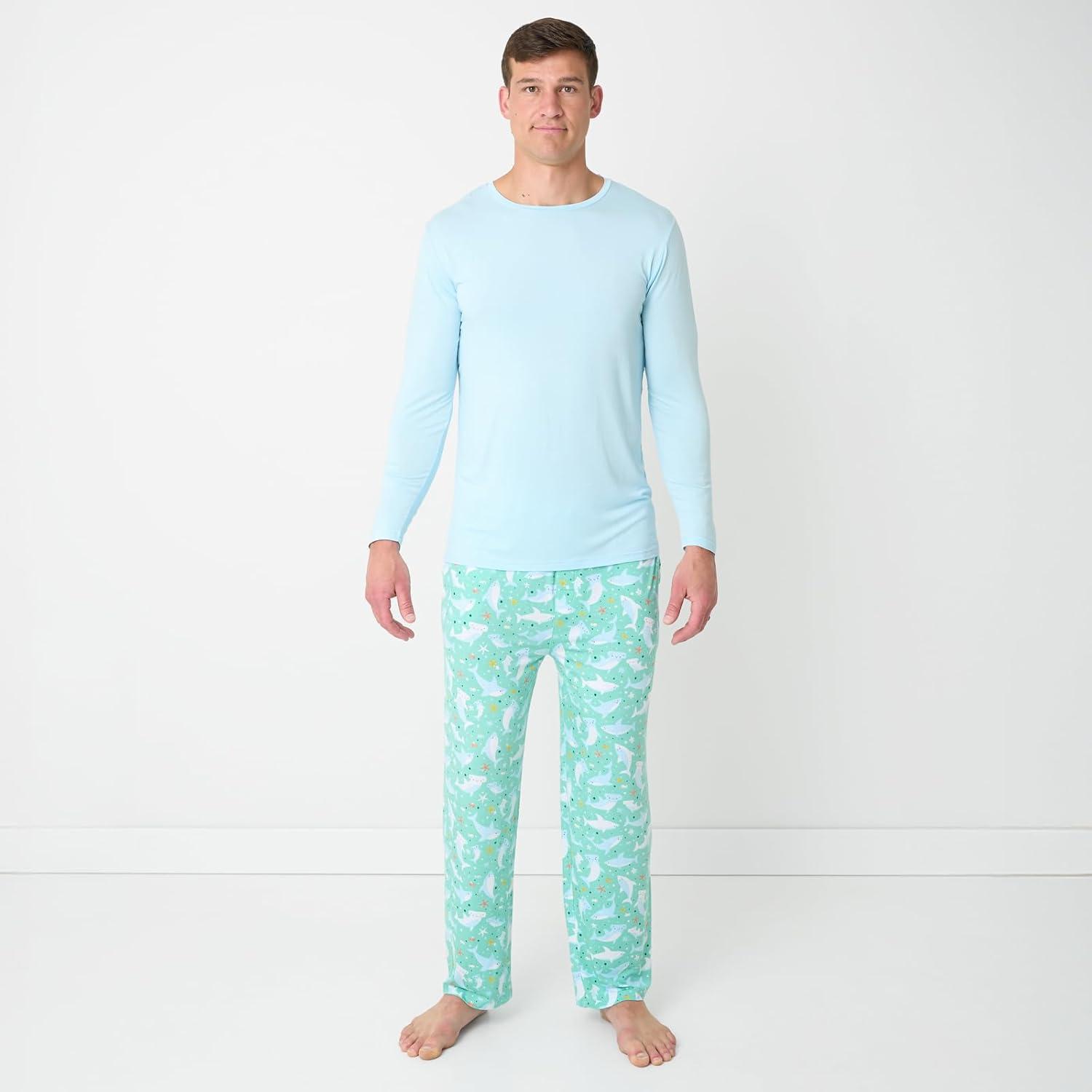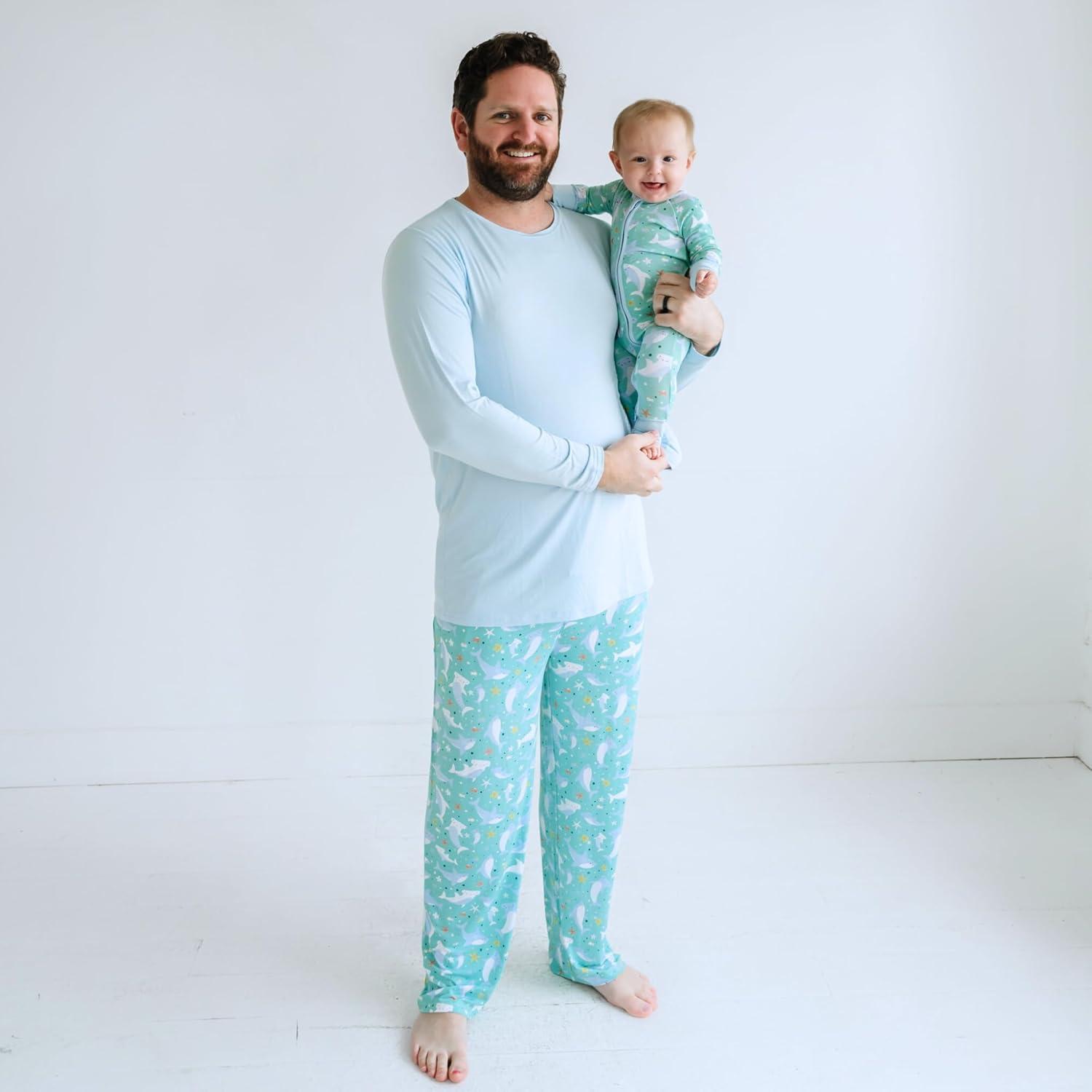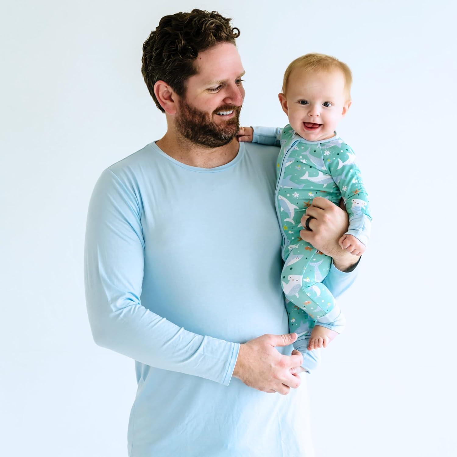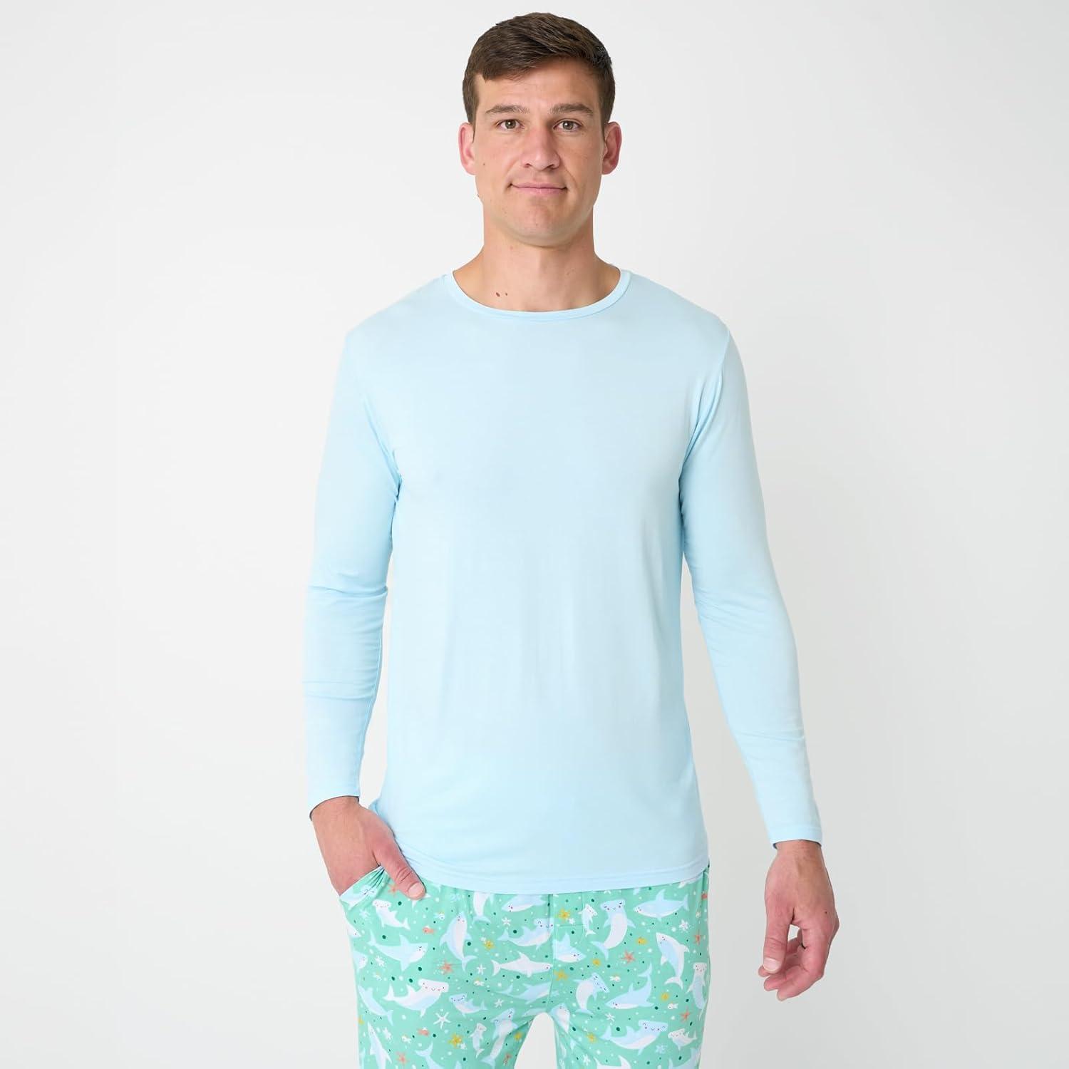 Little Sleepies Men’s Pajama T-Shirt, Soft Viscose from Bamboo PJ Top for Family Matching Mens Pajamas Set, Long Sleeve Top(Light Blue)