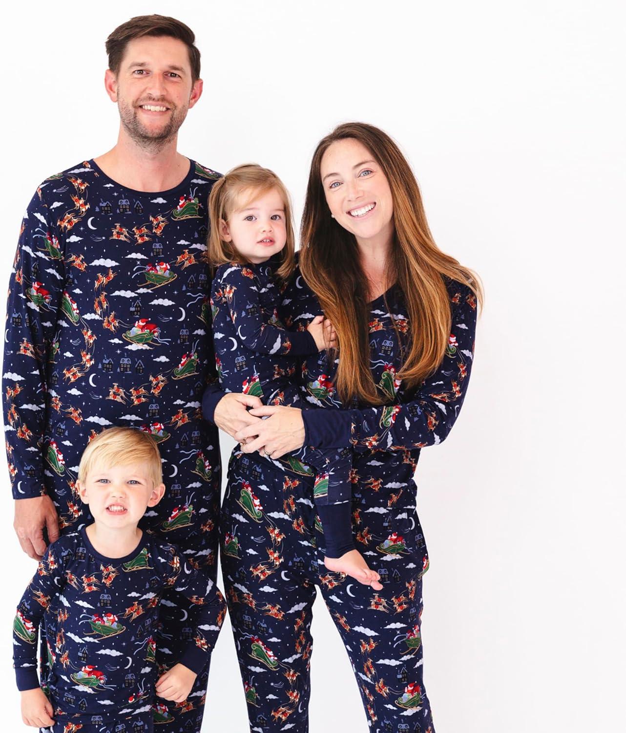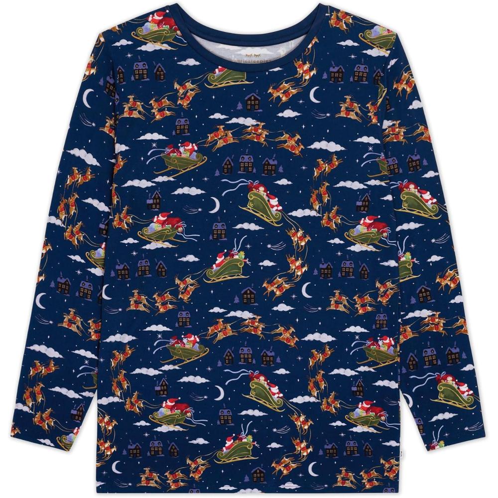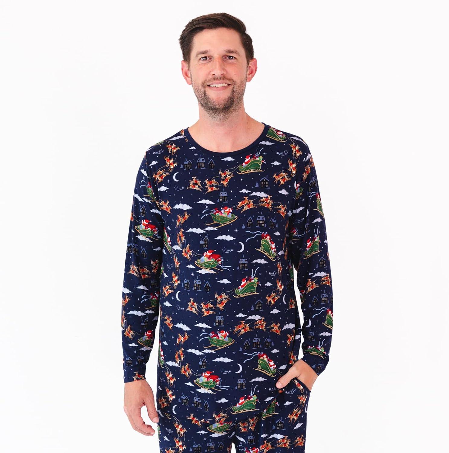 Little Sleepies Men’s Pajama T-Shirt, Soft Viscose from Bamboo PJ Top for Family Matching Mens Pajamas Set, Long Sleeve Top(Santa’s Sleigh)