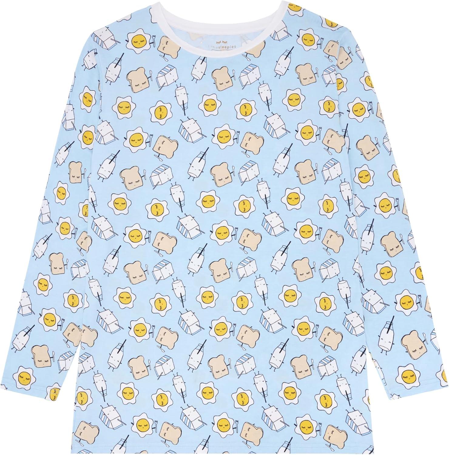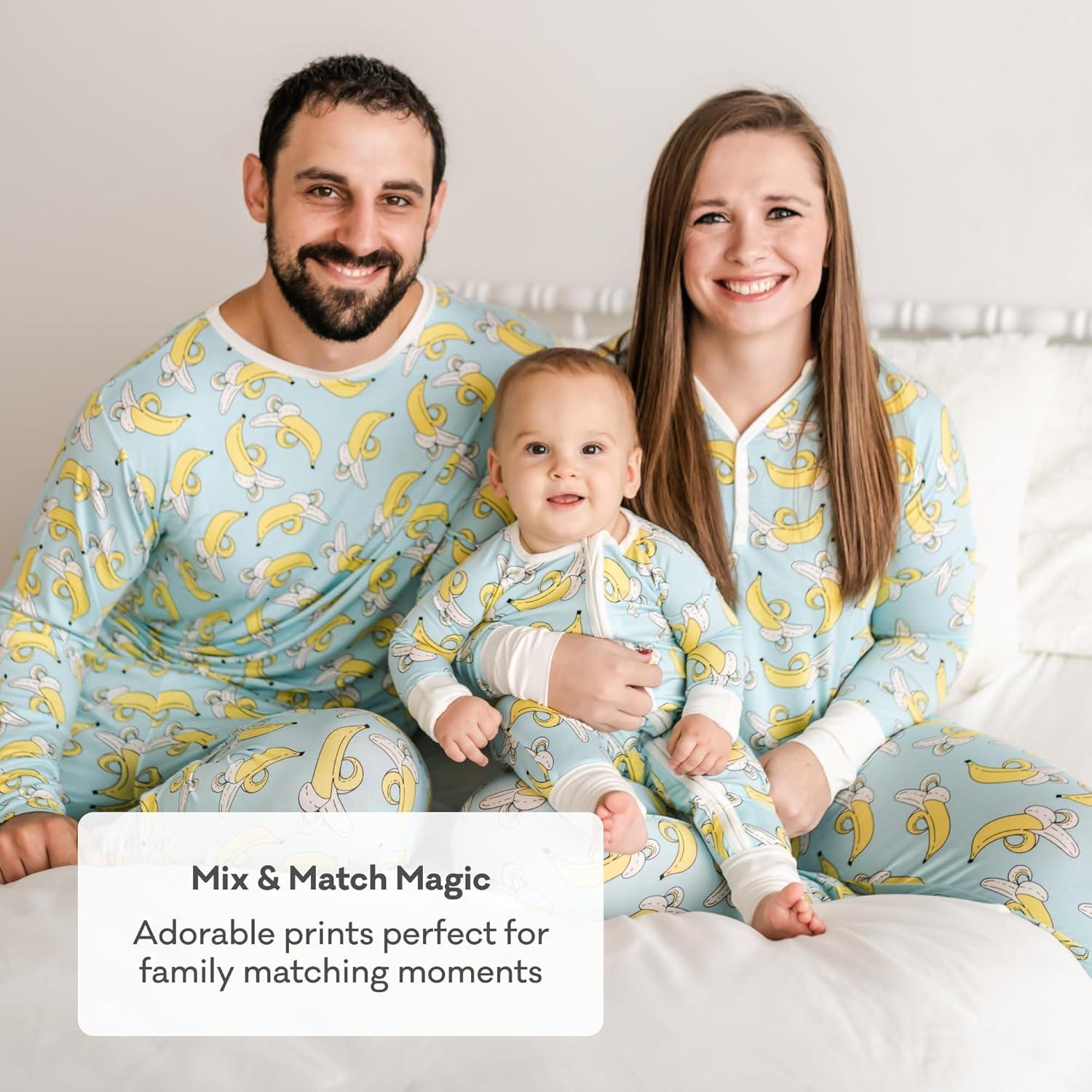 Little Sleepies New Father’s Bundle, Includes Mens Pajama Top and Bottoms, Newborn 2-Way Zipper Pajamas, Viscose Derived from Bamboo, Size Newborn and Large, Blue Breakfast Buddies