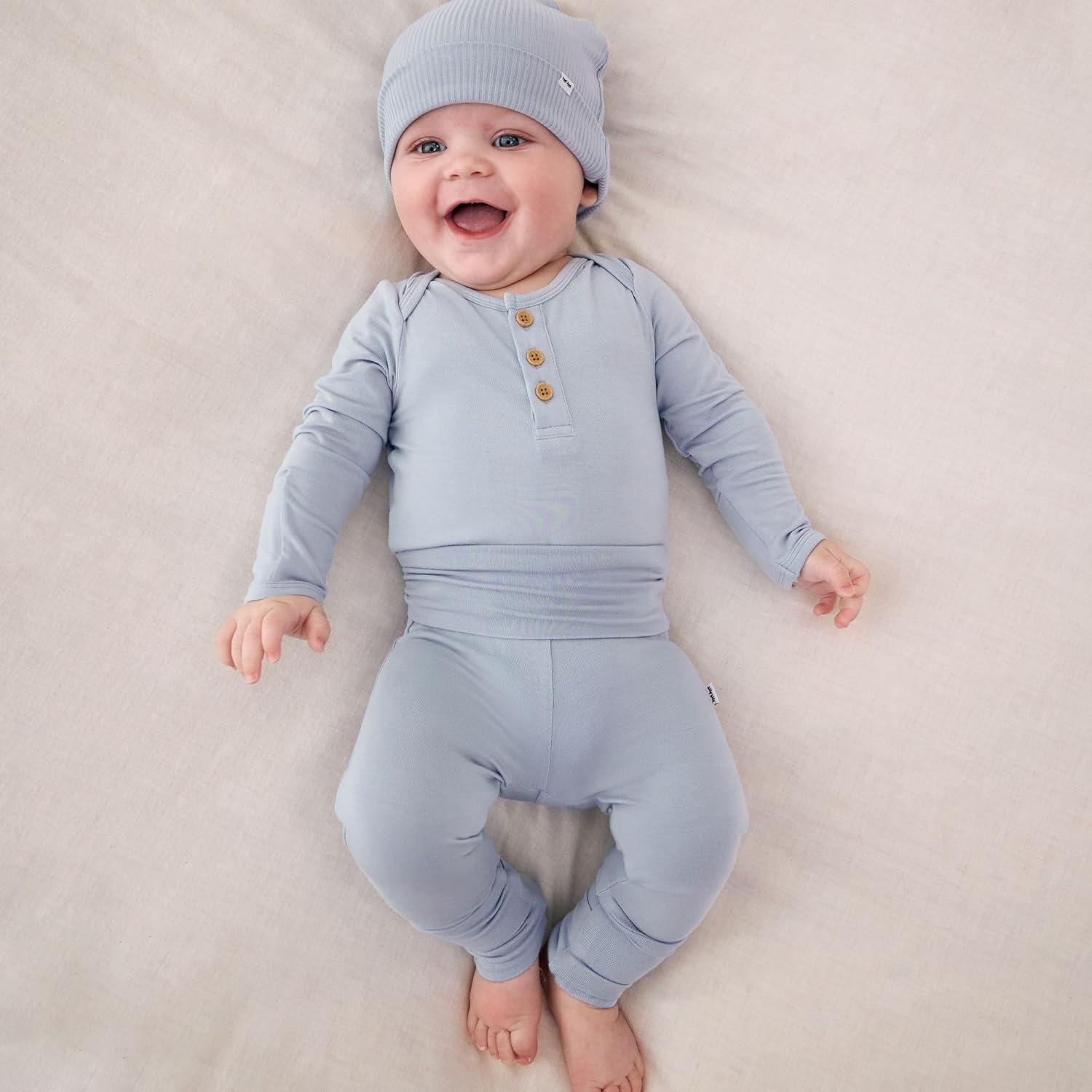 Little Sleepies Newborn Henley Bodysuit, Soft Viscose from Bamboo Long Sleeve Bodysuit for Baby Boys & Girls, Baby Clothes(Light Fog)