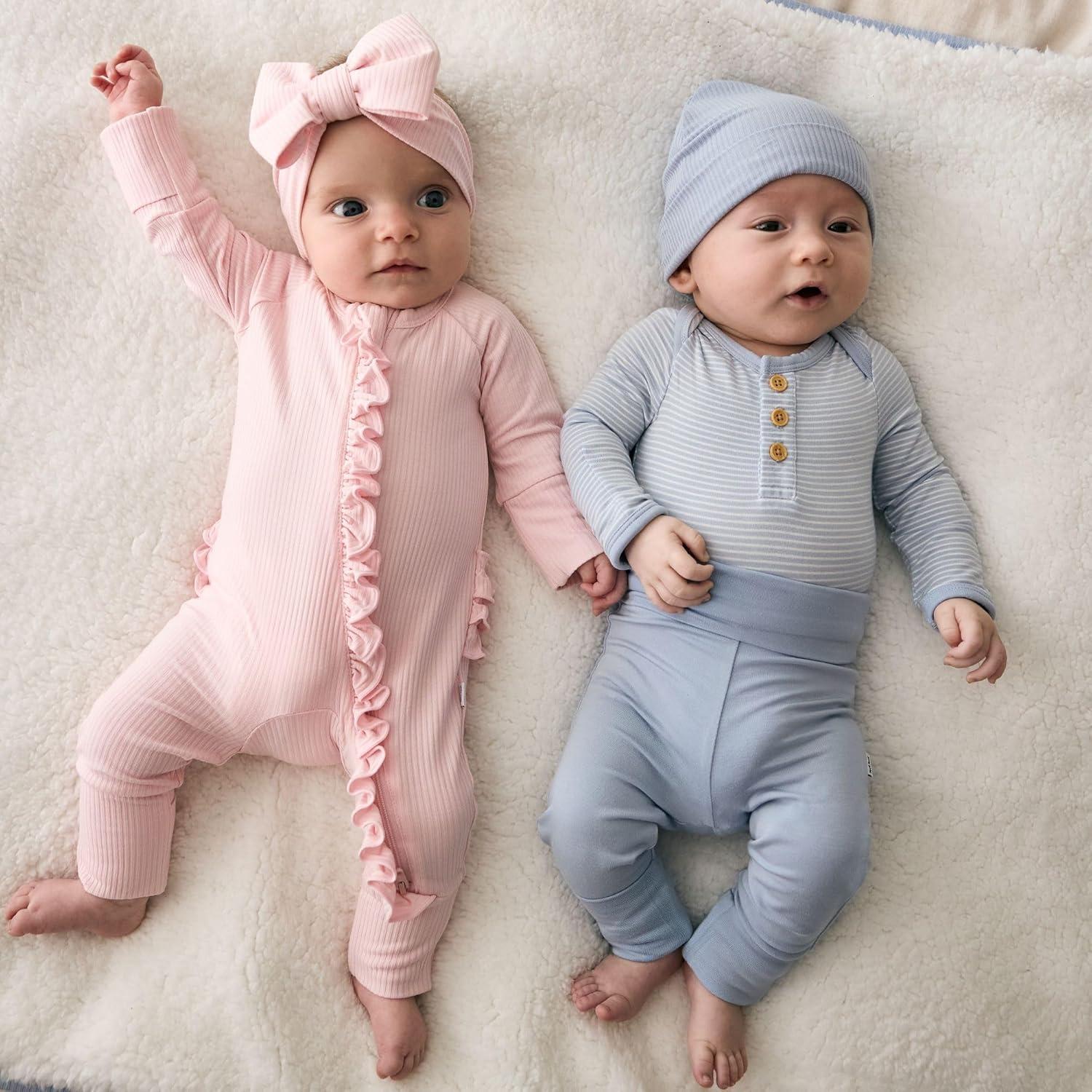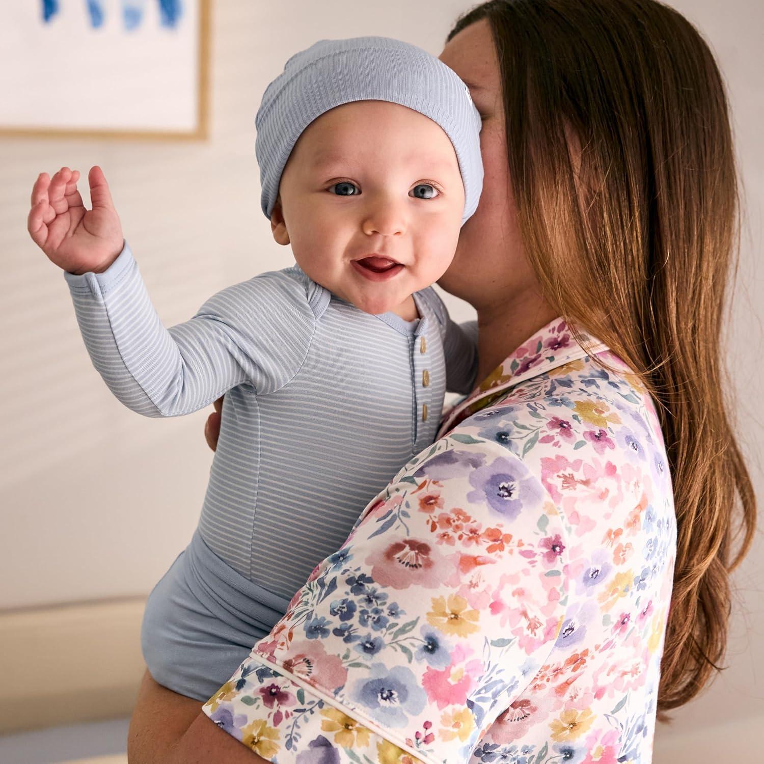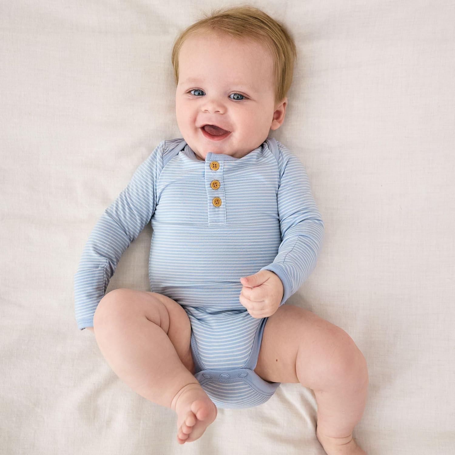 Little Sleepies Newborn Henley Bodysuit, Soft Viscose from Bamboo Long Sleeve Bodysuit for Baby Boys & Girls, Baby Clothes(Light Fog Stripe)