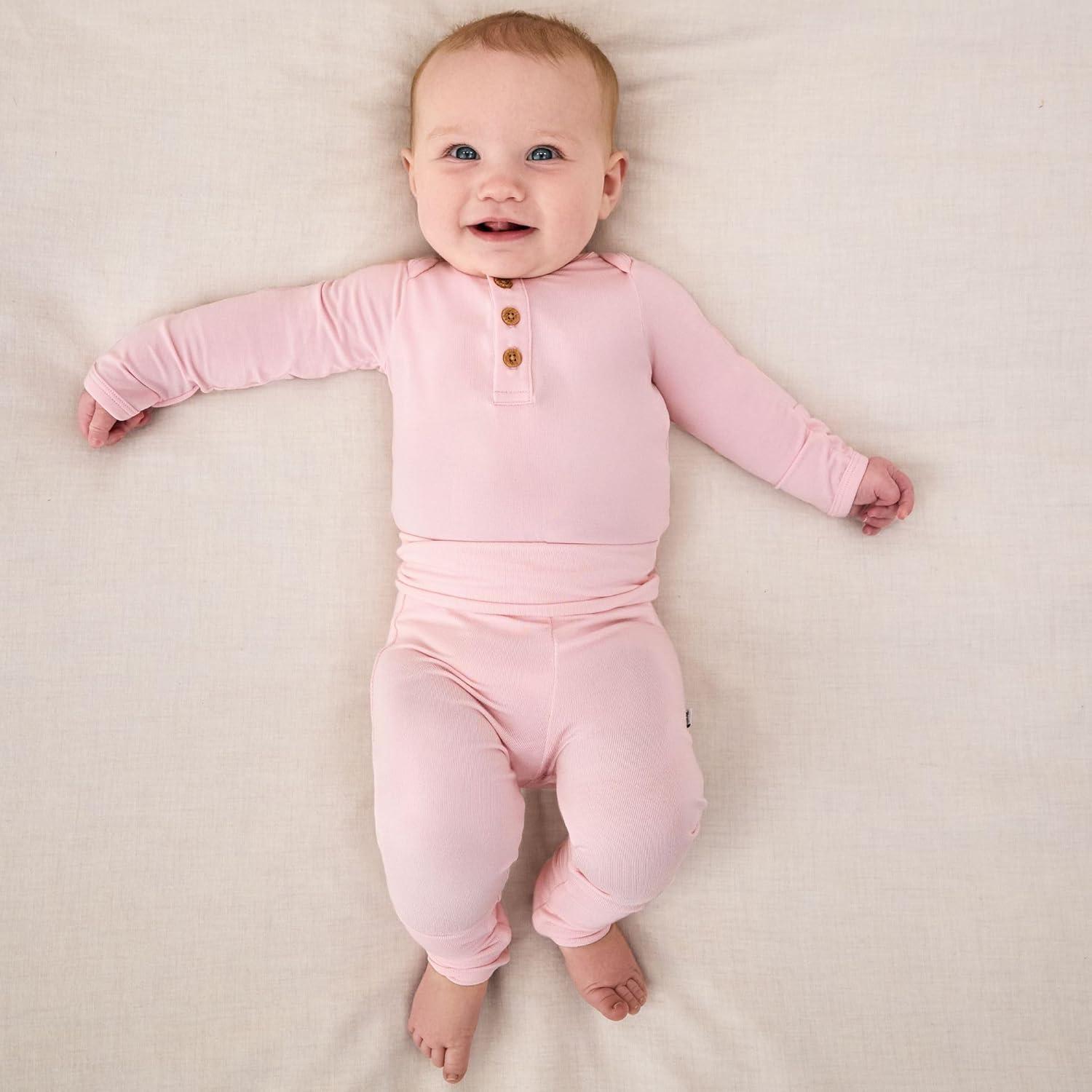 Little Sleepies Newborn Henley Bodysuit, Soft Viscose from Bamboo Long Sleeve Bodysuit for Baby Boys & Girls, Baby Clothes(Prima Pink)