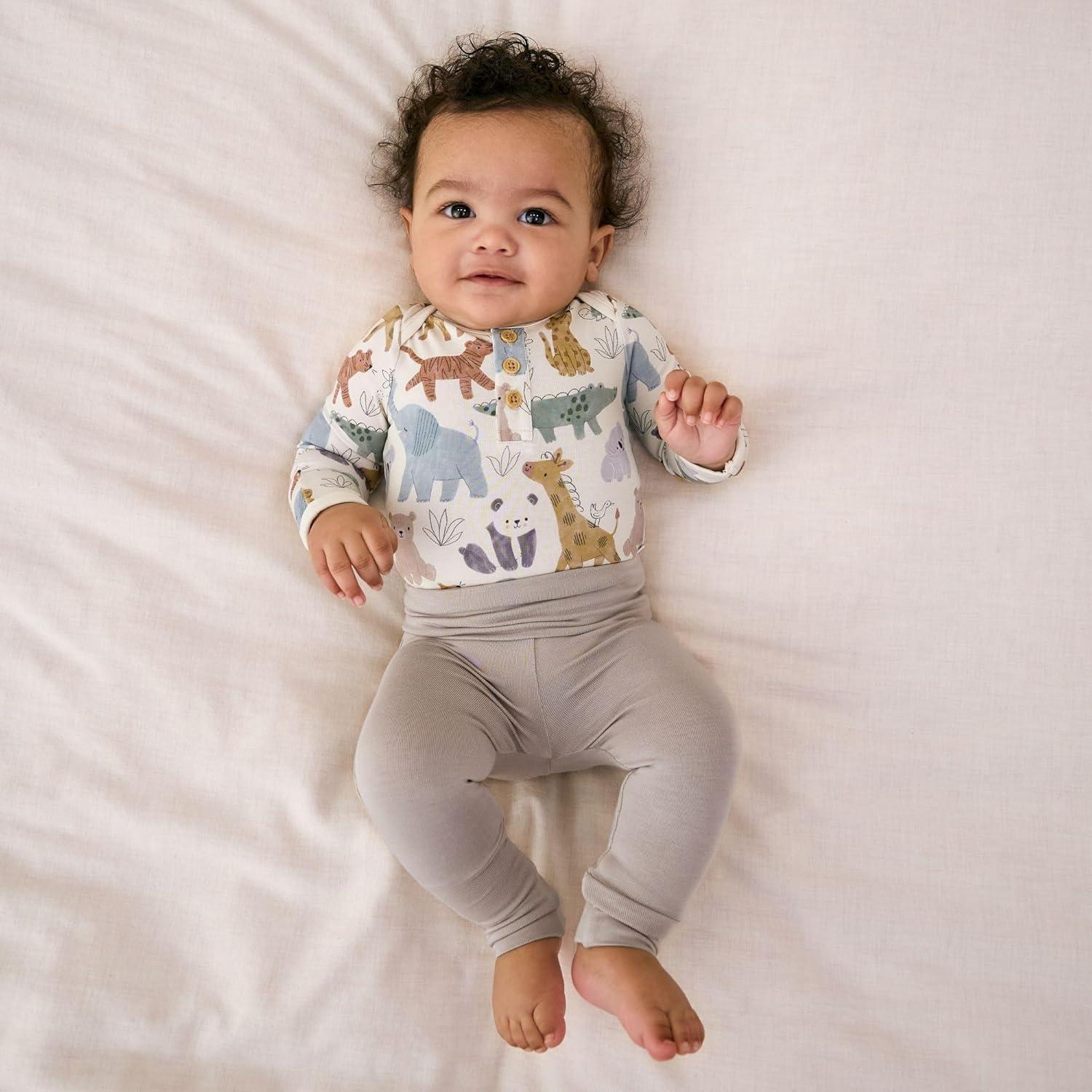Wrap your little one in the softest comfort with our Soluxe Viscose from Bamboo baby leggings, designed to fit and grow with your baby. These ultra-soft baby clothes are gentle on sensitive newborn skin, breathable, and hypoallergenic—perfect for everyday wear. Whether you’re dressing your little one in newborn boy clothes, baby girl pants 0-3 months, or preemie pants girl, these leggings are crafted for durability and all-day coziness. The fold-over footcuffs convert effortlessly from footed baby pants to footless baby leggings, keeping tiny toes warm or free to wiggle. Our soft elastic waistband provides a snug yet gentle fit, ideal for delicate belly buttons, making them perfect newborn pants for boys and girls. Designed to grow with your baby, the extended length ensures a longer wear time—up to three times longer than standard baby pants—from newborn sizes through 6-9 months and beyond. Available in classic hues like black baby pants, white baby pants, and adorable prints, these leggings for girls and boys pair perfectly with all your favorite baby boy clothes and baby girl leggings outfits. Choose from sizes including micro-preemie, preemie, newborn, 0-3 months baby girl pants, baby pants 0-3 months, baby girl pants 3-6 months, and even baby girl pants 12 months or 18 month leggings for baby girls. Whether you’re searching for newborn pants with feet, newborn pants with footies, or newborn pants neutral, these are a must-have staple in every nursery wardrobe. Perfect as a thoughtful baby shower gift or everyday essential, our baby boy pants, newborn girl pants, and baby girl black leggings deliver the perfect blend of softness, stretch, and style—because your baby deserves nothing less.