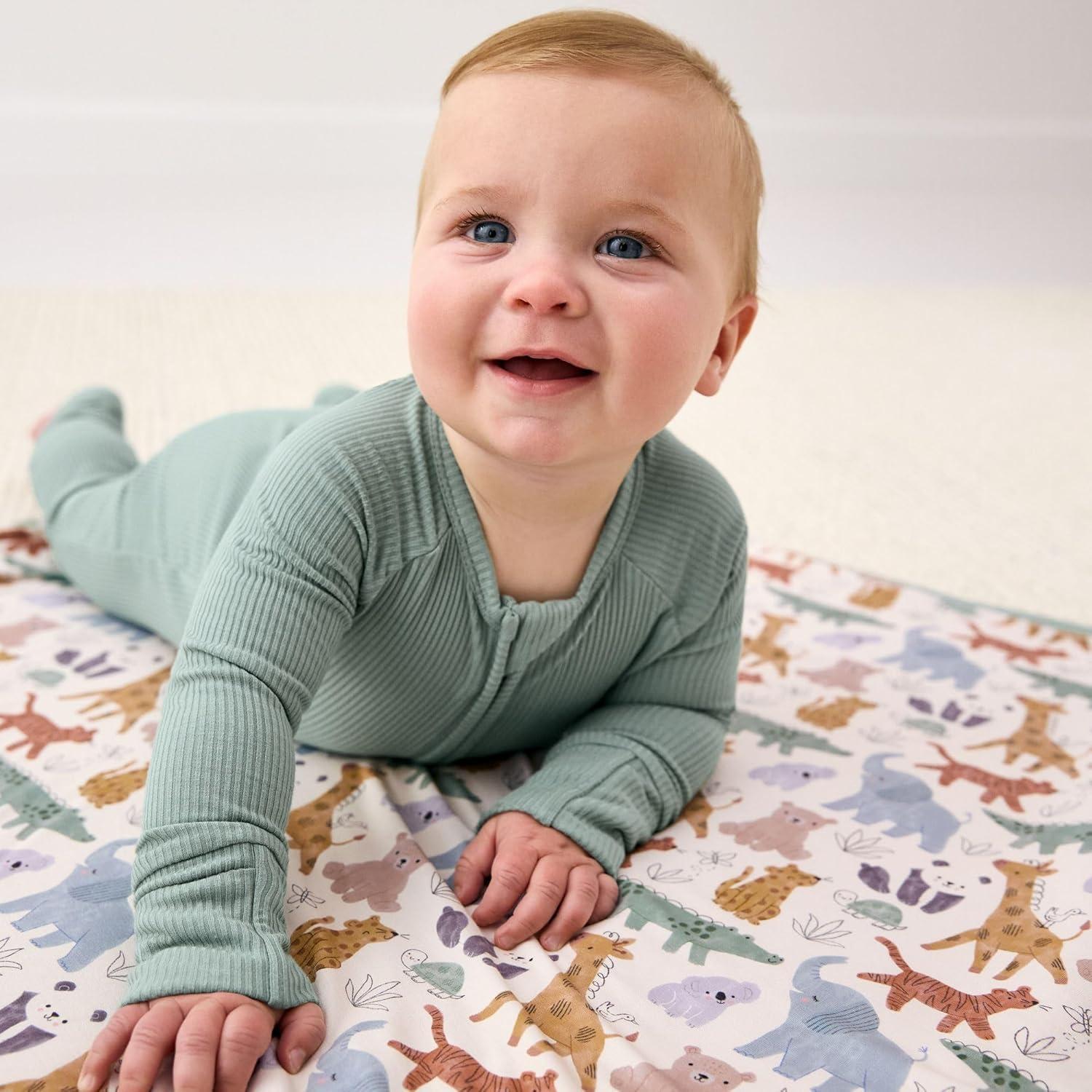 Little Sleepies Newborn Mini Blanket, Soft Viscose from Bamboo Baby Blanket for Boy & Girl Gifts, Baby Essentials, Light Fog Ribbed, 30 inches x 40 inches(Sweet Safari)