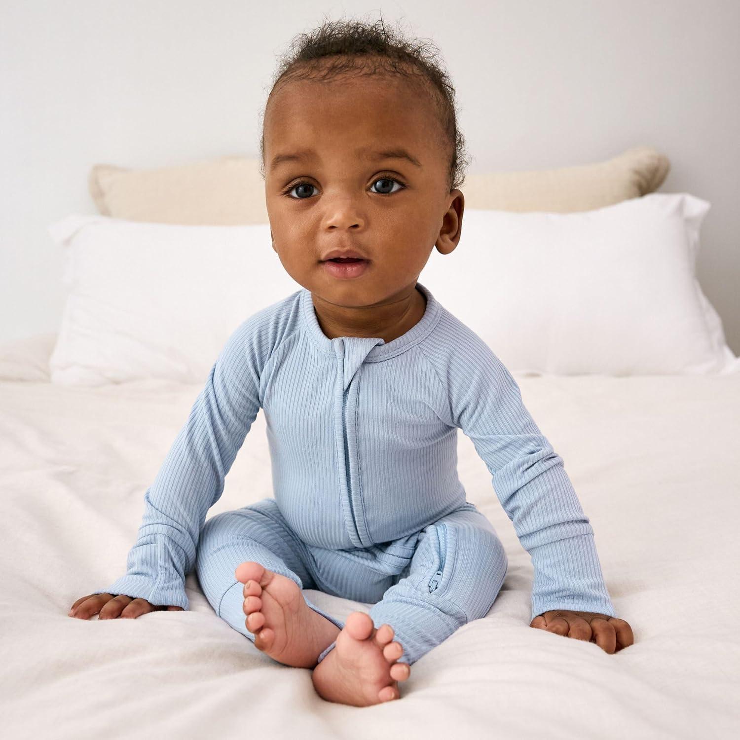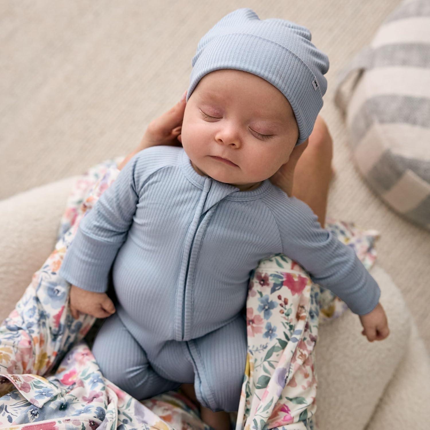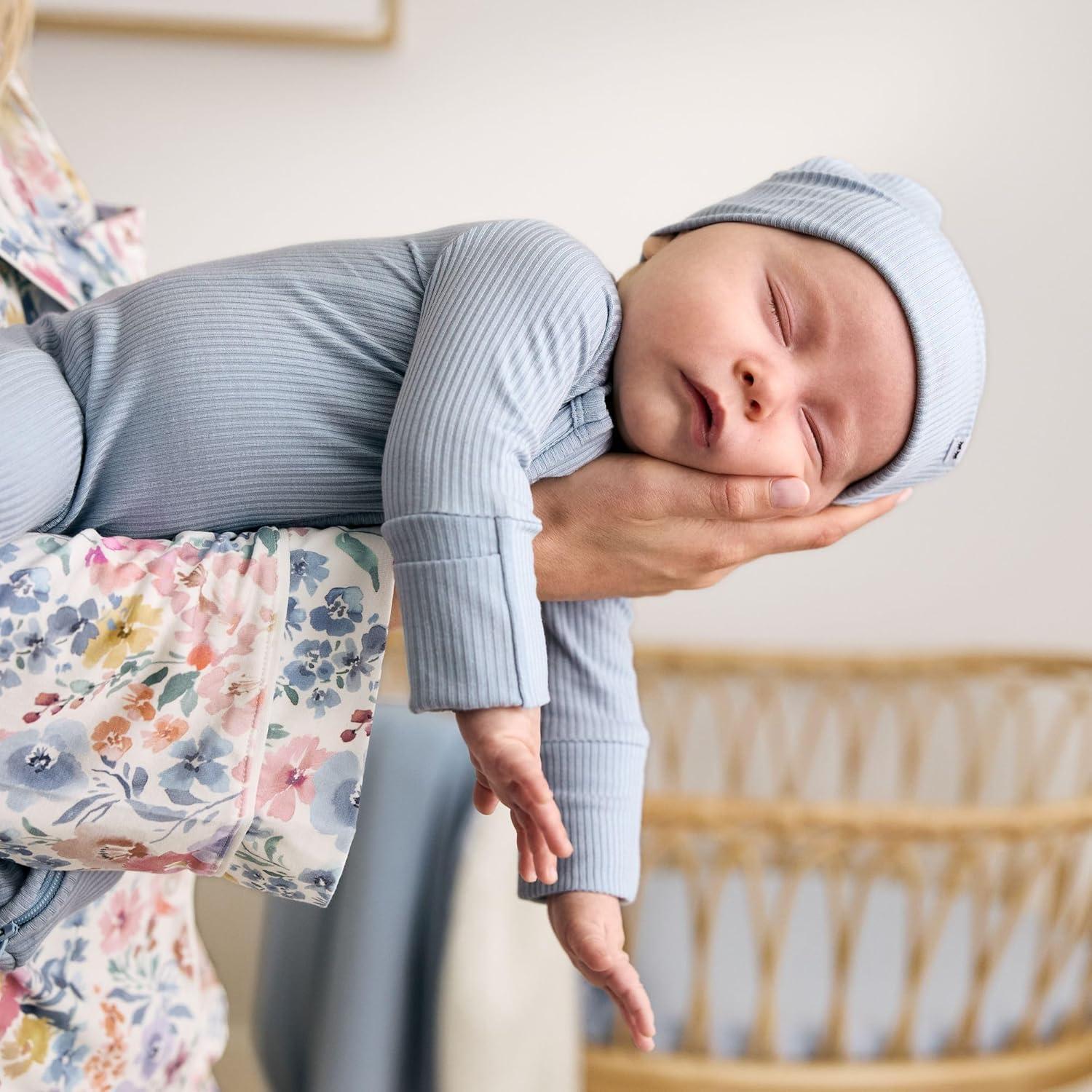 Our Ribbed Zippy is the newborn sleeper essential, thoughtfully designed with all the features new parents actually need. Made from buttery soft Lunaluxe Bamboo, this textured ribbed bamboo sleeper combines function and style for those precious early days and nights. Imagine wrapping your newborn in cloud-like softness that's gentle enough for even the most delicate skin. Our Ribbed Zippy bamboo sleepers newborn collection is made from breathable, hypoallergenic Lunaluxe Bamboo that naturally regulates temperature — keeping baby comfy-cozy in both summer and winter. The bamboo newborn sleeper fabric is perfect for sensitive newborn skin and eczema-prone littles, offering a soothing touch with every snuggle. Designed with sleepy parents in mind, our innovative u-shaped double zipper makes middle-of-the-night diaper changes quick and fuss-free. These newborn sleepers 2 way zipper designs allow you to zip from the top or bottom for easy access without fully undressing baby — because we know every second counts at 3 AM! The lap shoulder design adds another layer of convenience, making getting baby dressed simple and stress-free, even with a wiggly newborn. Sweet fold-over mittens protect tiny fingers from those unintentional scratches — making these perfect newborn sleepers with mittens. The fold-over feet keep little toes warm and cozy all night long, creating the ideal newborn footie pajamas for baby girl and baby boy alike. These thoughtful features mean worry-free sleep for baby and peace of mind for parents. The textured ribbed fabric adds an extra touch of style that sets this Zippy apart from traditional cotton newborn sleepers, making it perfect for welcome home photos, hospital bag must-haves, and all those milestone moments you'll want to capture.