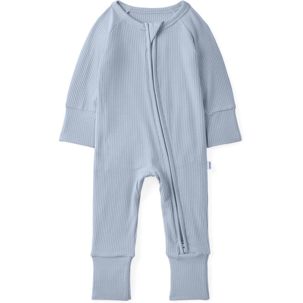 Little Sleepies Newborn Pajamas, Viscose from Bamboo Baby Pajamas, Boys & Girls Preemie & Newborn Sleepers, 2-Way Zipper PJs(Light Fog Ribbed)