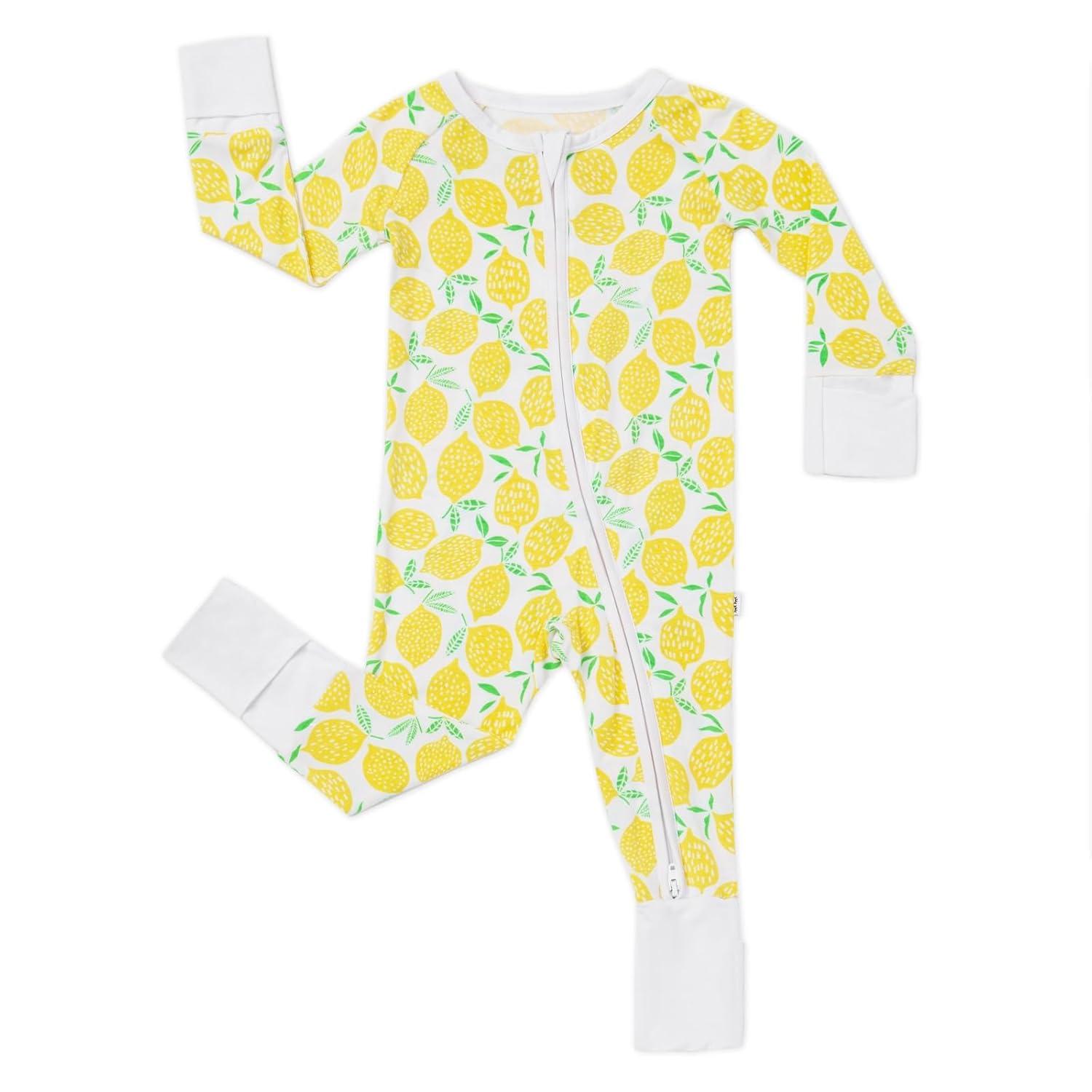 Little Sleepies Newborn Sleepy Time Bundle, Includes Newborn Swaddle + Hat Set and 2-Way Zipper Pajamas, Viscose Derived from Bamboo Fabric, Lemons, Newborn