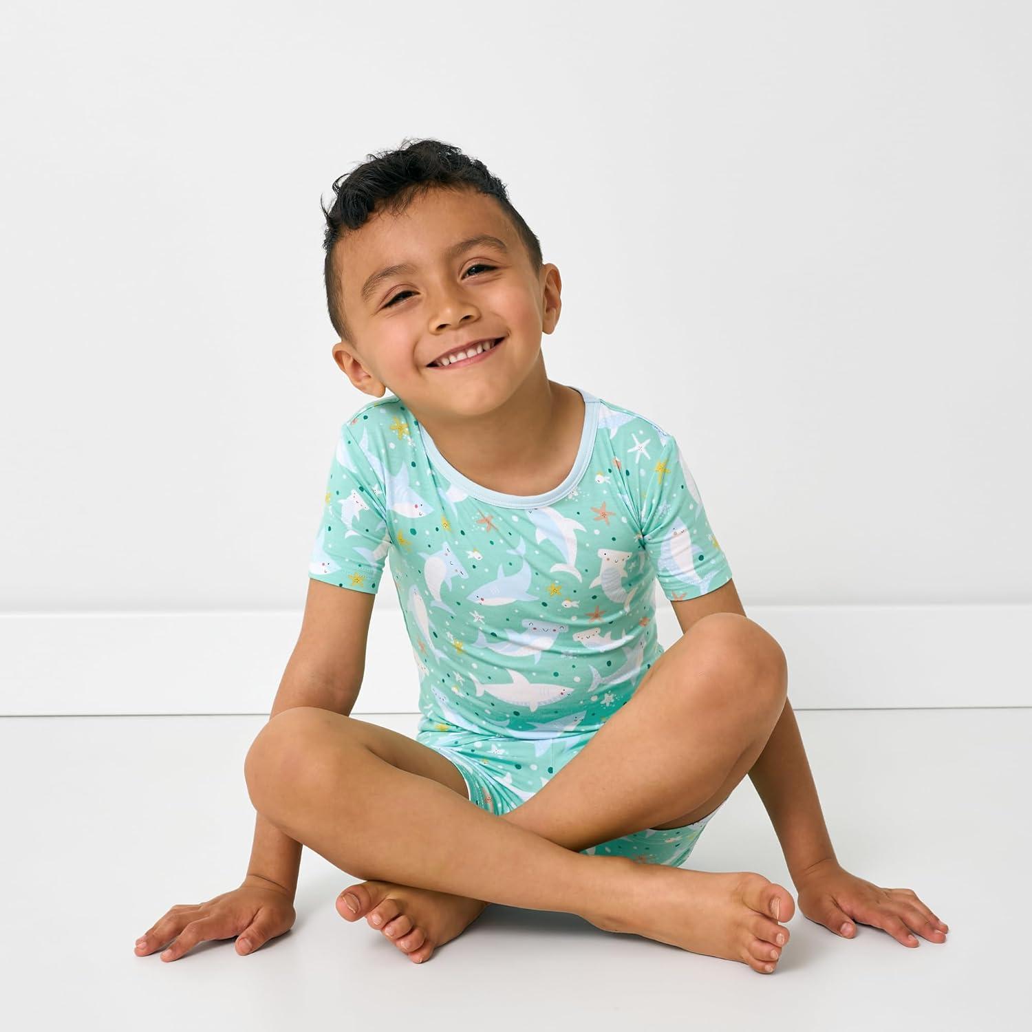 Little Sleepies Pajama Set w/Short Sleeve Shirt & Shorts, Viscose from Bamboo Toddler Pajamas, Girl & Boys Pajamas for Kids(Shark Soiree)