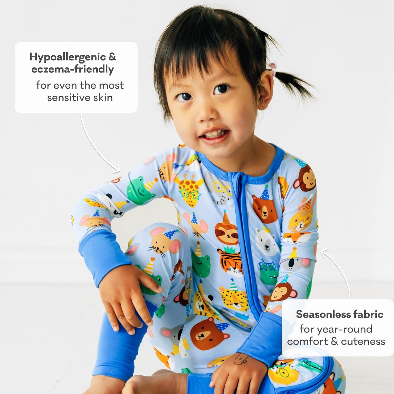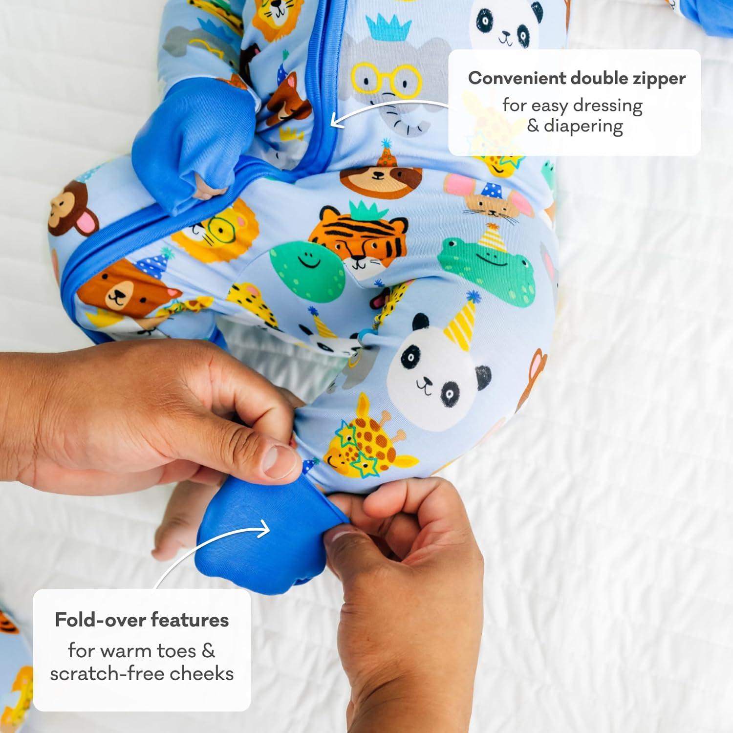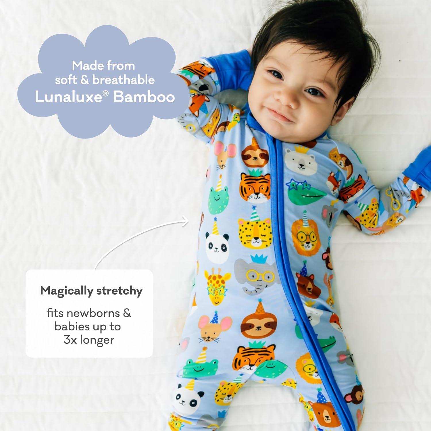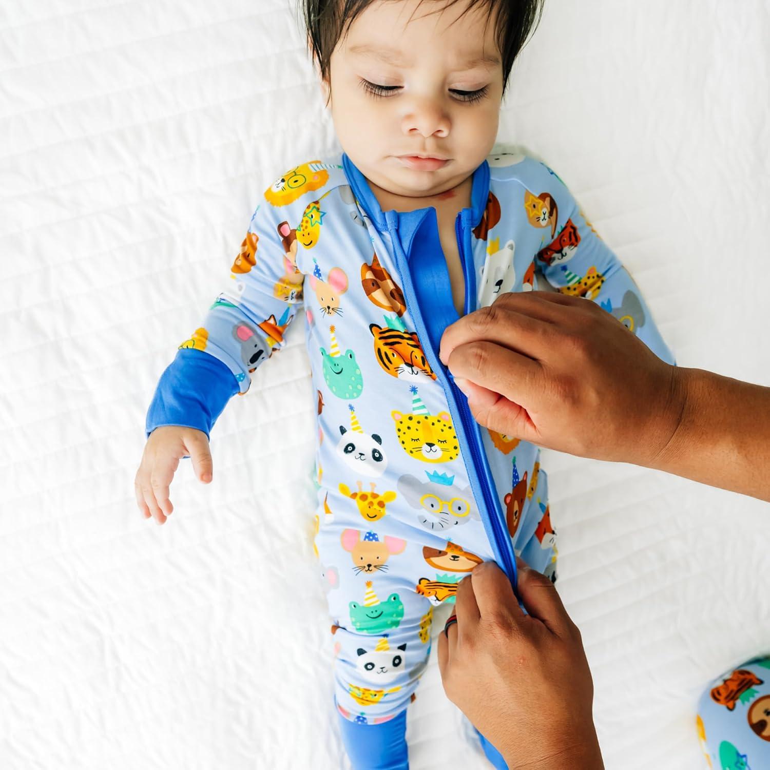 Little Sleepies Pajamas for Baby Boys & Girls, Viscose from Bamboo Baby Pajamas, Preemie & Newborn Sleepers, 2-Way Zipper PJs(Blue Party Pals)