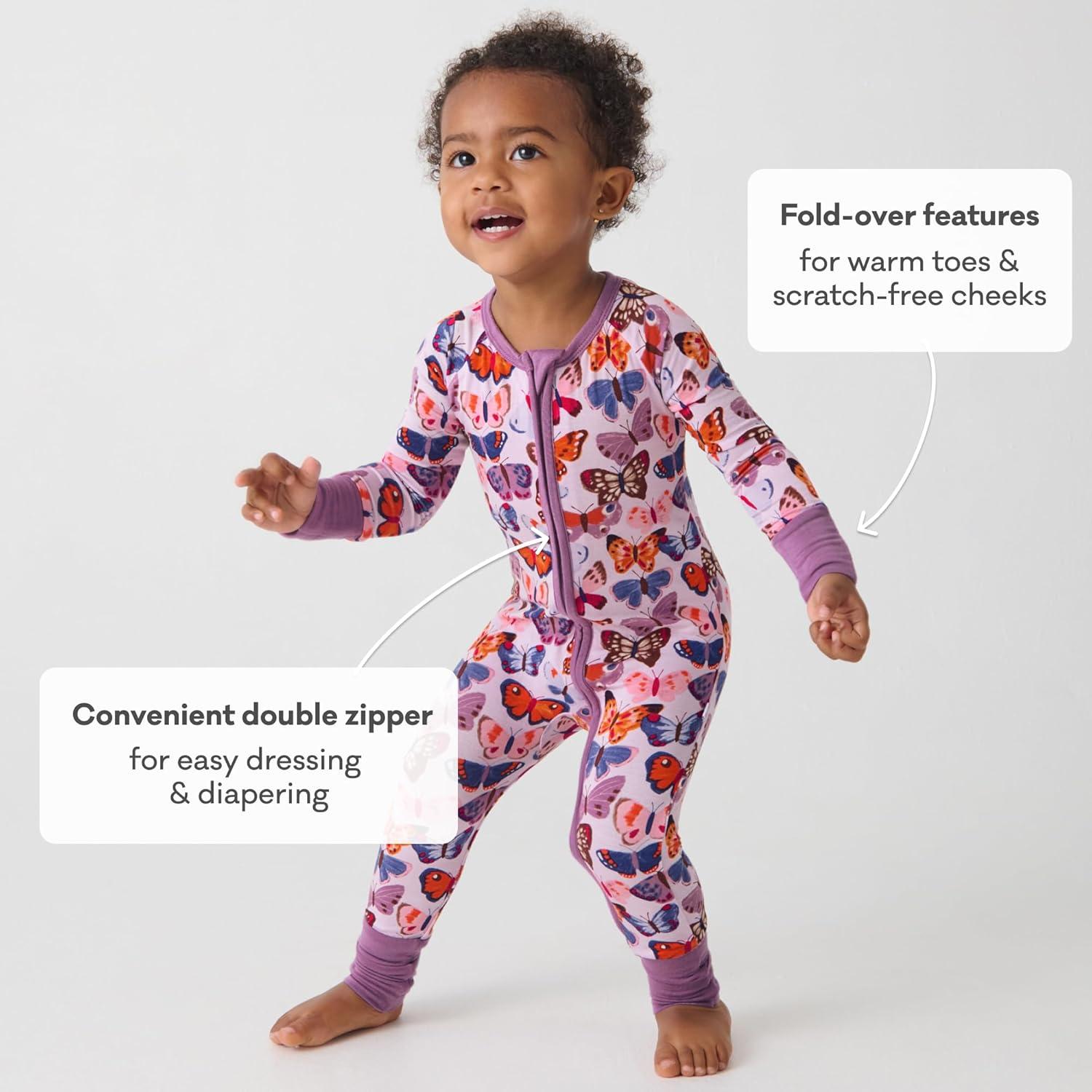 Little Sleepies Pajamas for Baby Boys & Girls, Viscose from Bamboo Baby Pajamas, Preemie & Newborn Sleepers, 2-Way Zipper PJs(Butterfly Kisses)