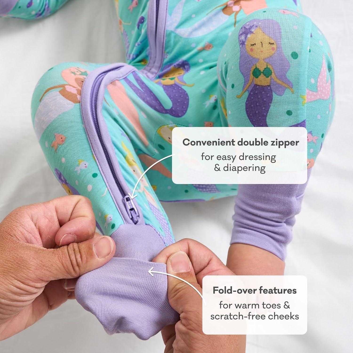 Little Sleepies Pajamas for Baby Boys & Girls, Viscose from Bamboo Baby Pajamas, Preemie & Newborn Sleepers, 2-Way Zipper PJs(Mermaid Magic)