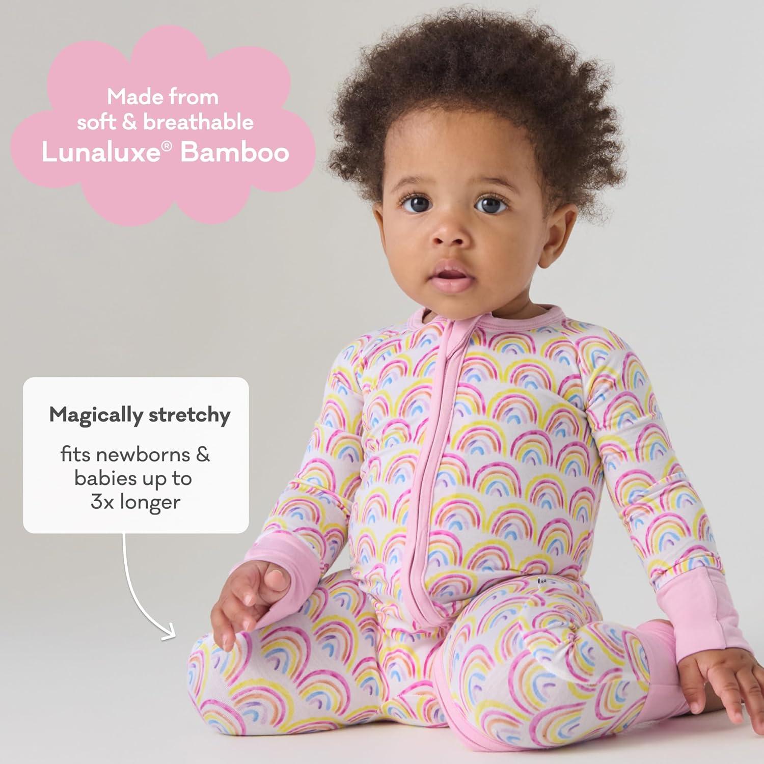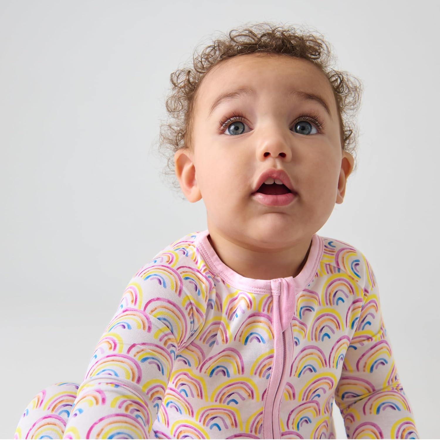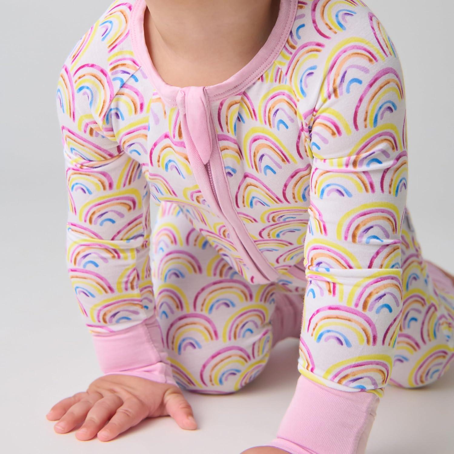 Little Sleepies Pajamas for Baby Boys & Girls, Viscose from Bamboo Baby Pajamas, Preemie & Newborn Sleepers, 2-Way Zipper PJs(Pastel Rainbows)