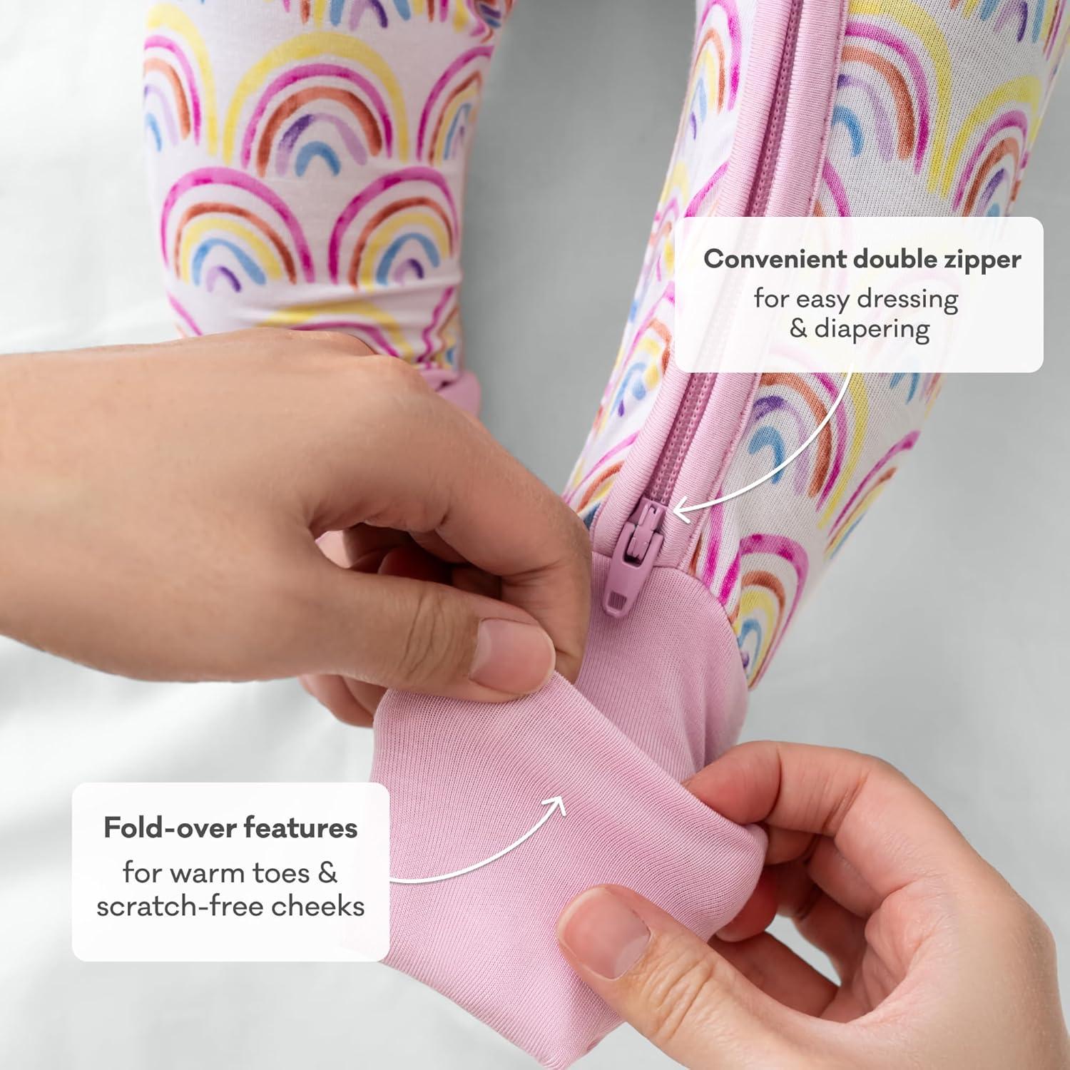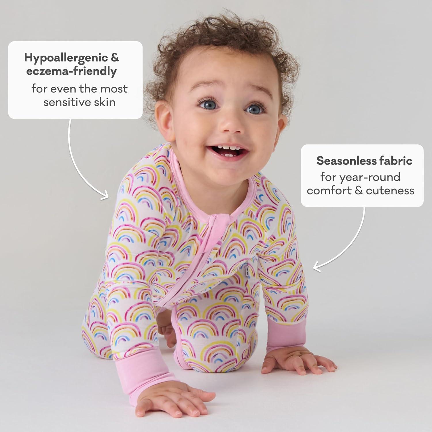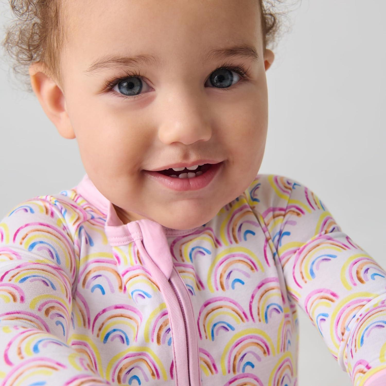 Little Sleepies Pajamas for Baby Boys & Girls, Viscose from Bamboo Baby Pajamas, Preemie & Newborn Sleepers, 2-Way Zipper PJs(Pastel Rainbows)