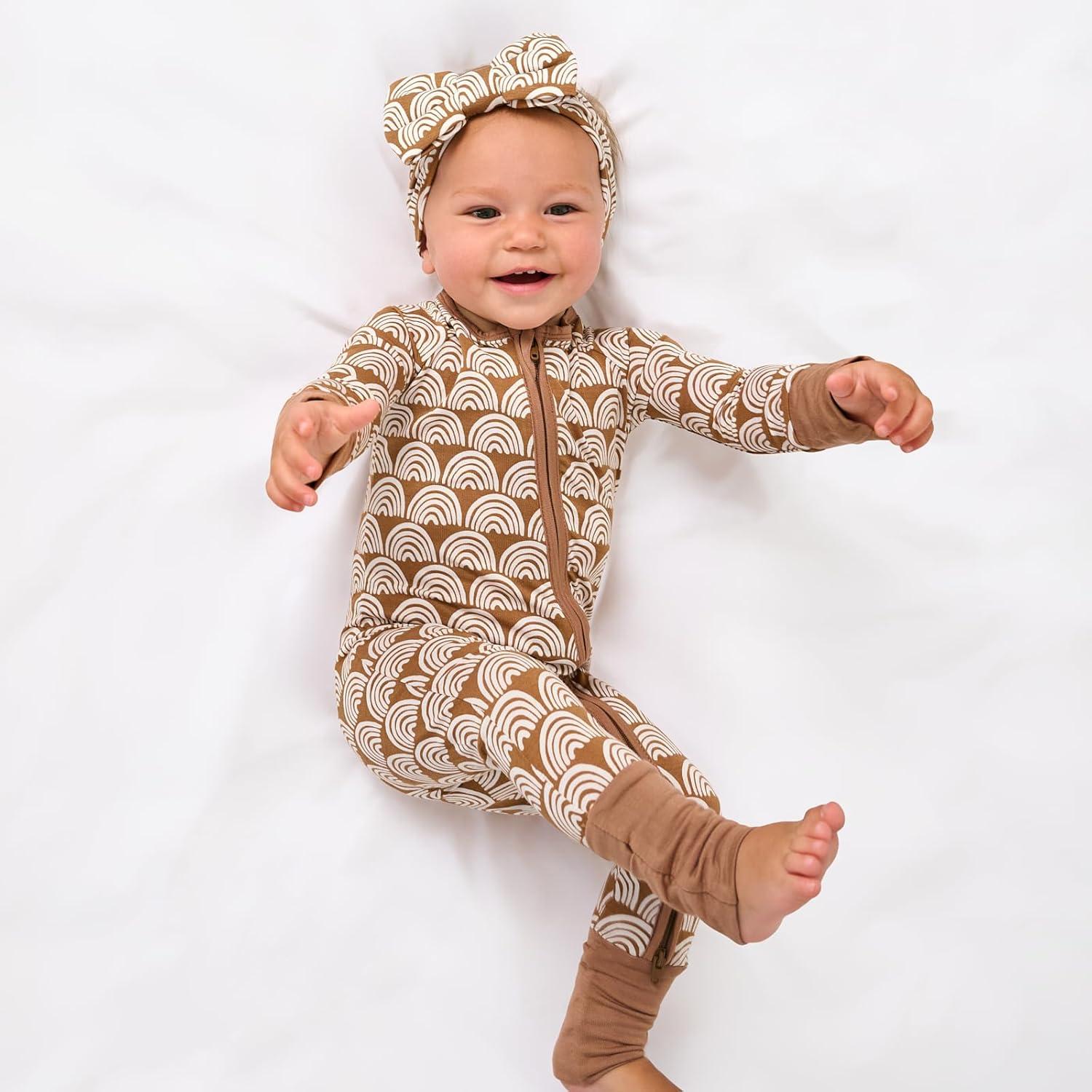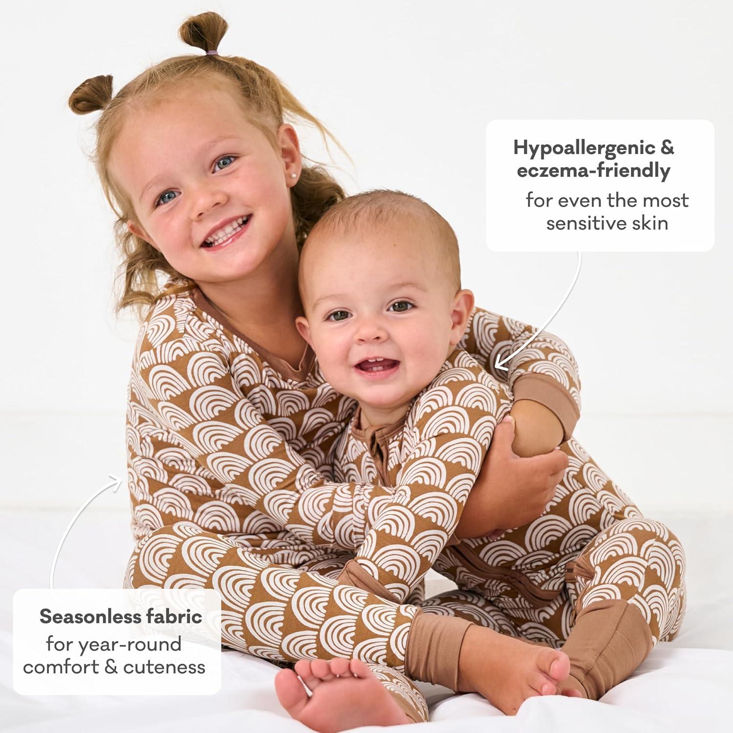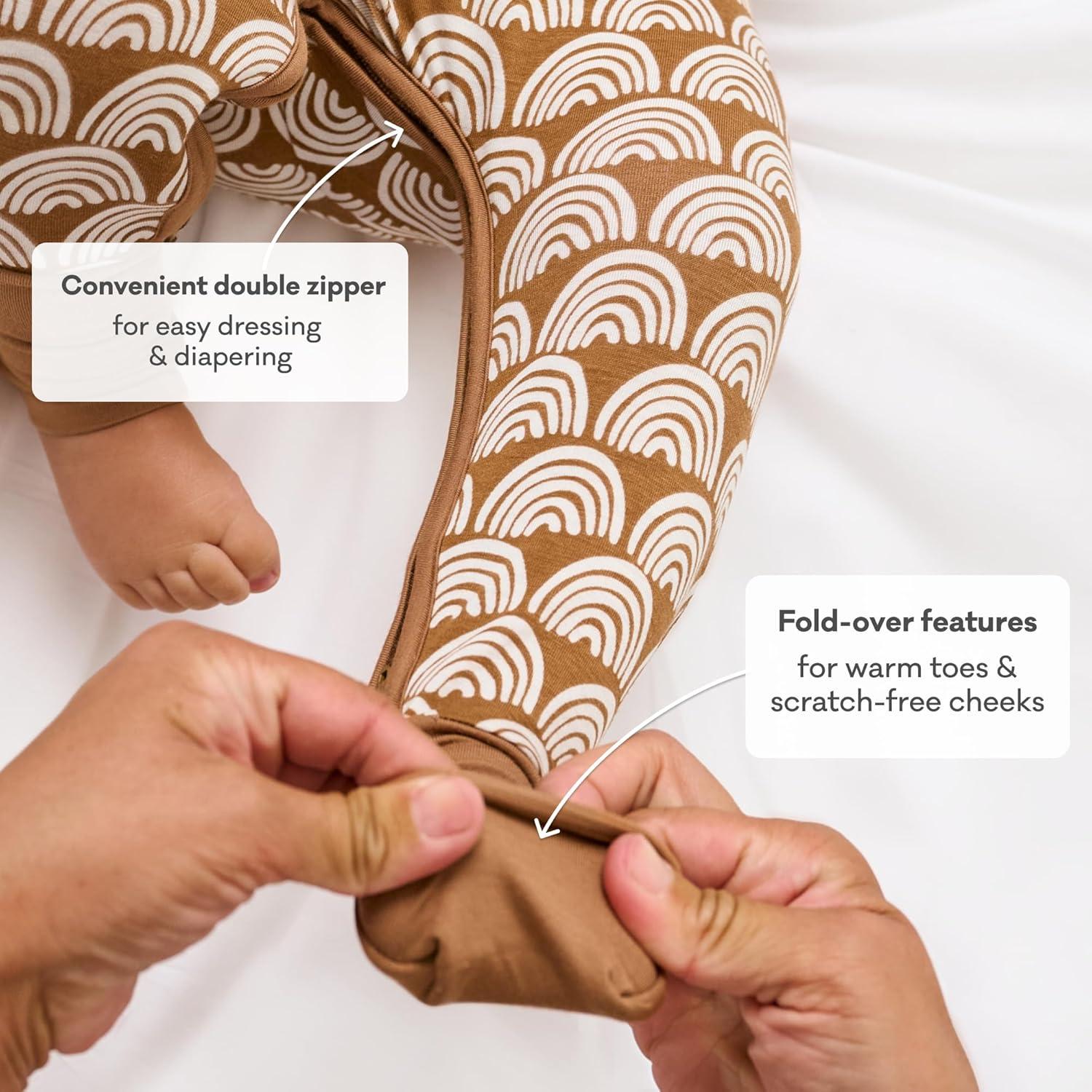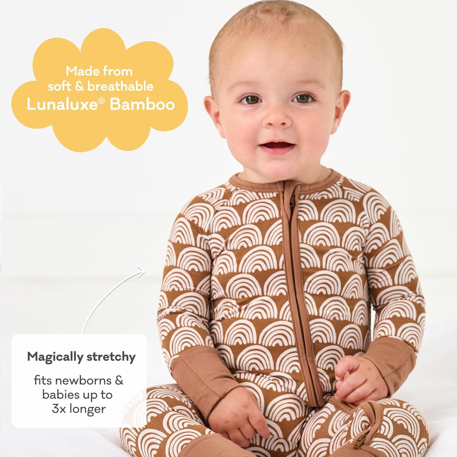 Little Sleepies Pajamas for Baby Boys & Girls, Viscose from Bamboo Baby Pajamas, Preemie & Newborn Sleepers, 2-Way Zipper PJs(Rust Rainbows)