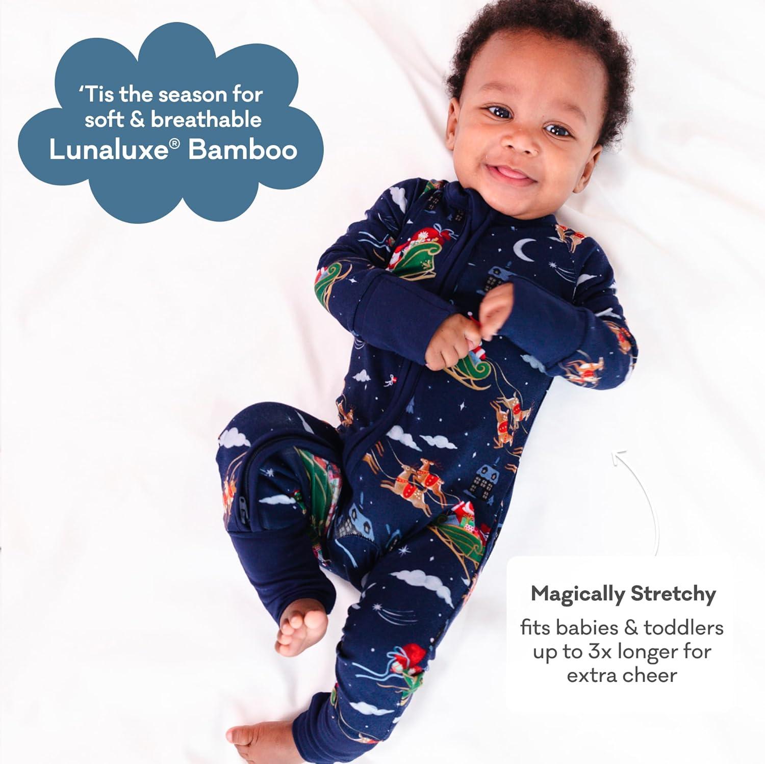 Little Sleepies Pajamas for Baby Boys & Girls, Viscose from Bamboo Baby Pajamas, Preemie & Newborn Sleepers, 2-Way Zipper PJs(Santa’s Sleigh)