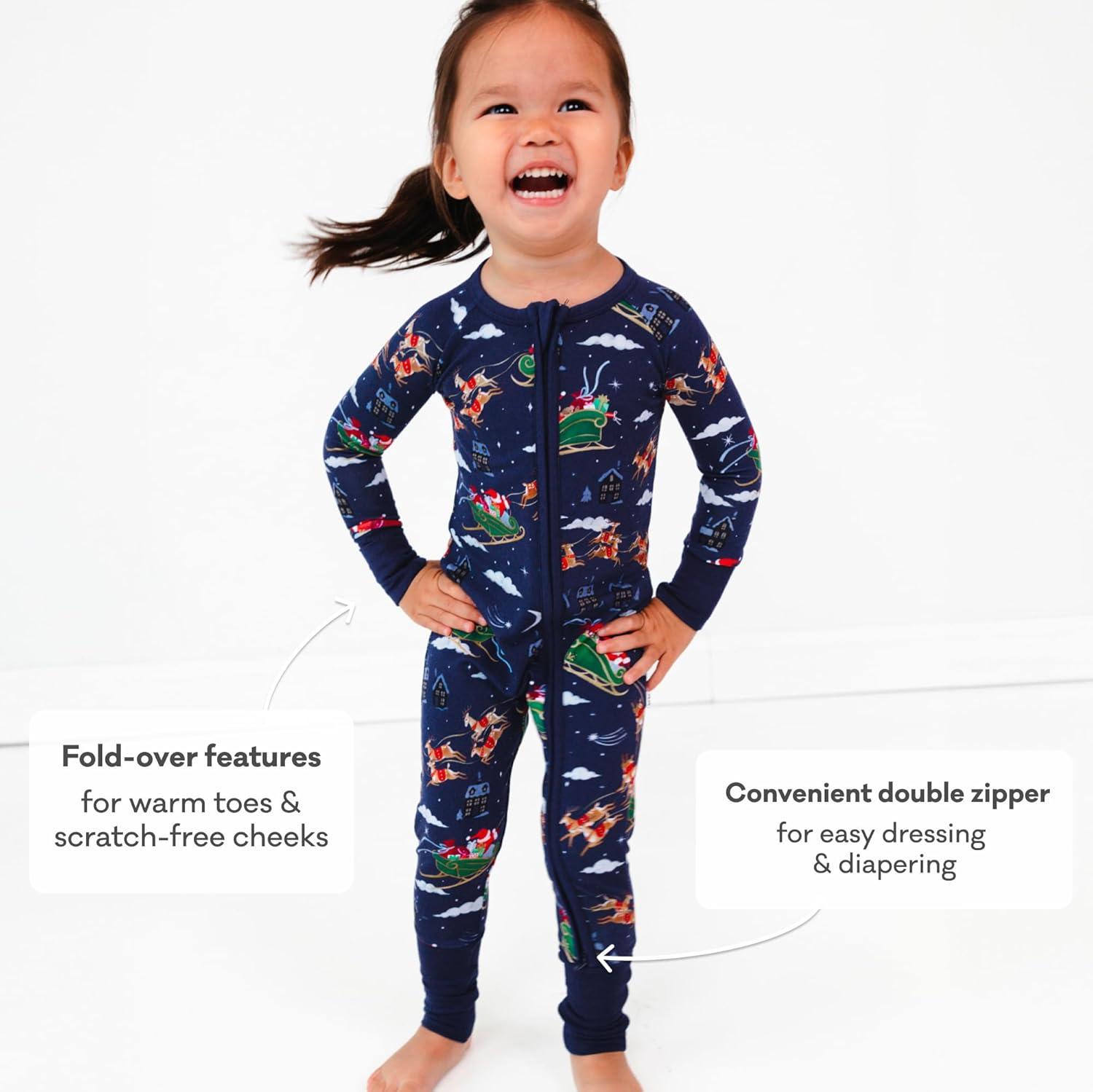 Little Sleepies Pajamas for Baby Boys & Girls, Viscose from Bamboo Baby Pajamas, Preemie & Newborn Sleepers, 2-Way Zipper PJs(Santa’s Sleigh)